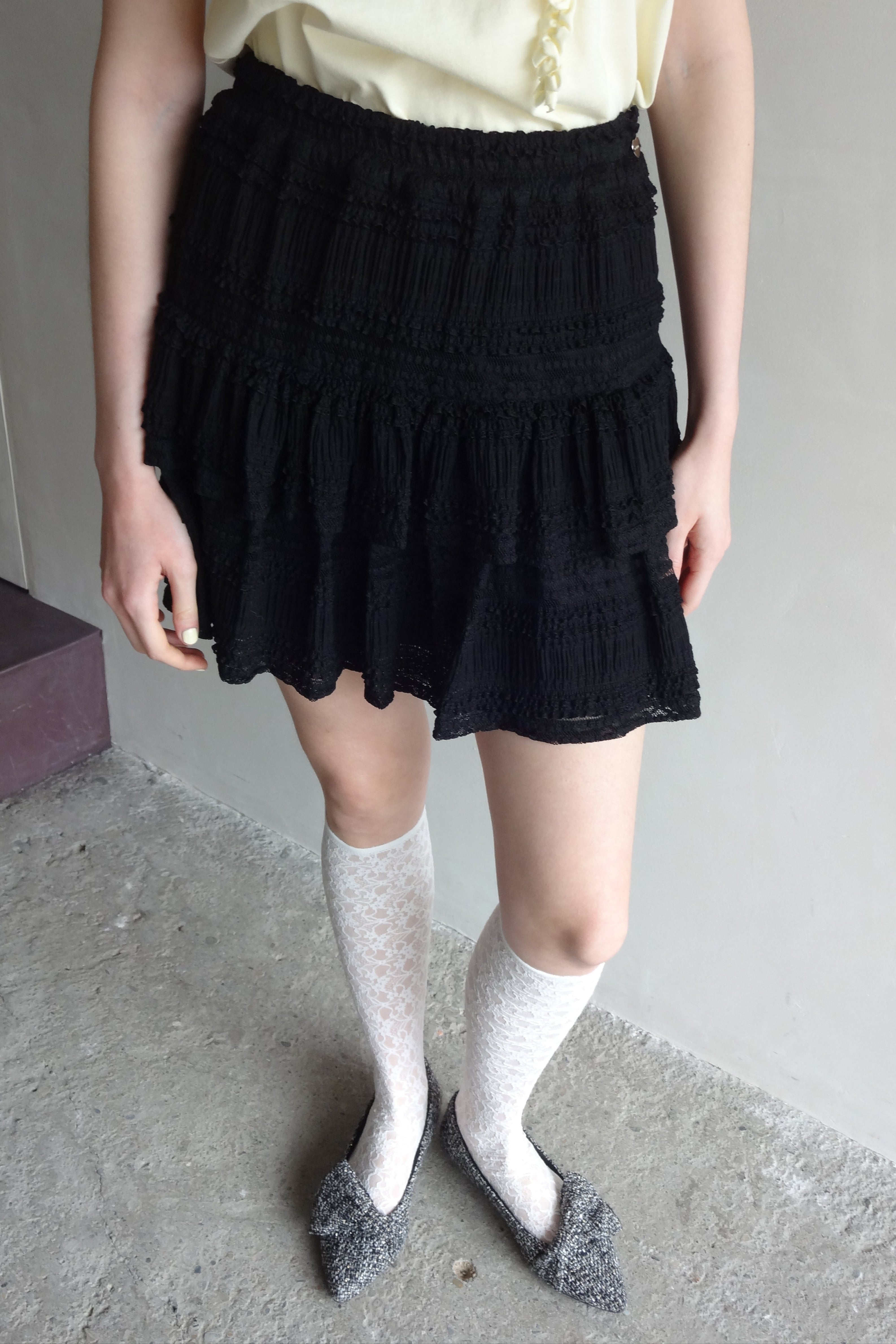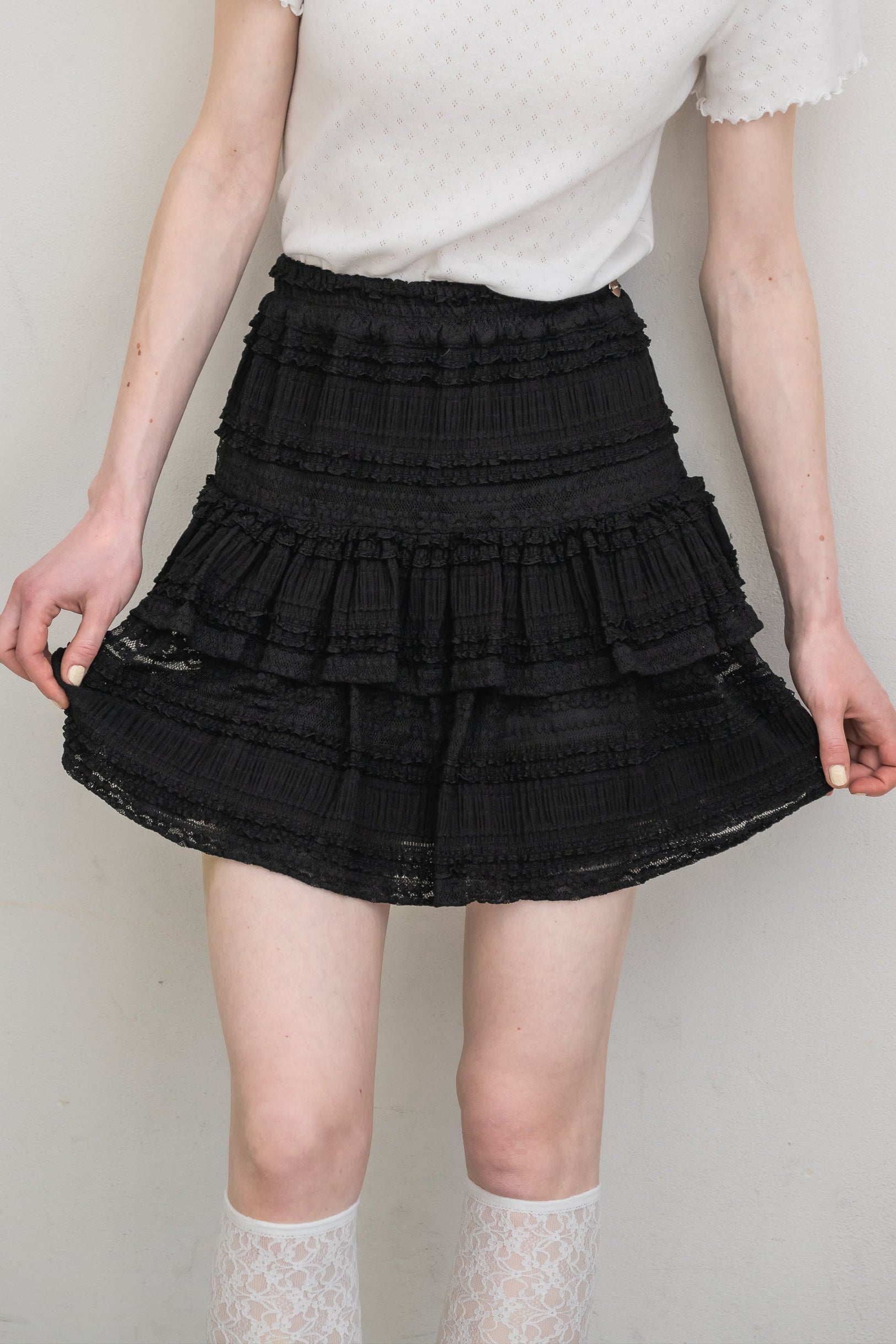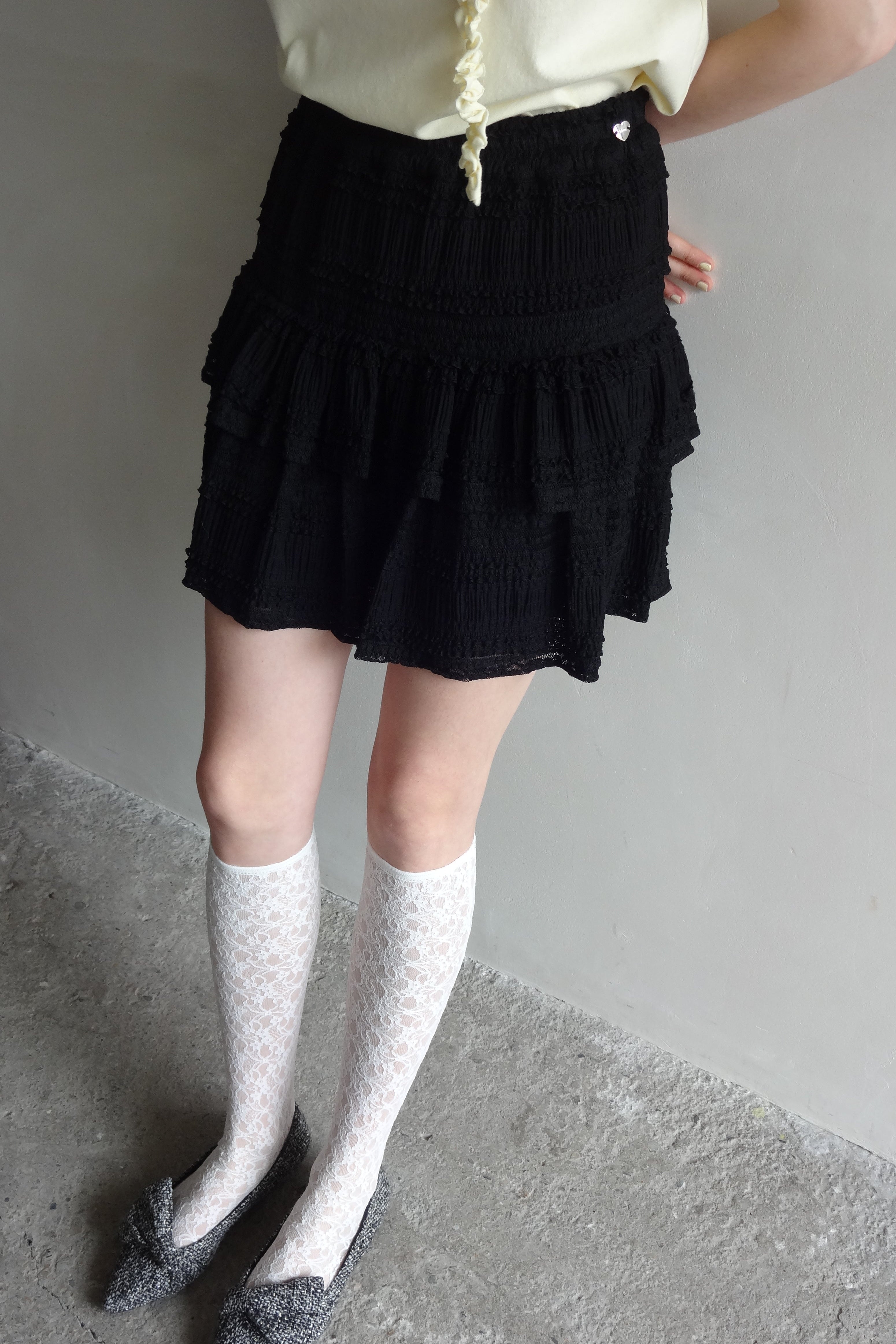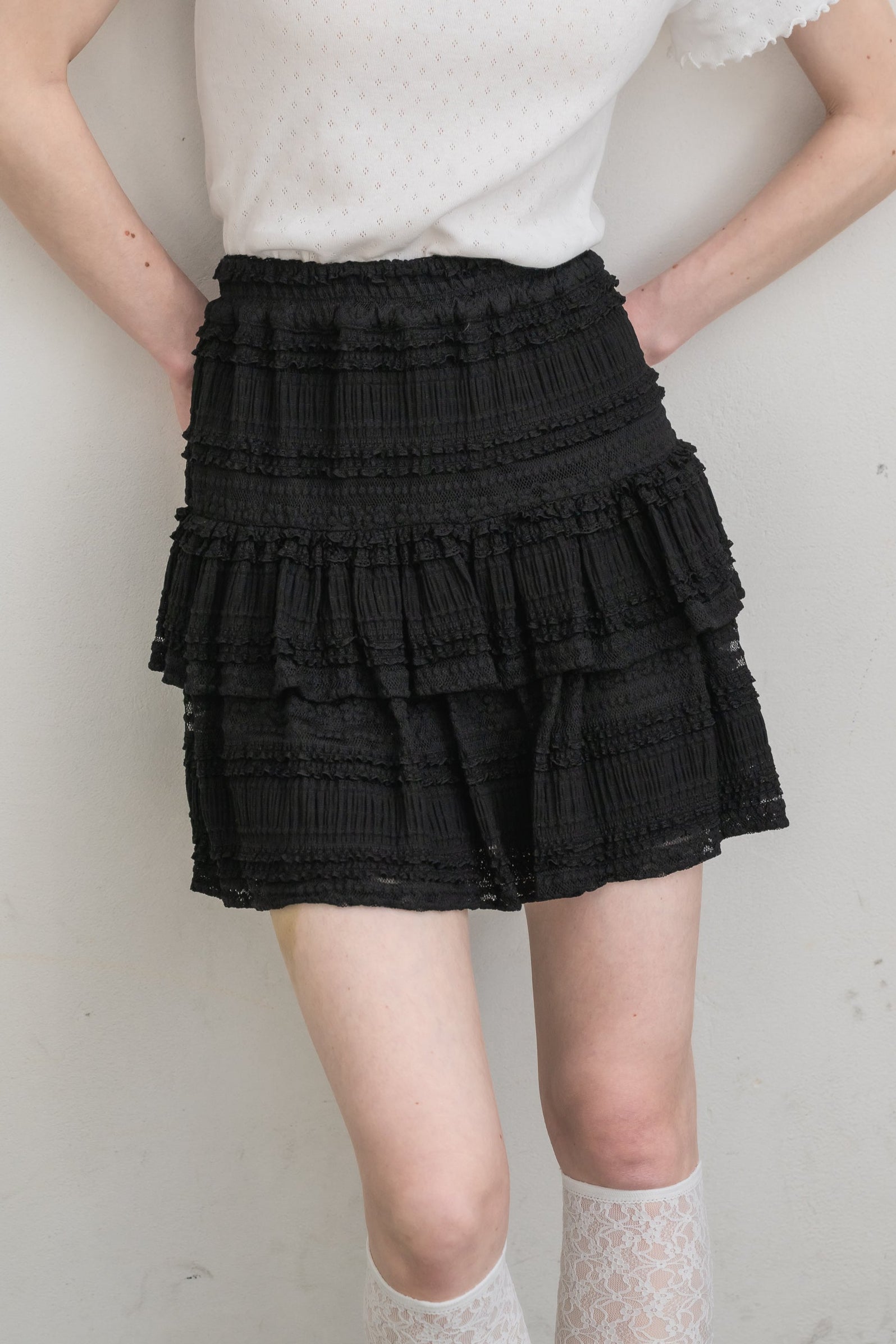 ボリューム感のあるレースティアードミニスカート