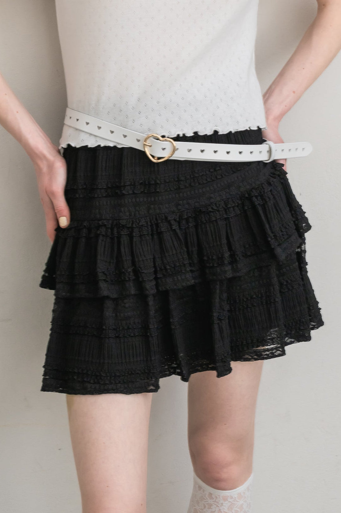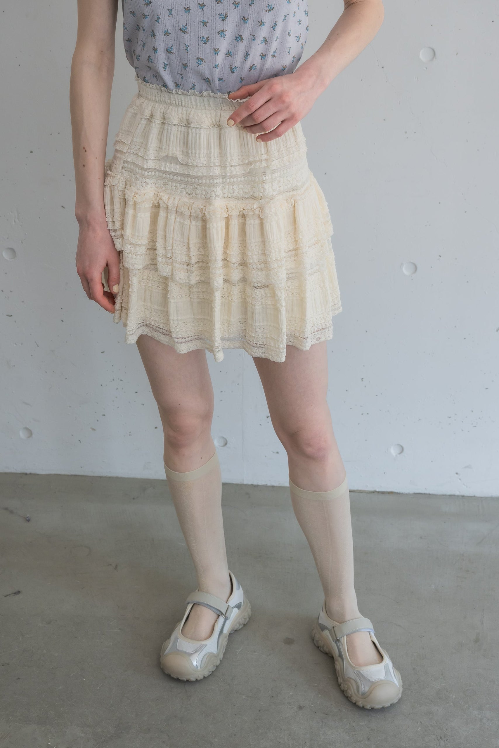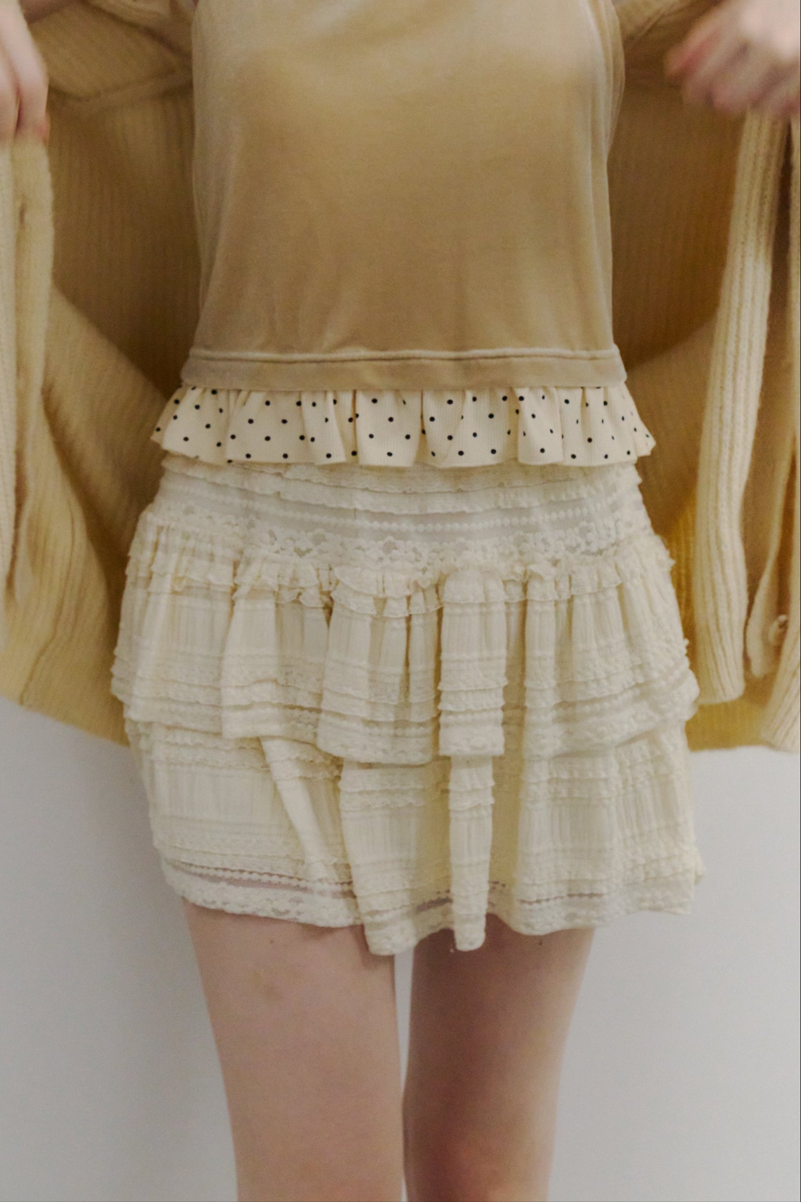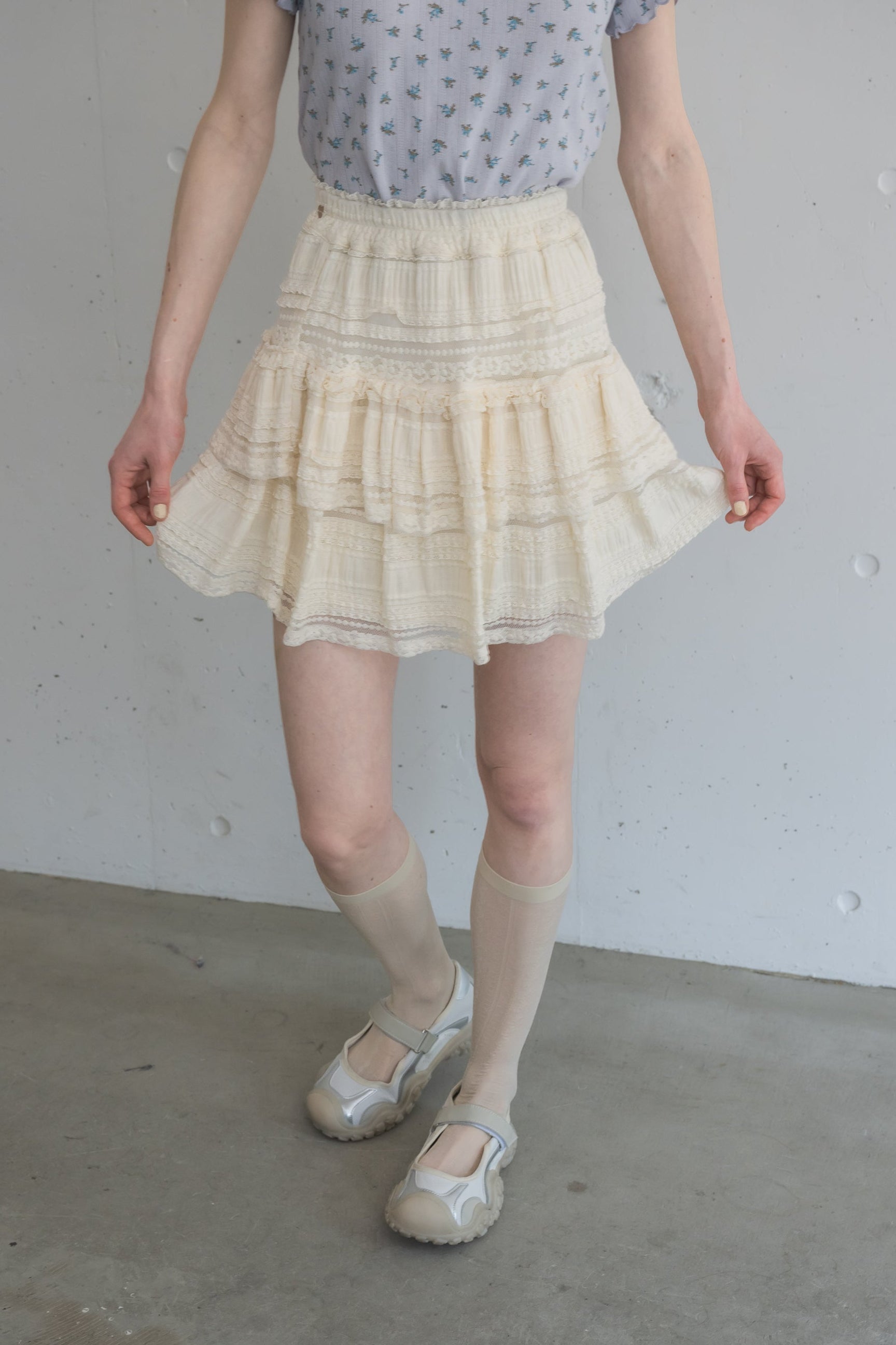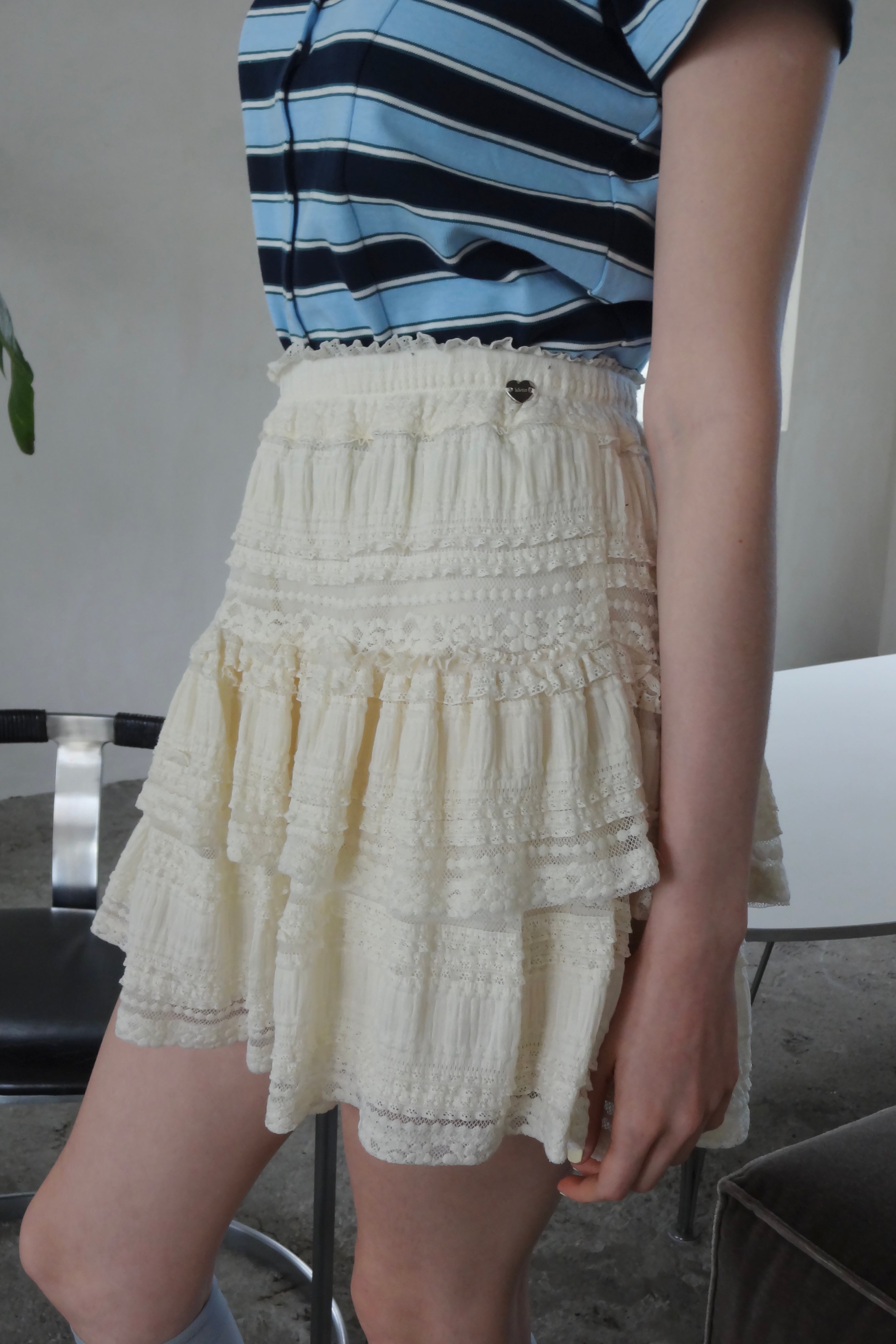 ボリューム感のあるレースティアードミニスカート