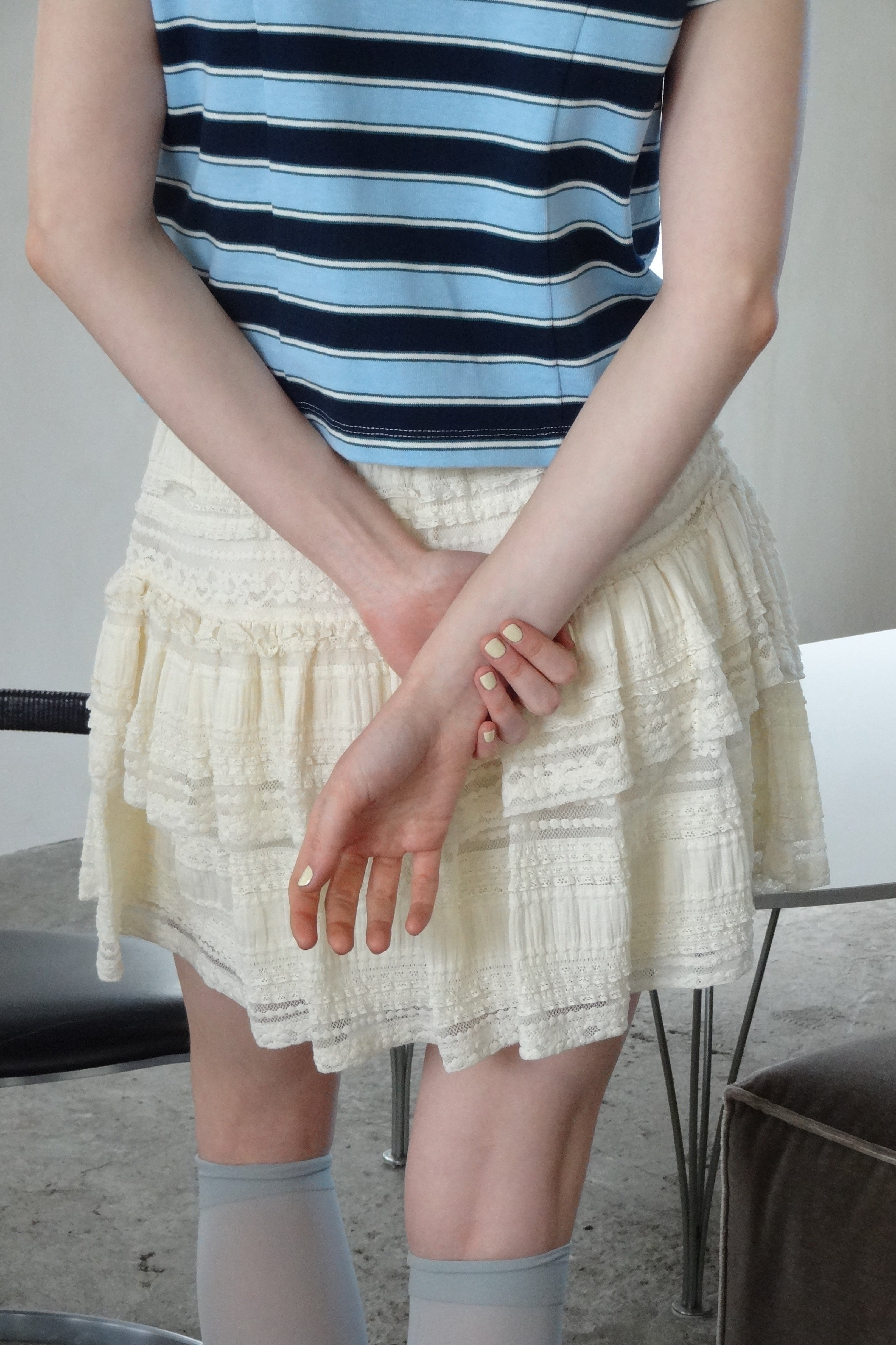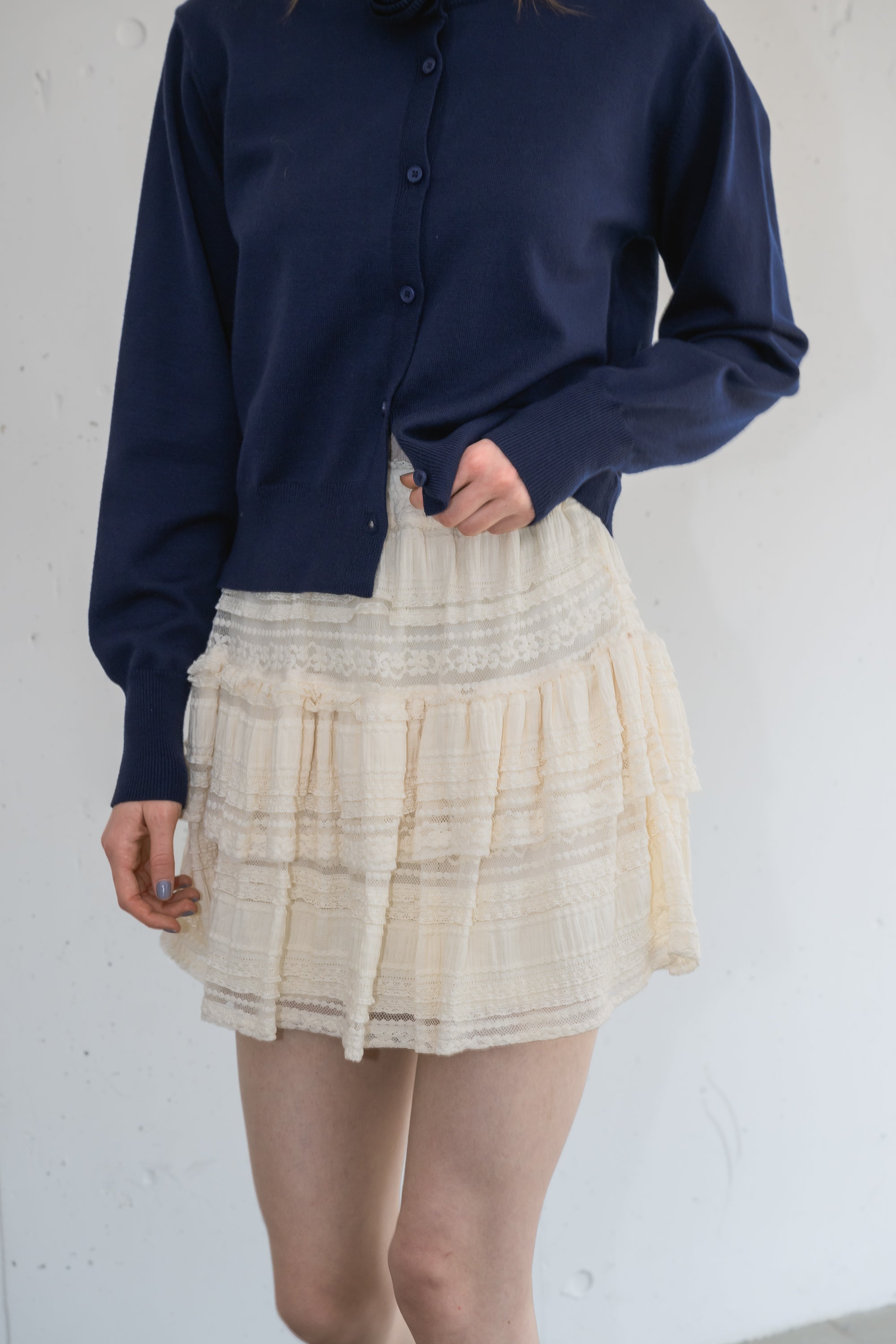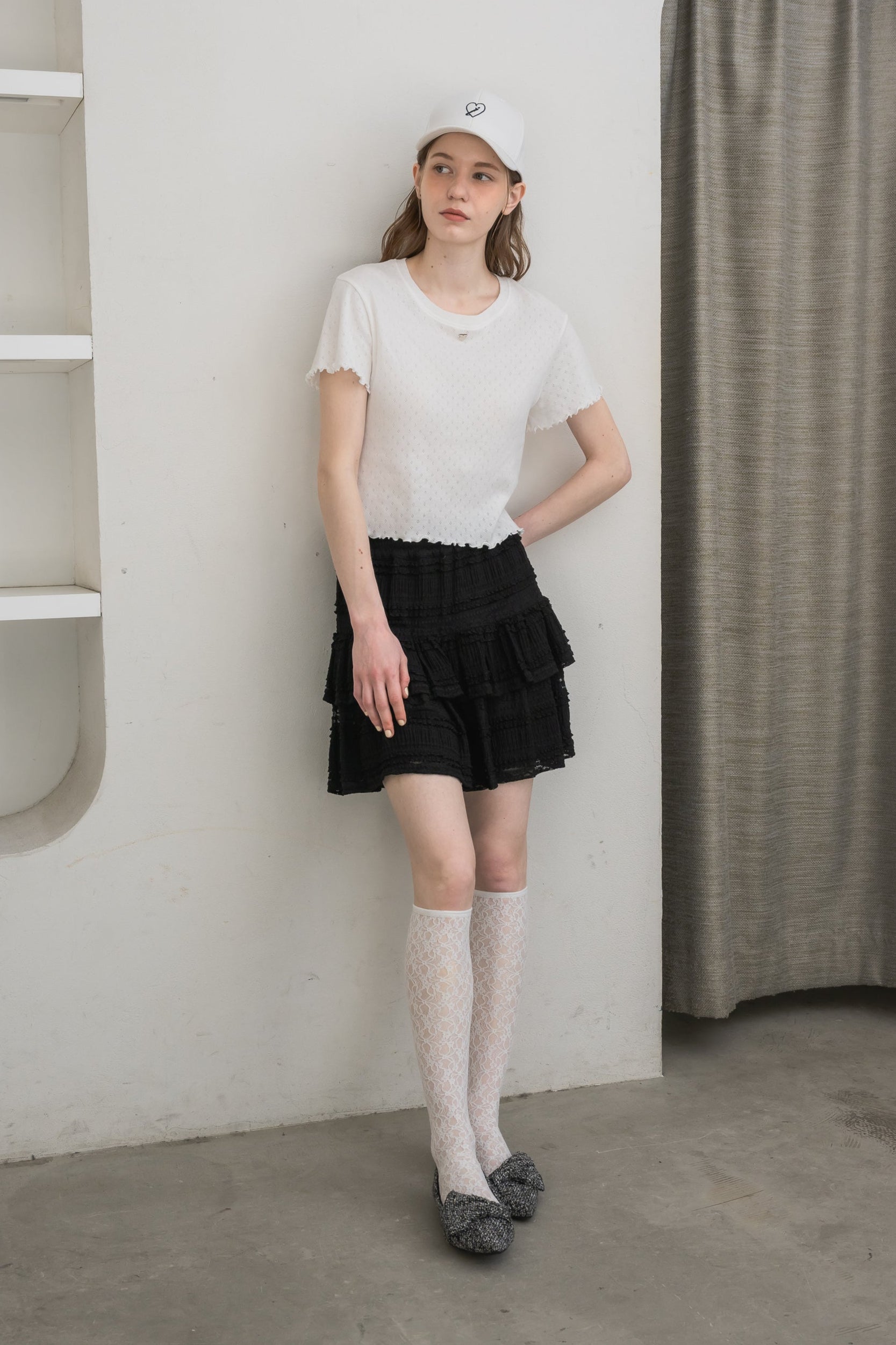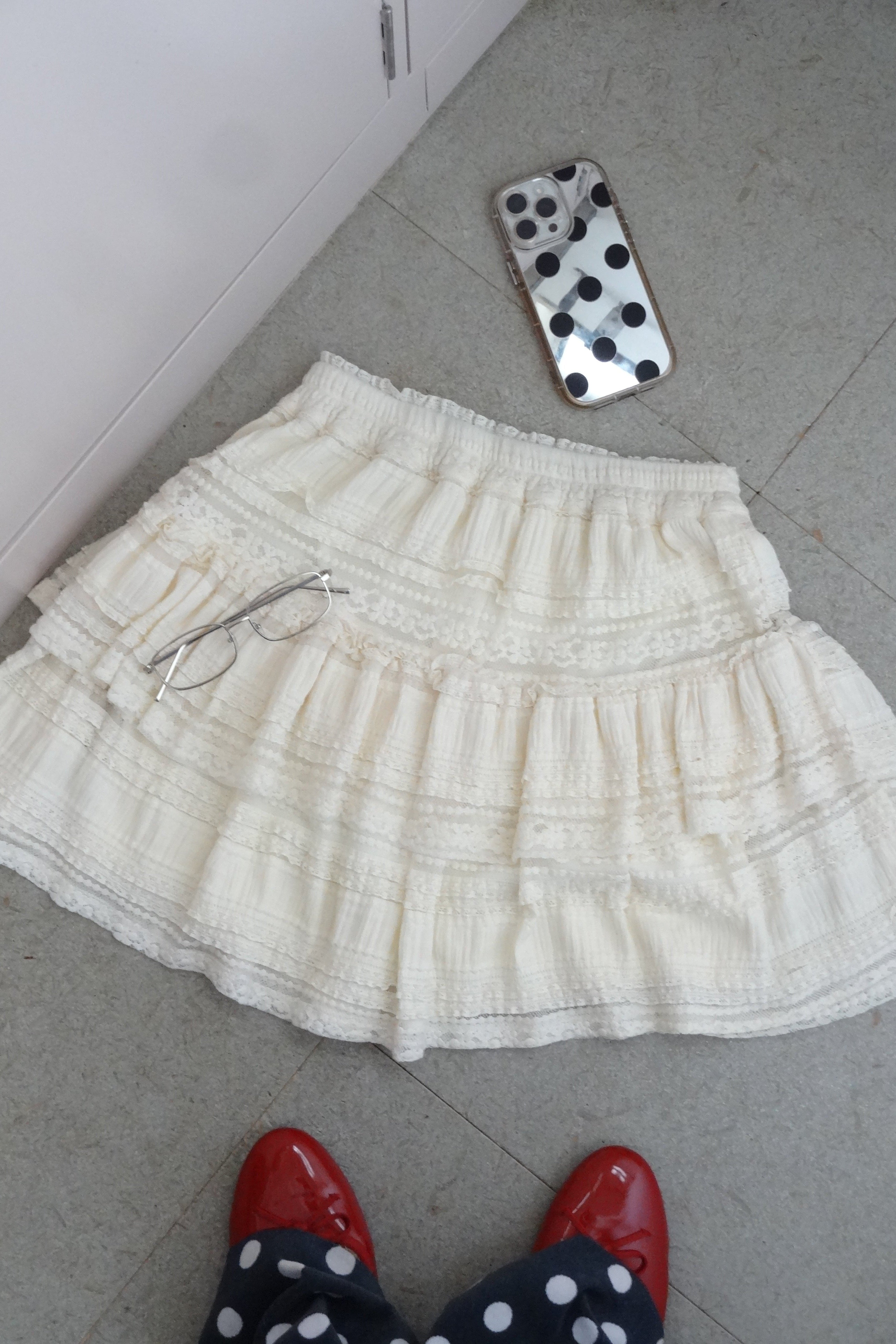 ボリューム感のあるレースティアードミニスカート