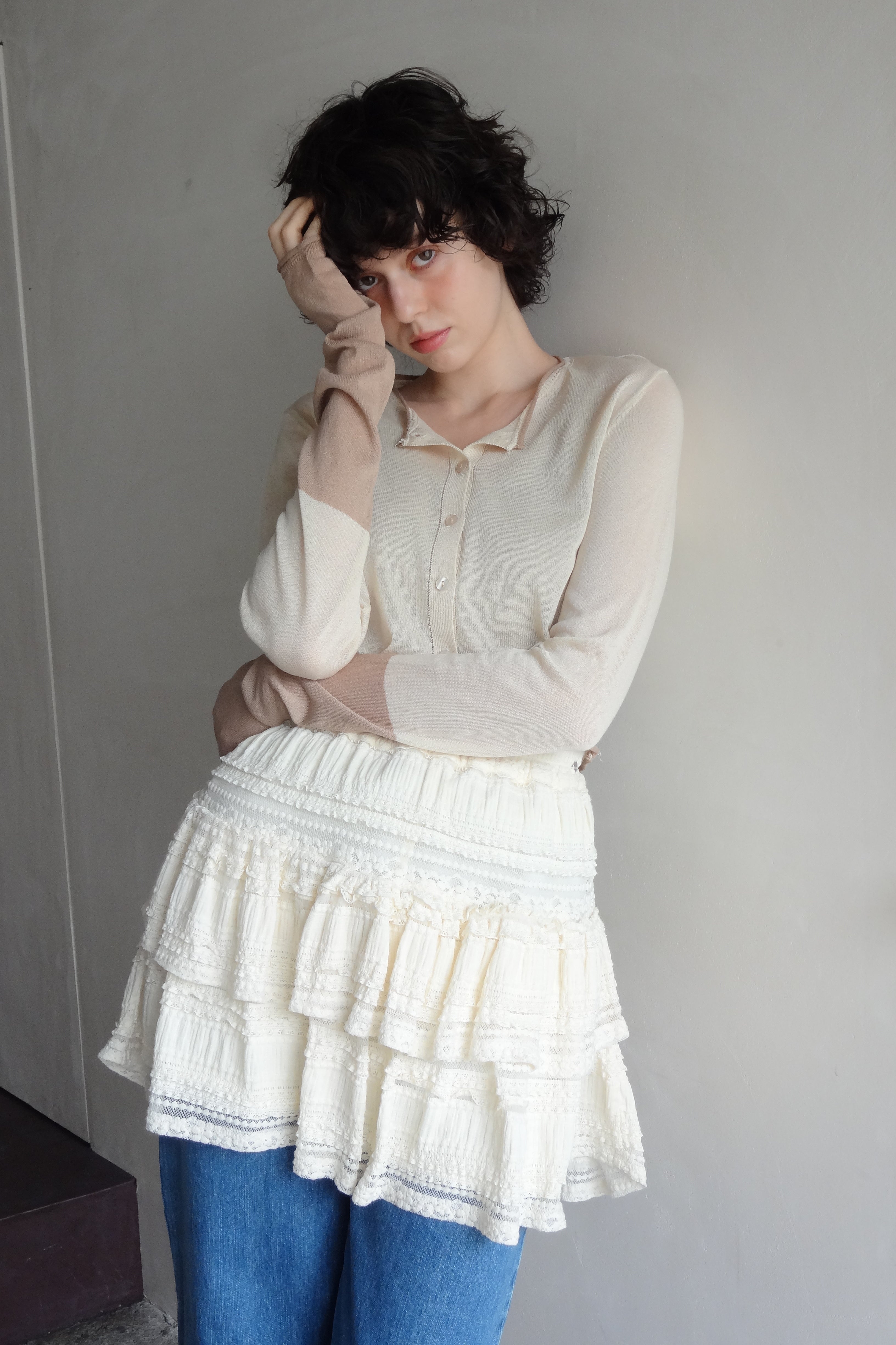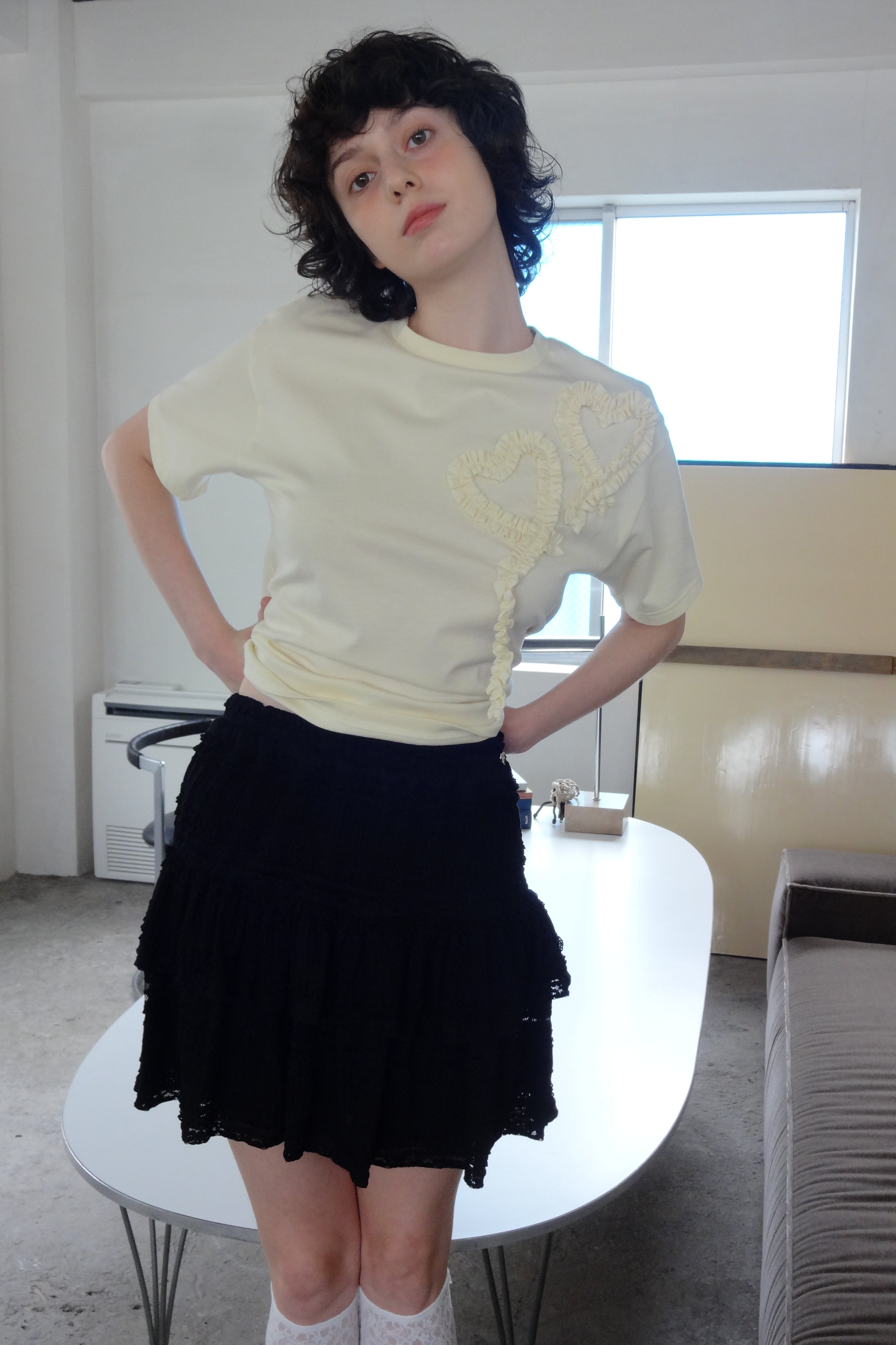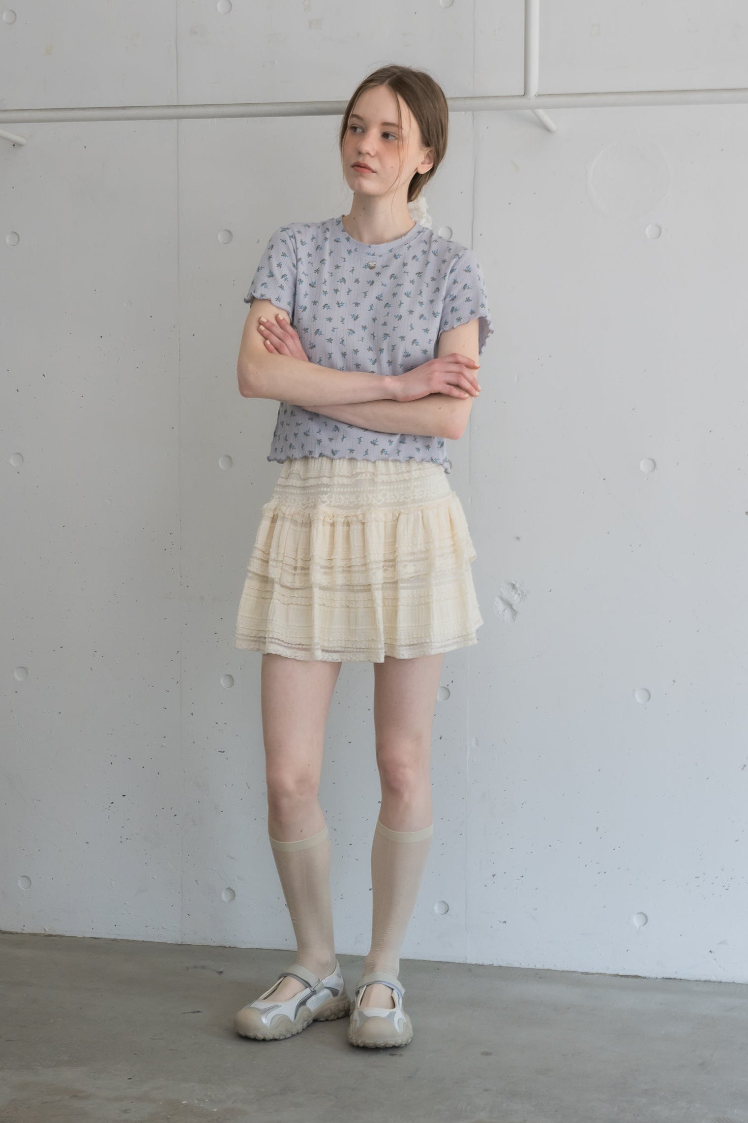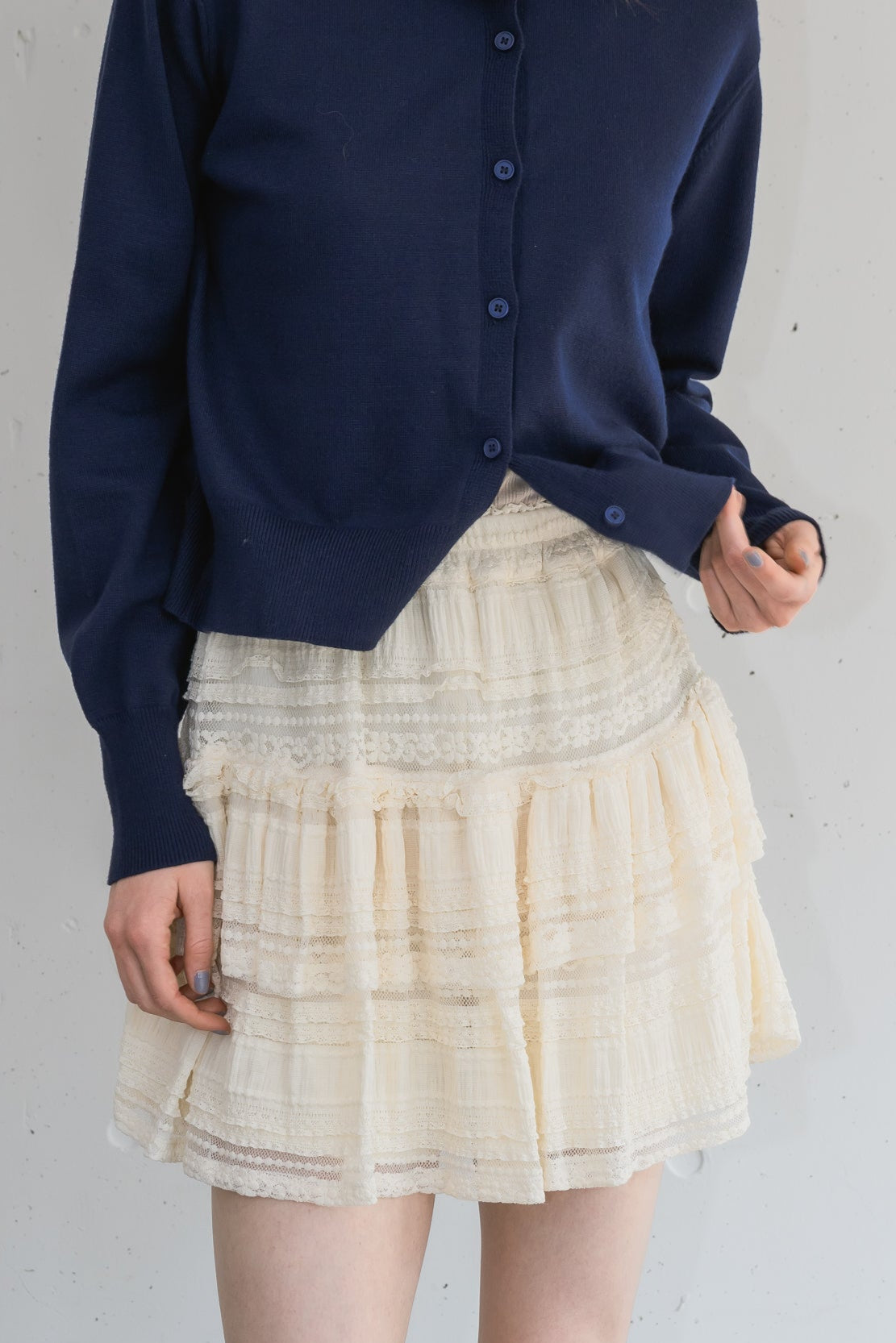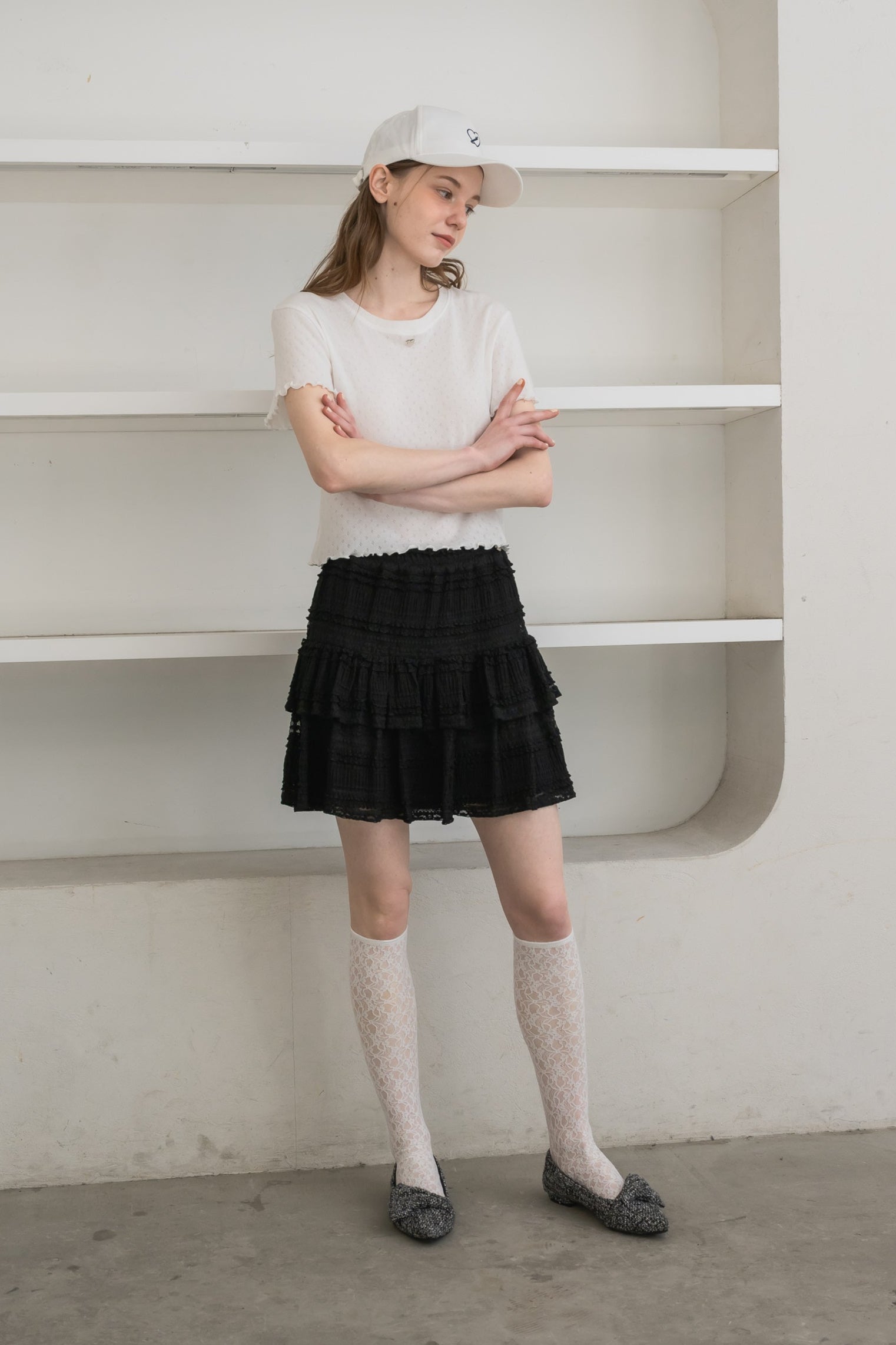ボリューム感のあるレースティアードミニスカート
