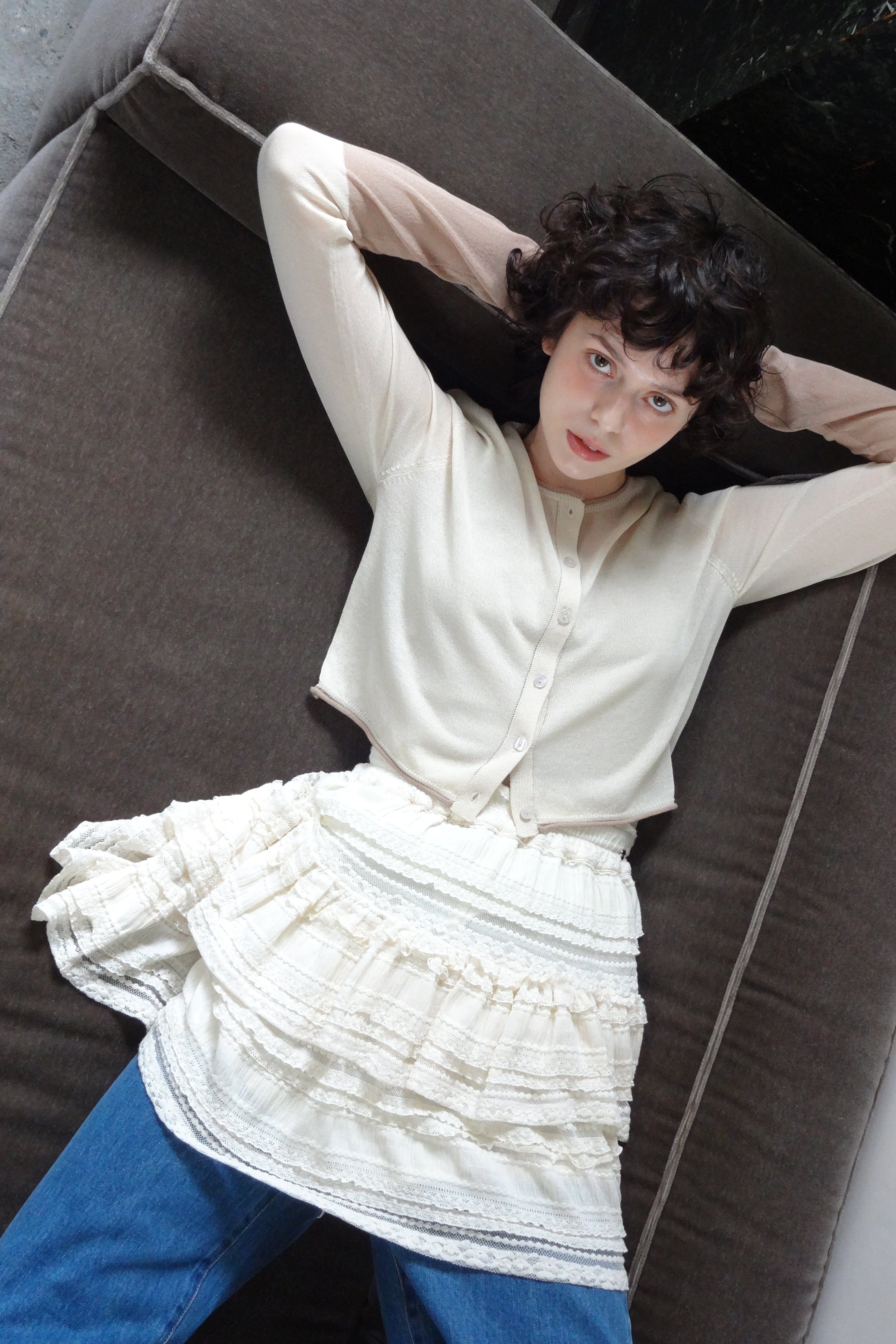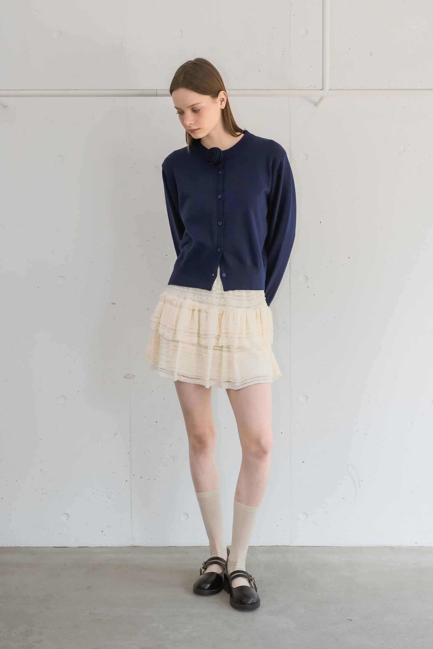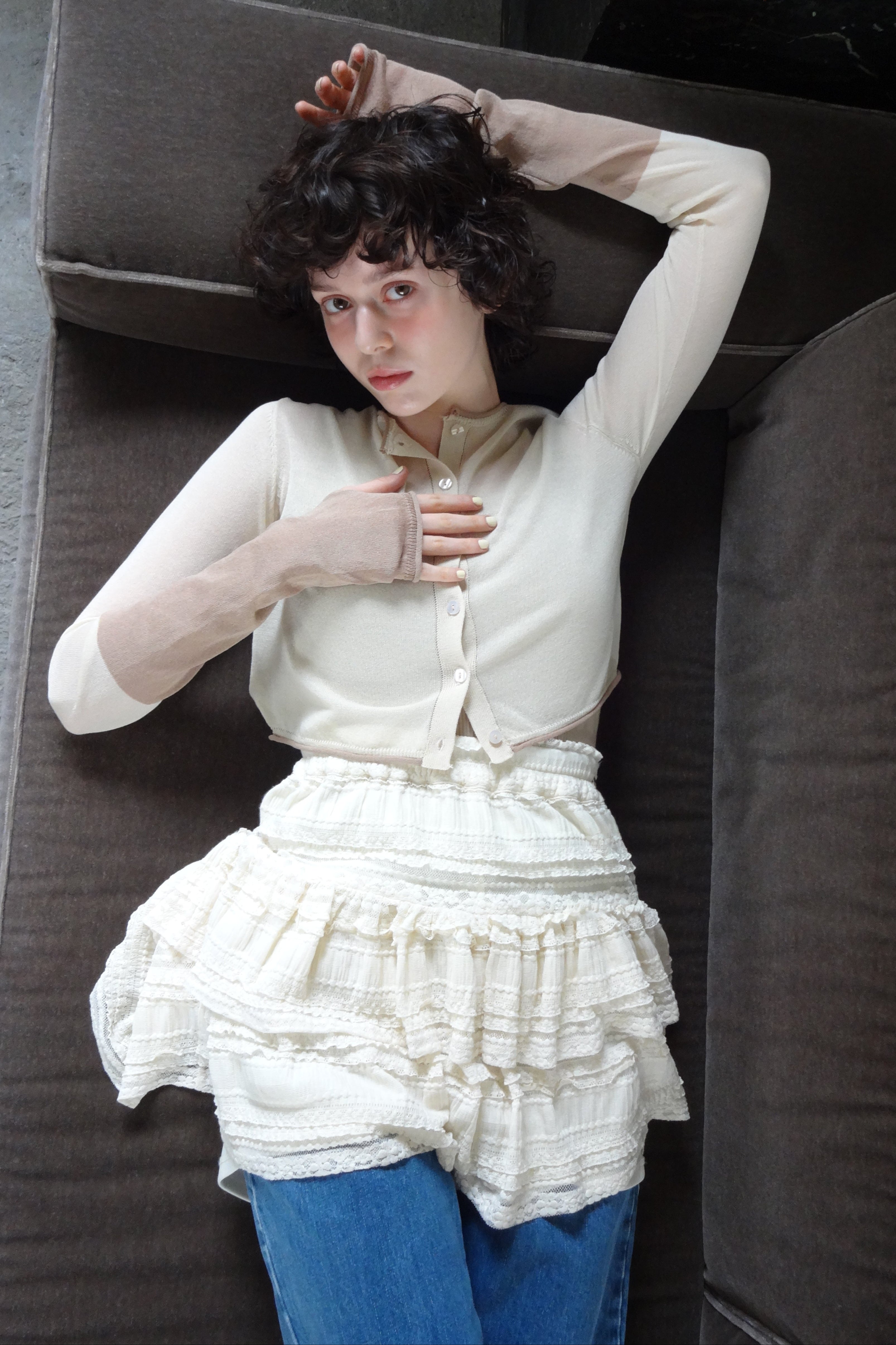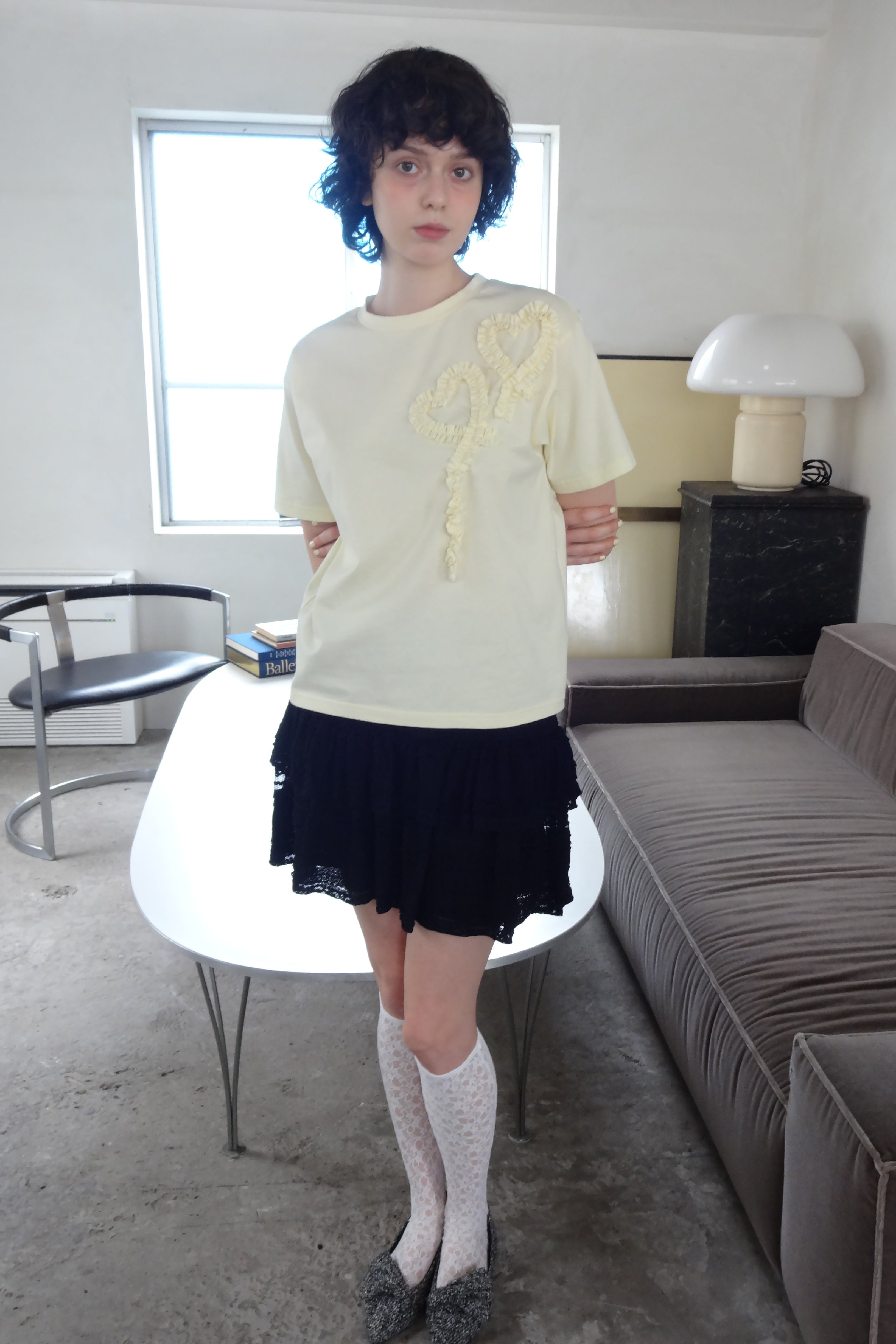 ボリューム感のあるレースティアードミニスカート