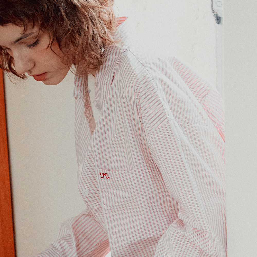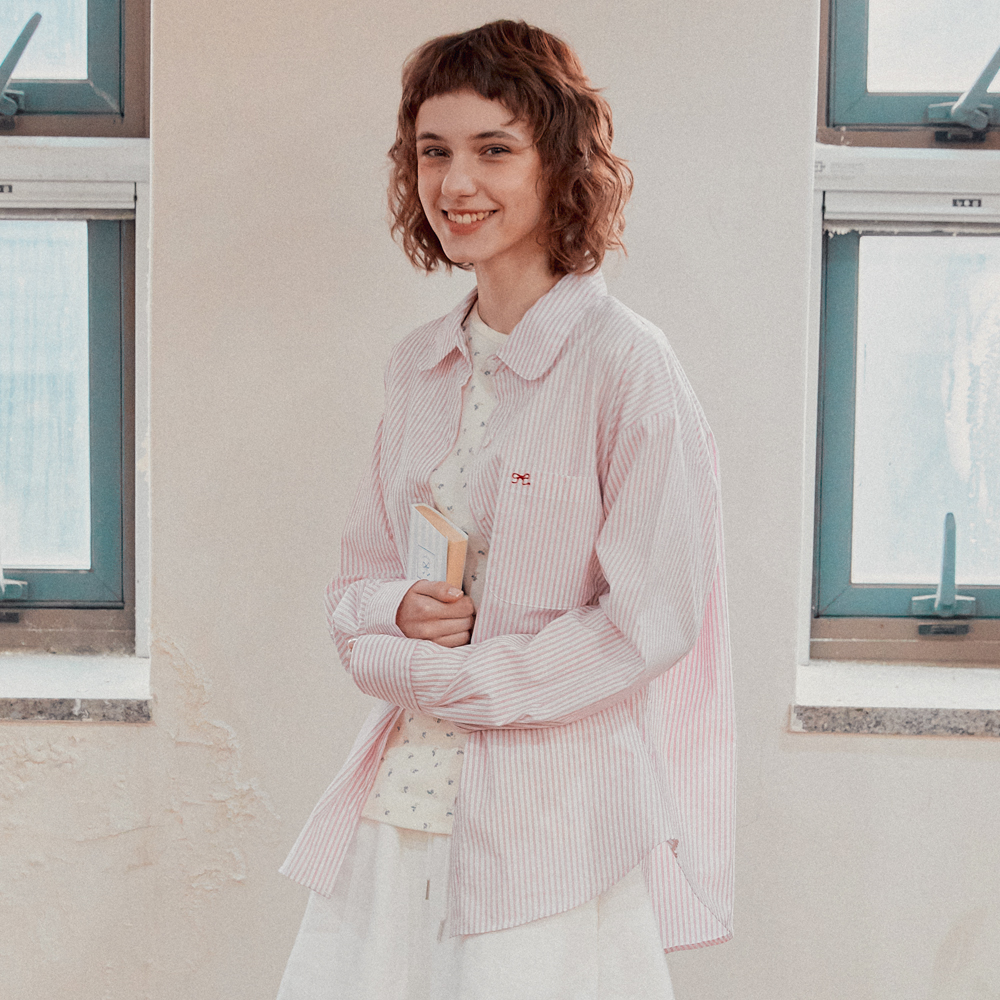 ROUND COLLAR POCKET SHIRT PINK STRIPE