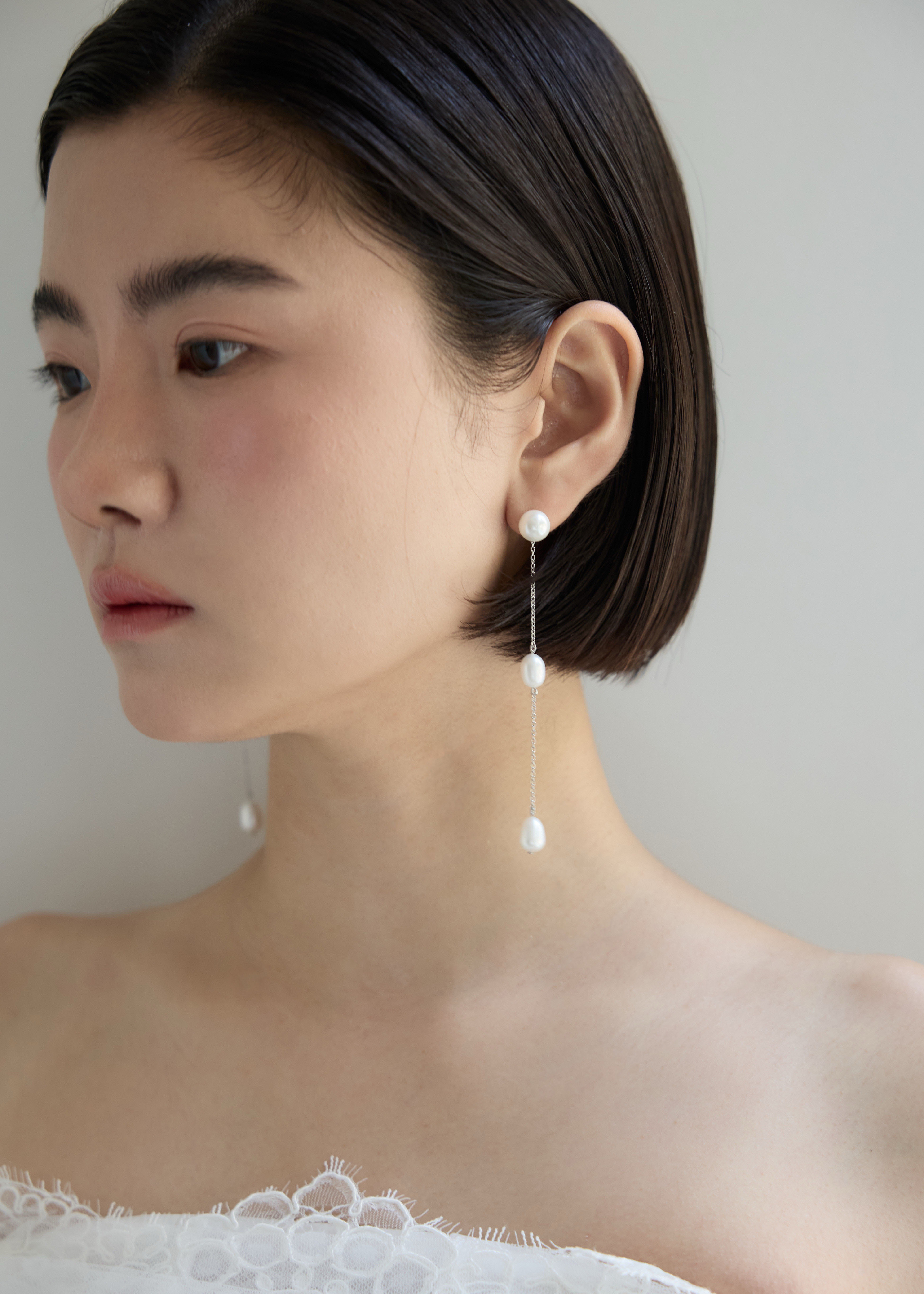 シンプルに8mmパールのみで着用することも可能で、さまざまなスタイリングができます。(※ピアス〈ポストタイプ〉オプションに限ります)