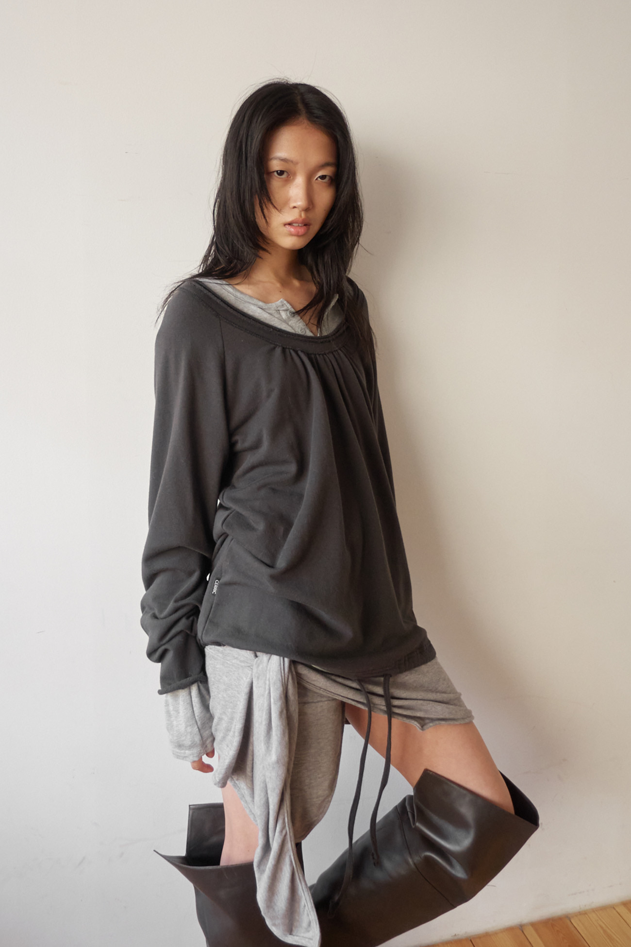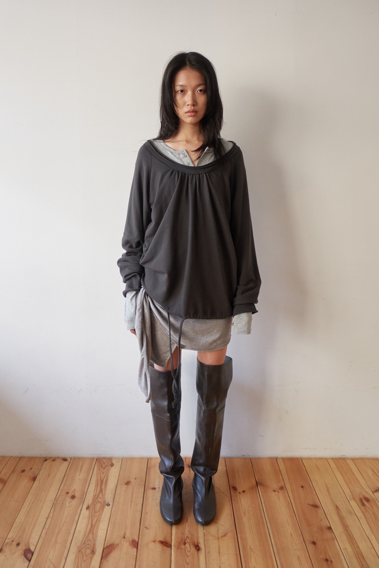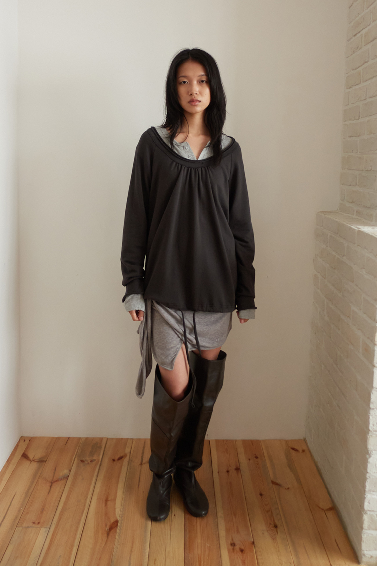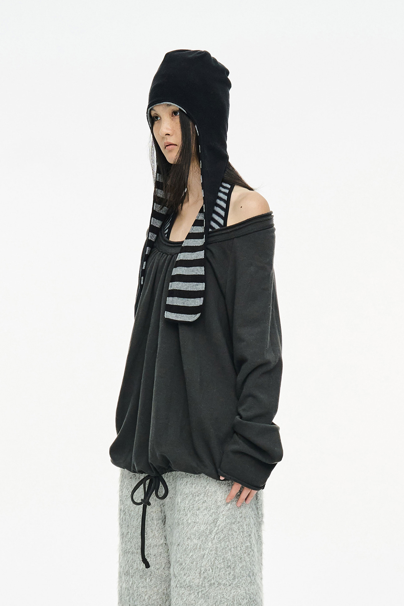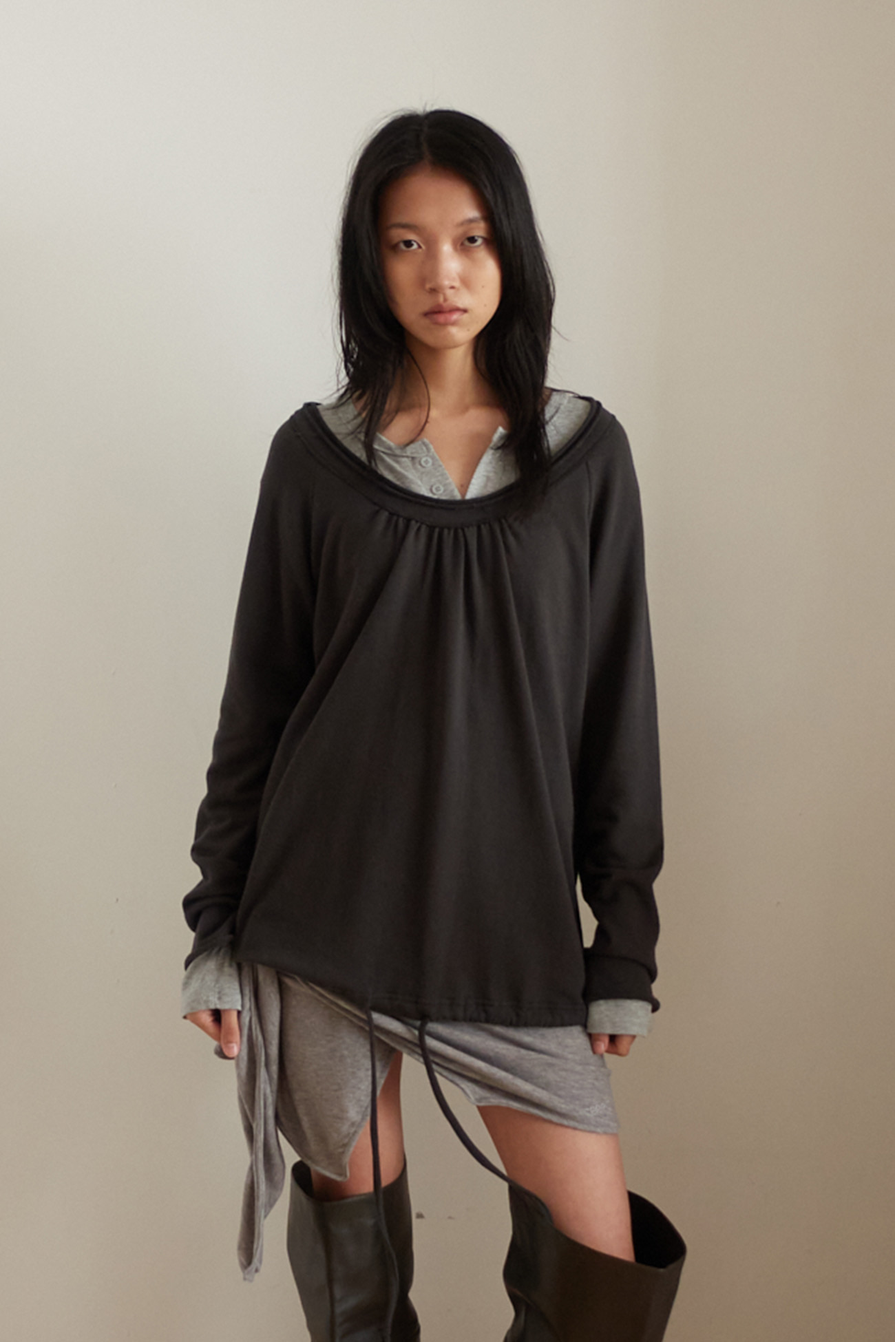 [EXCLUSIVE] ROUND HEM STRING TOP / CHARCOAL