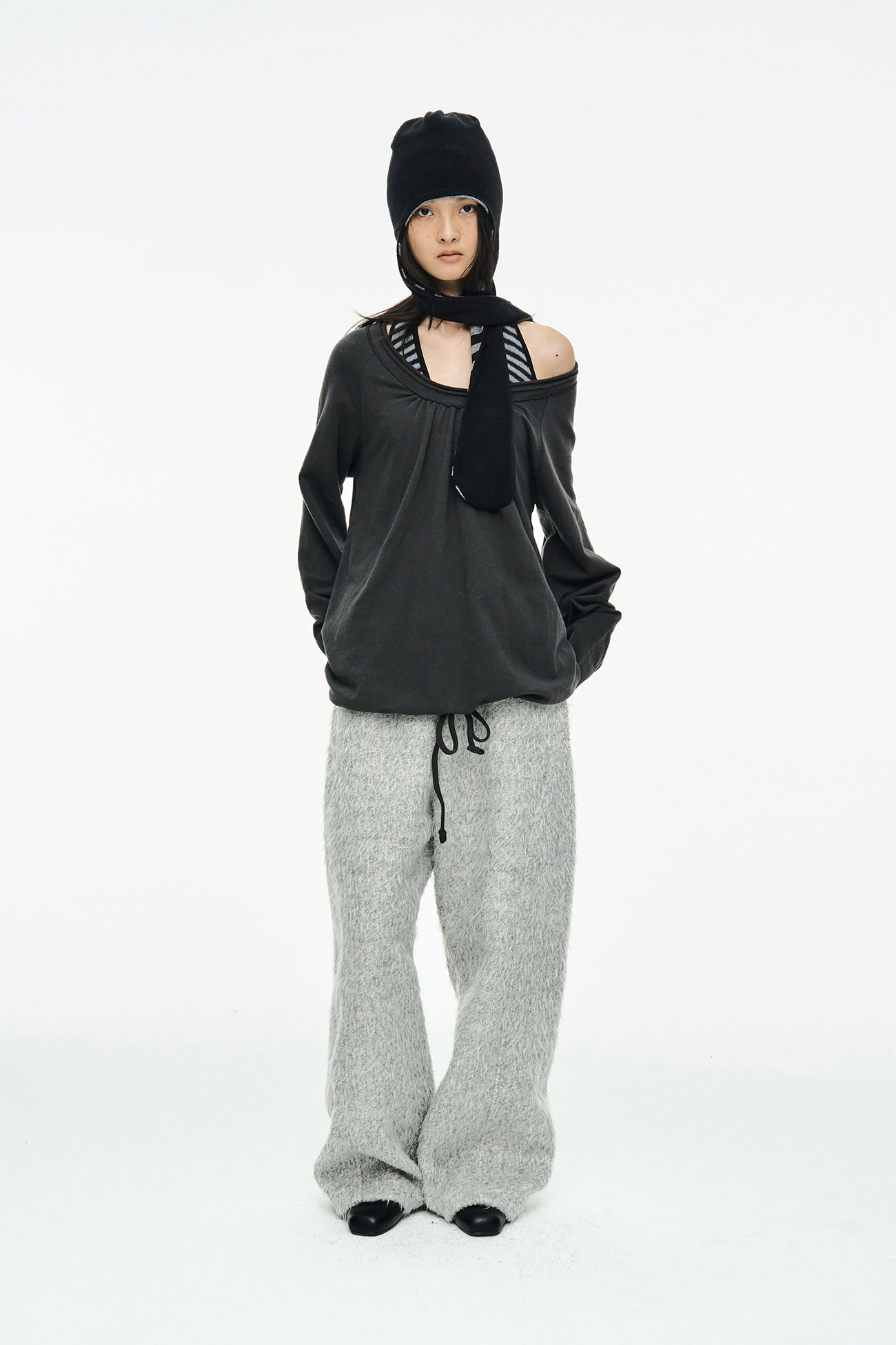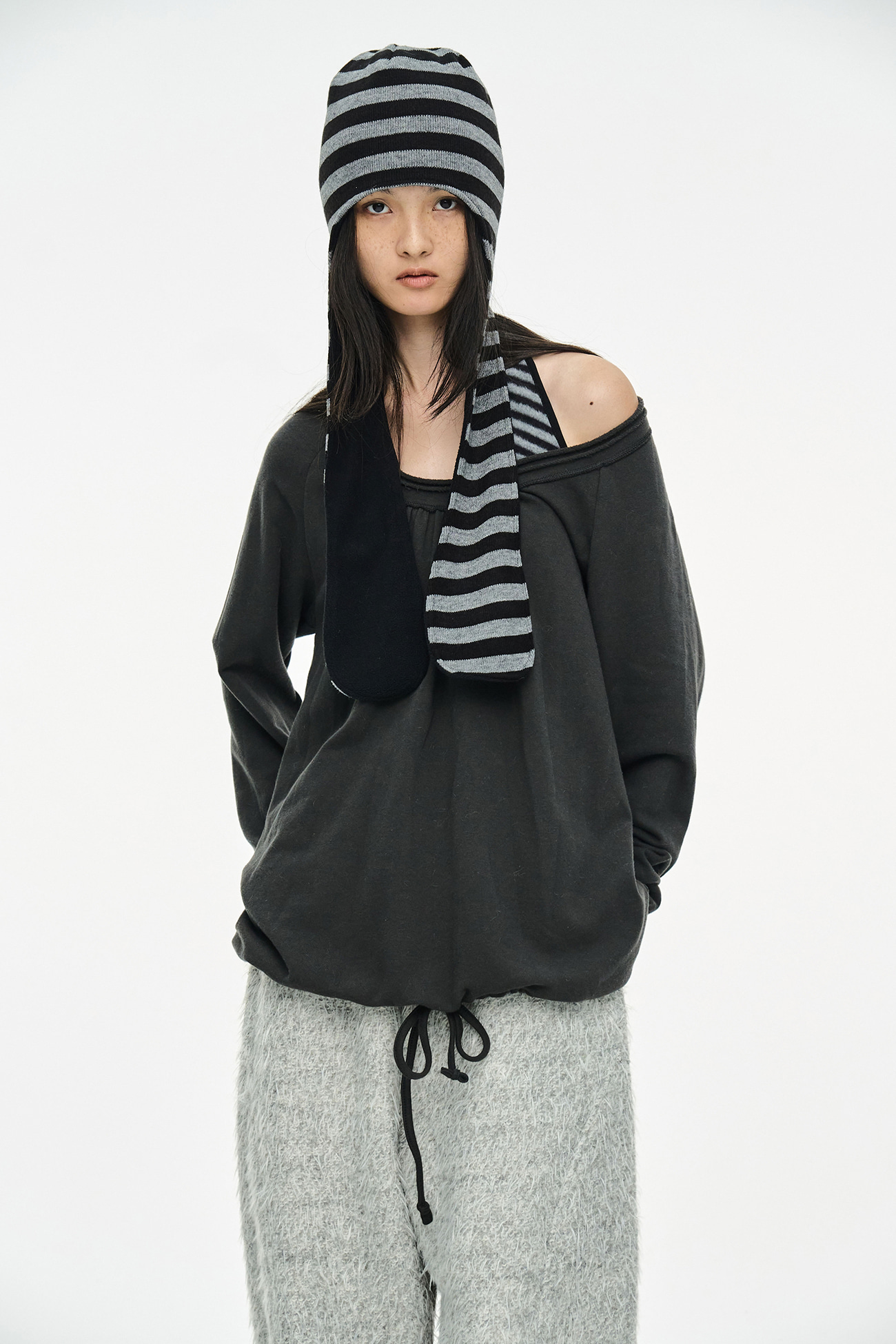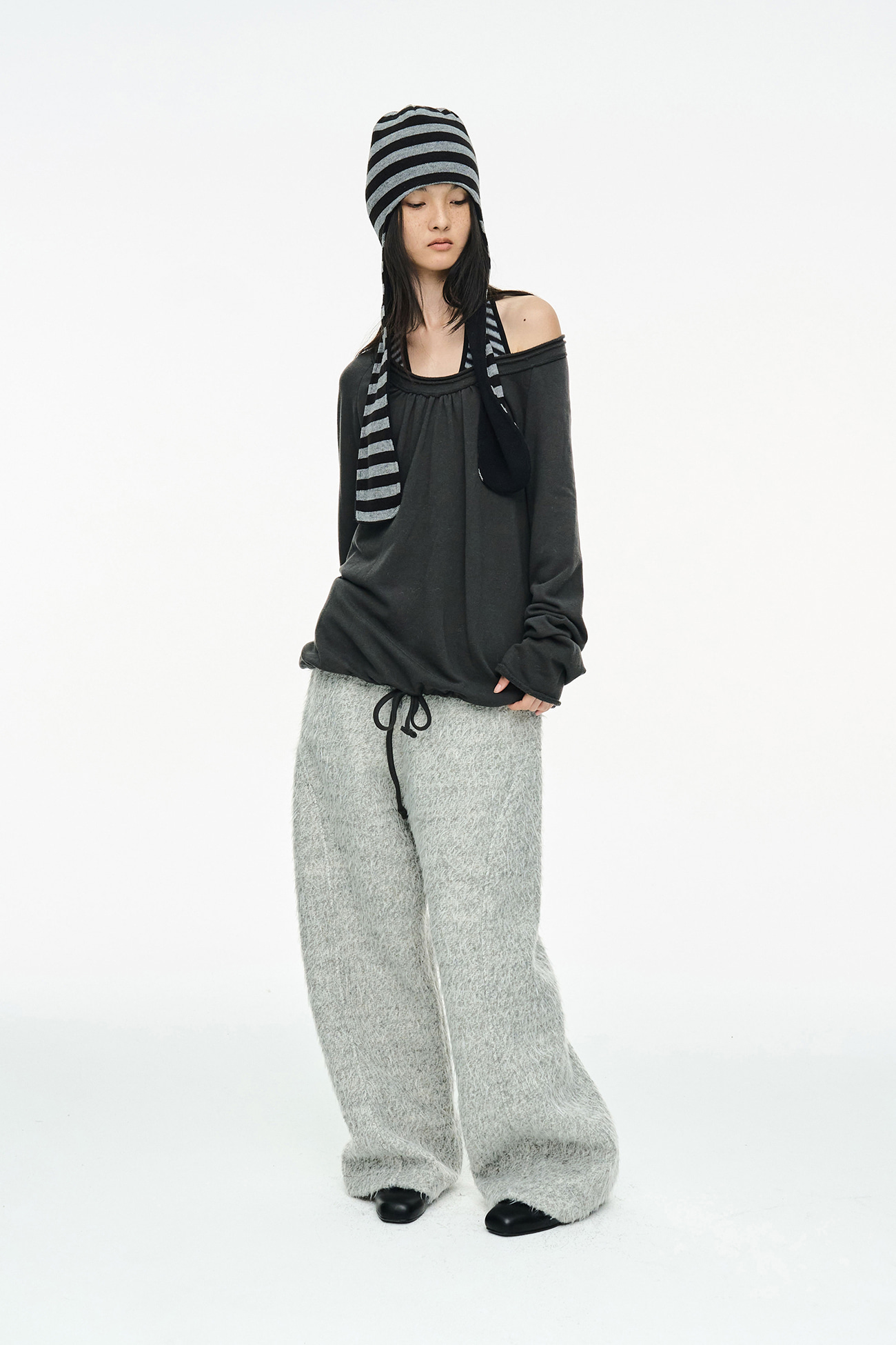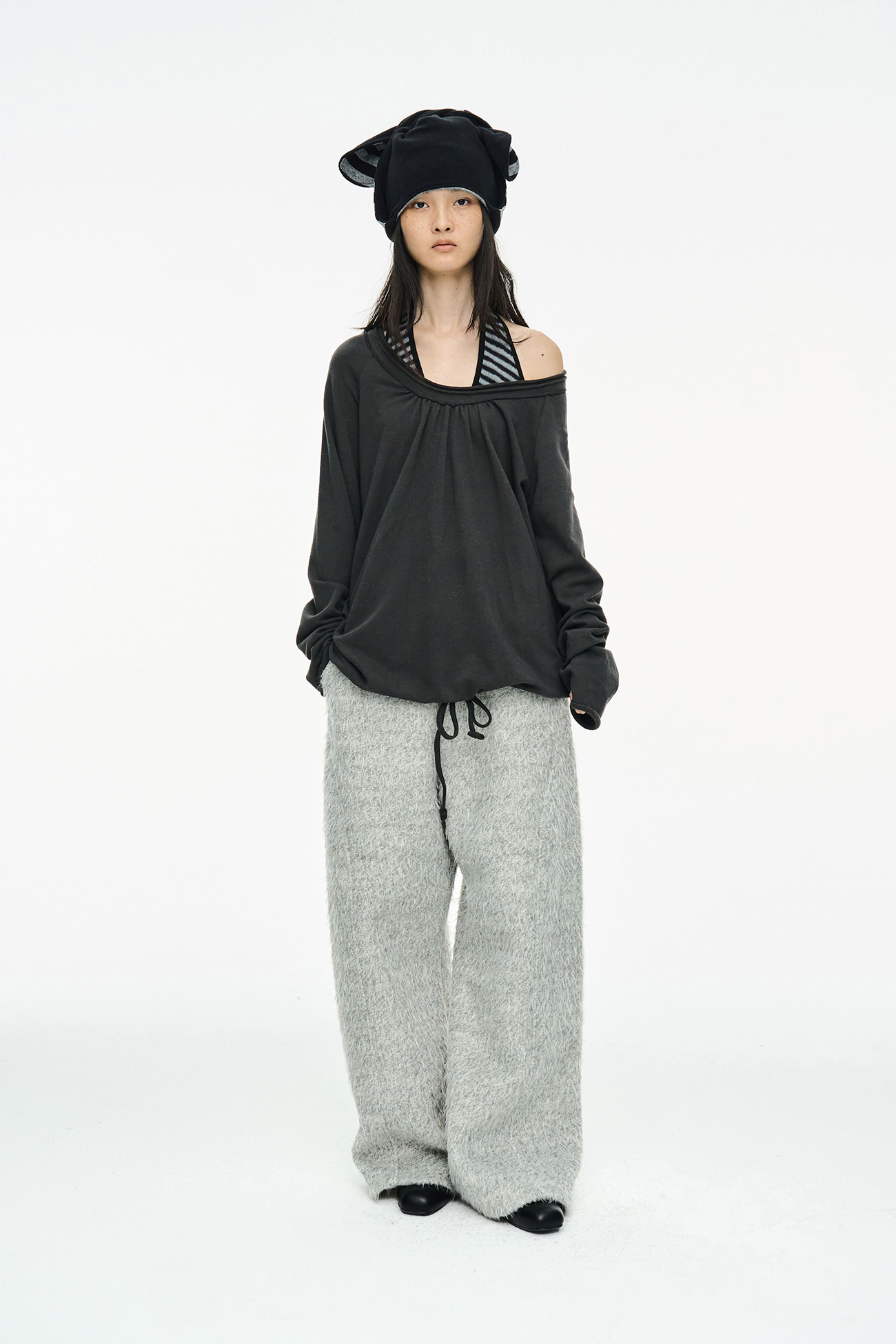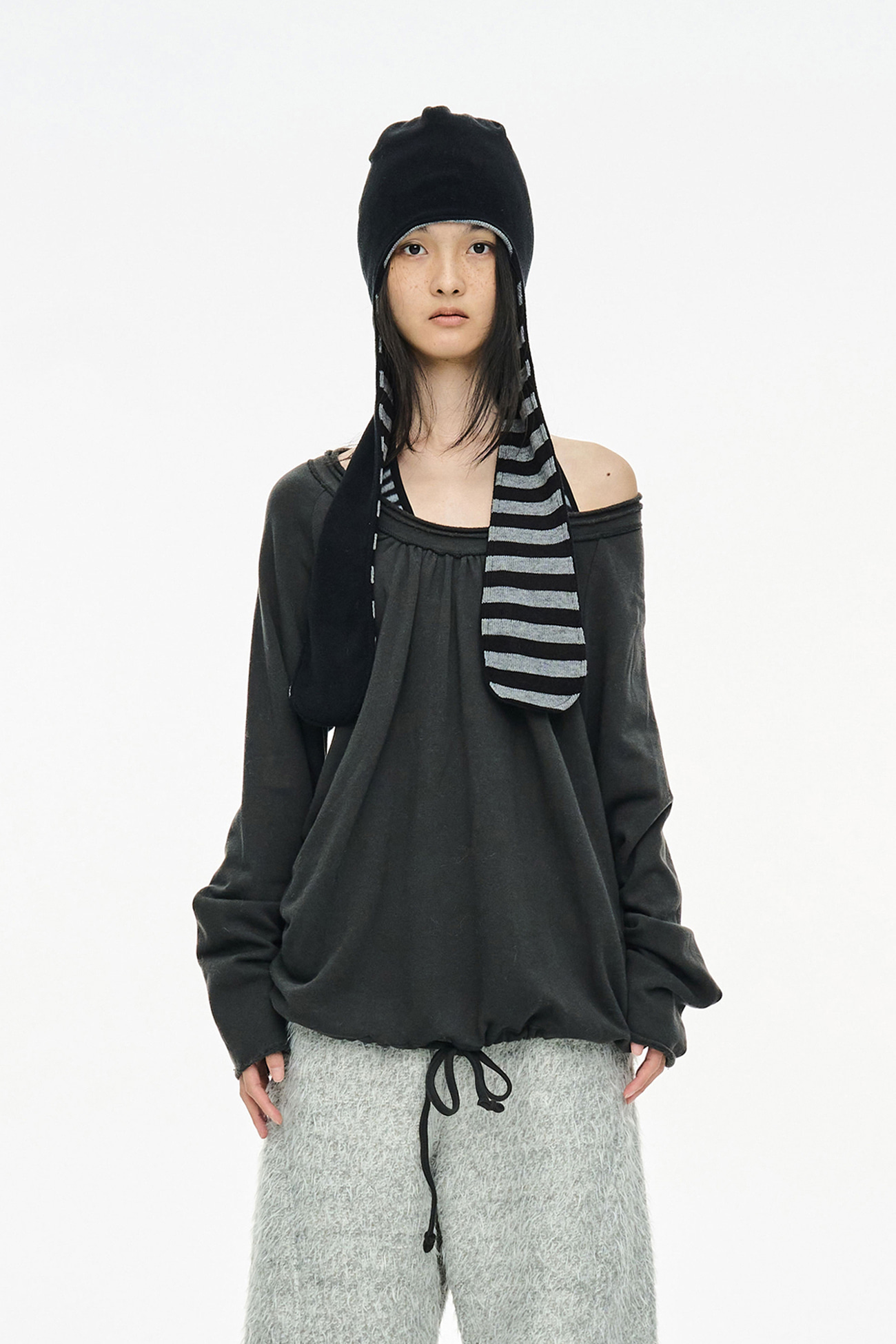[EXCLUSIVE] ROUND HEM STRING TOP / CHARCOAL