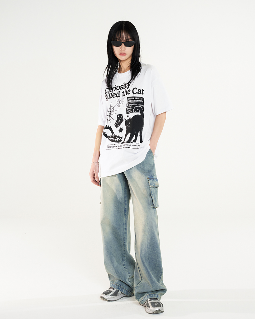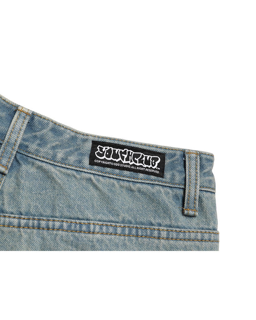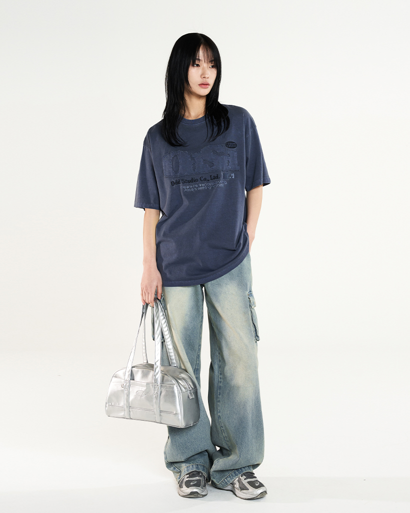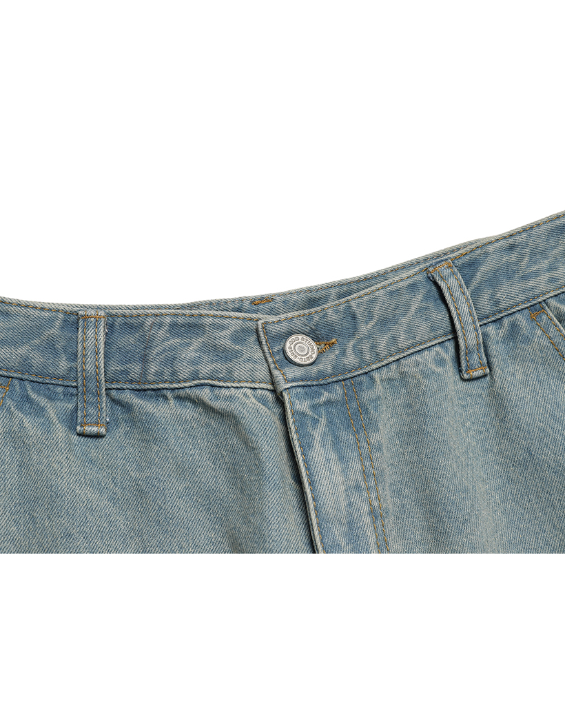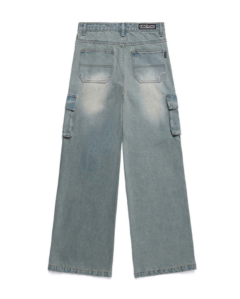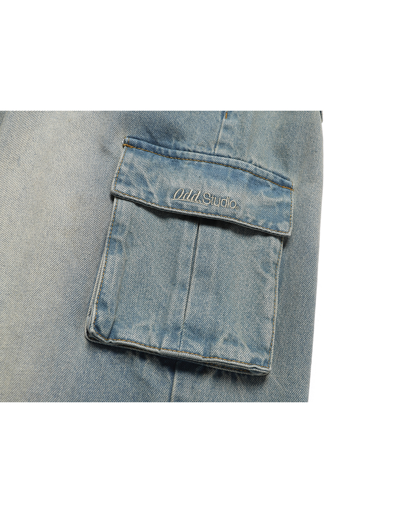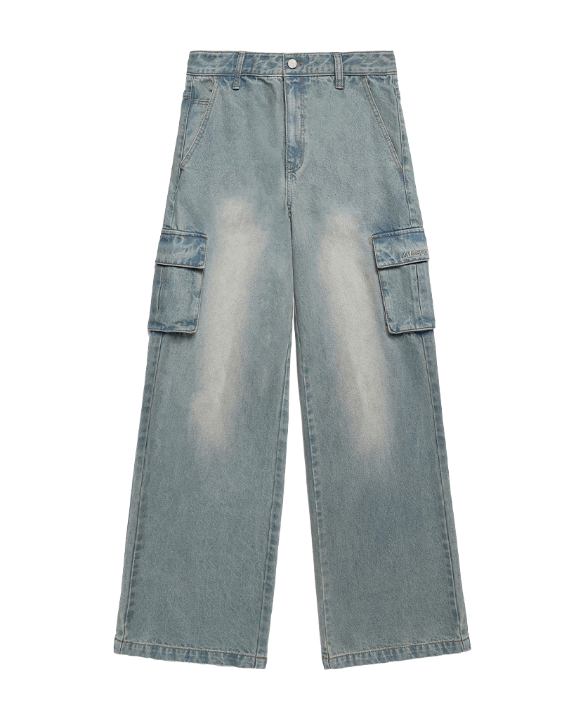 [Influencer pick] Sand Washing Cargo Wide Denim Pants - light blue