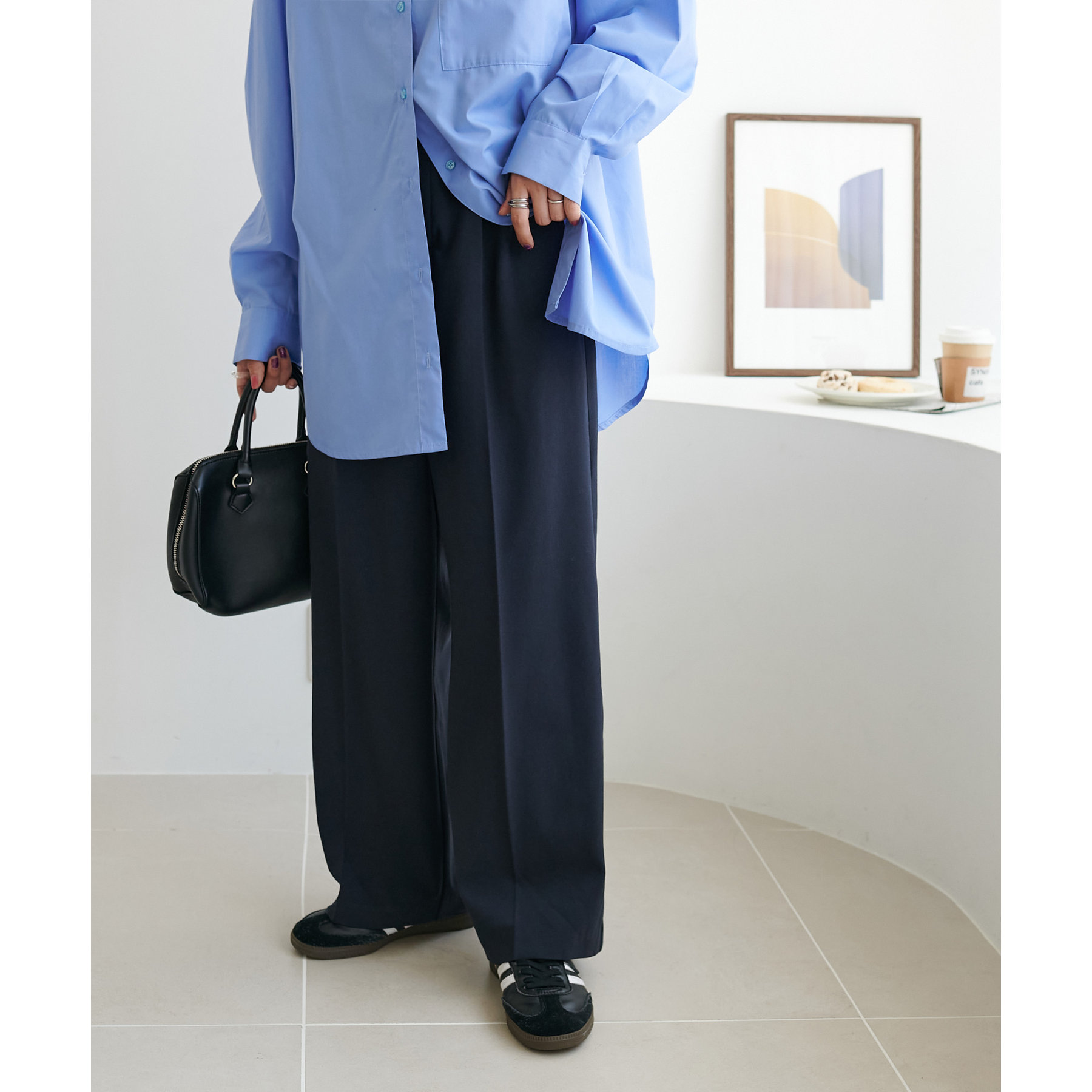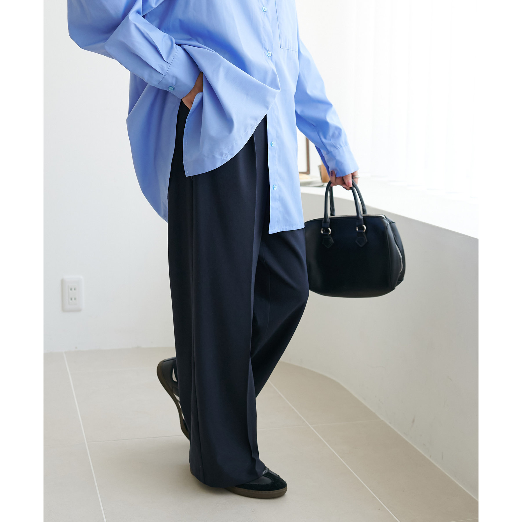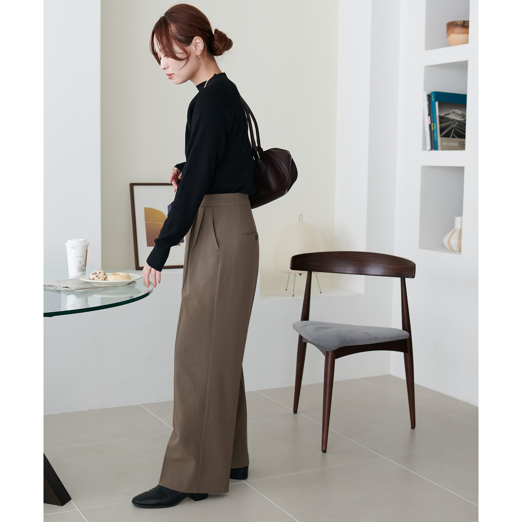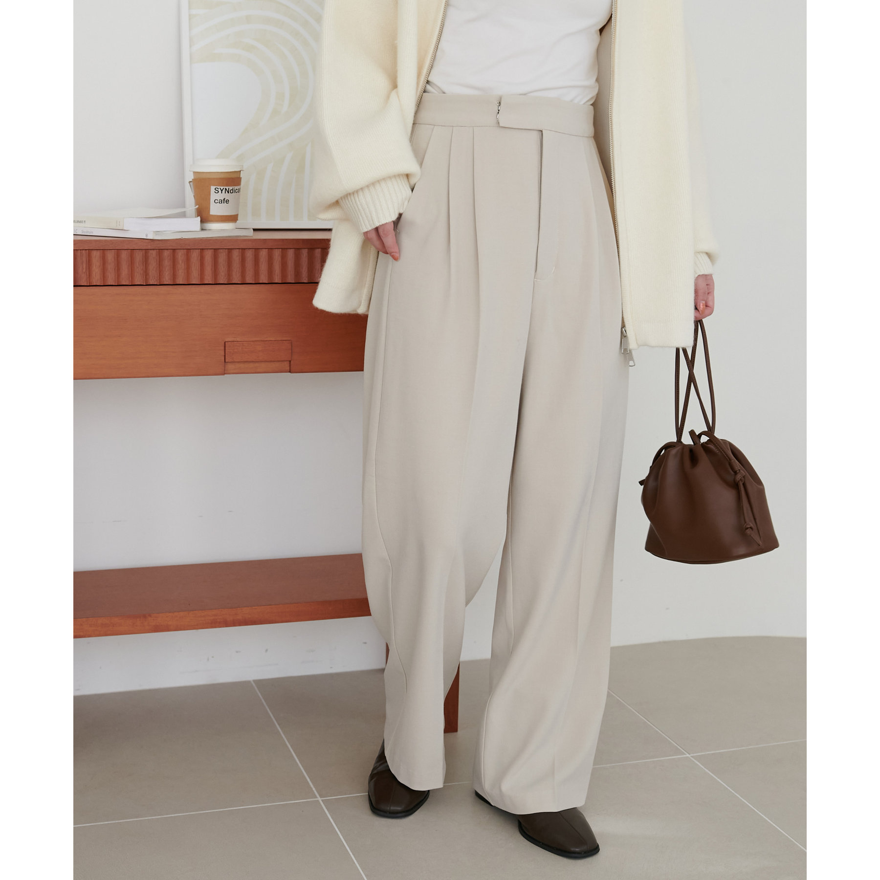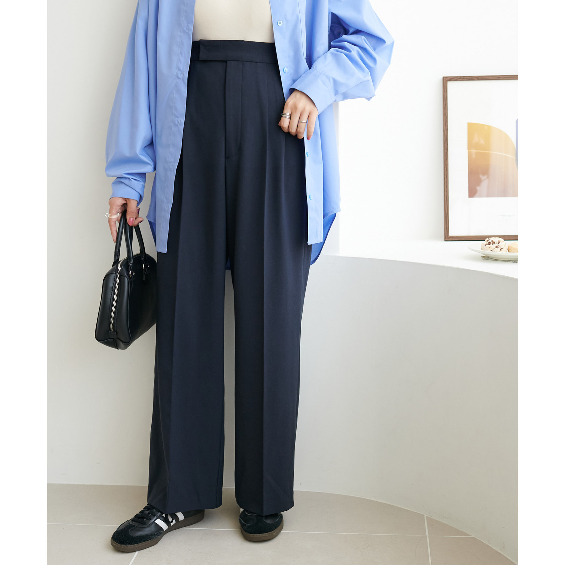 2タックデザインで腰回りをカバーし、キレイな落ち感のあるシルエットに仕上げました。