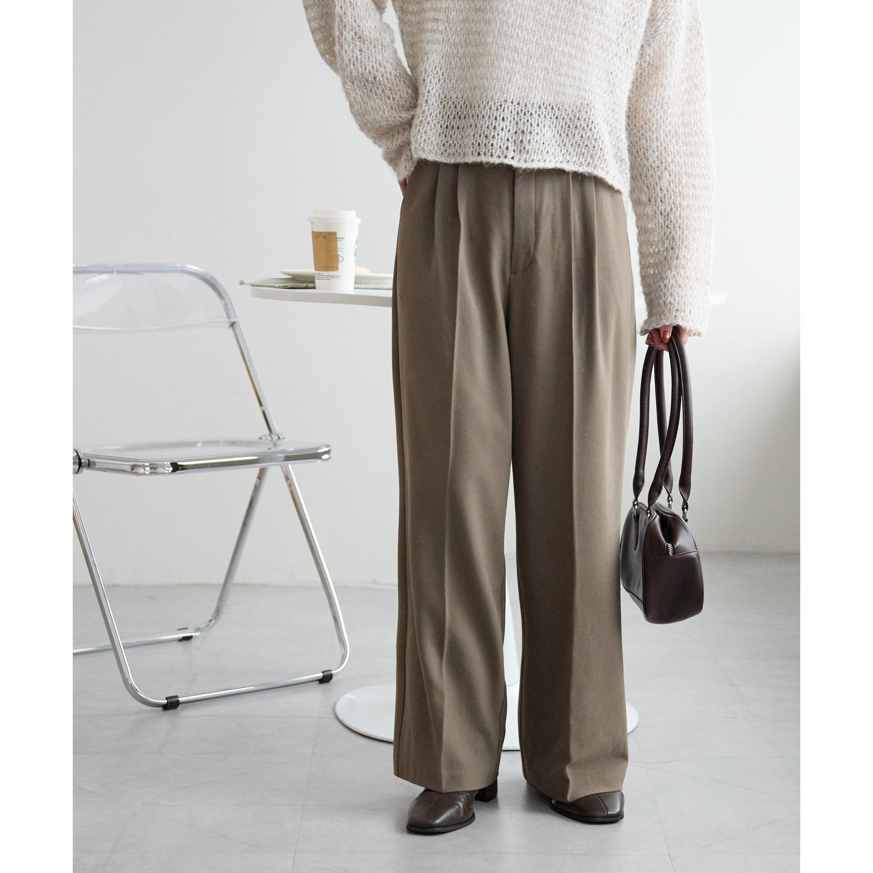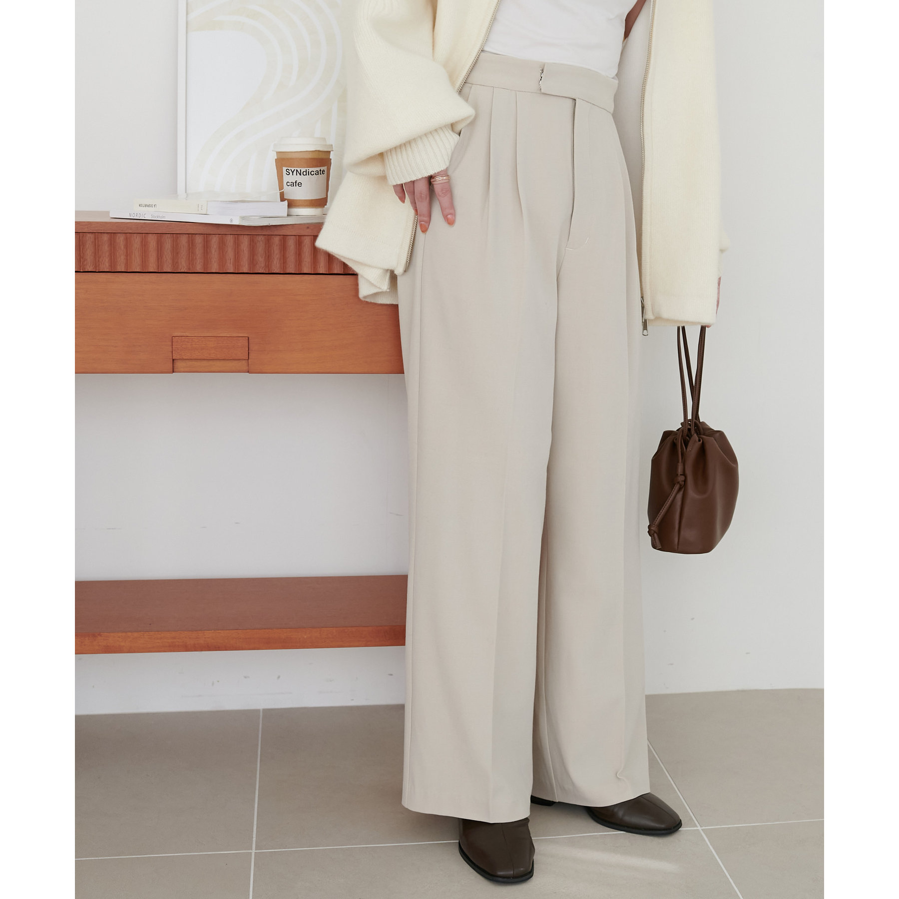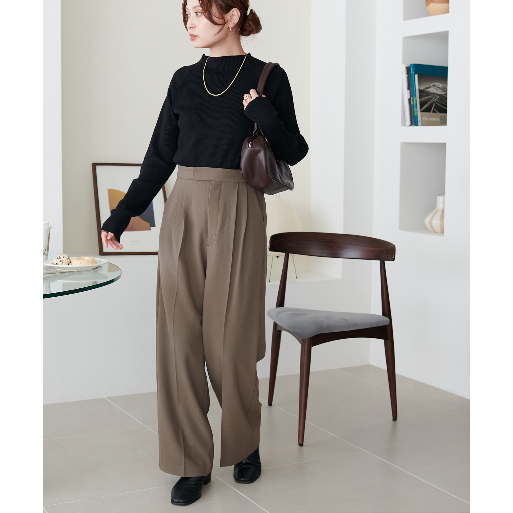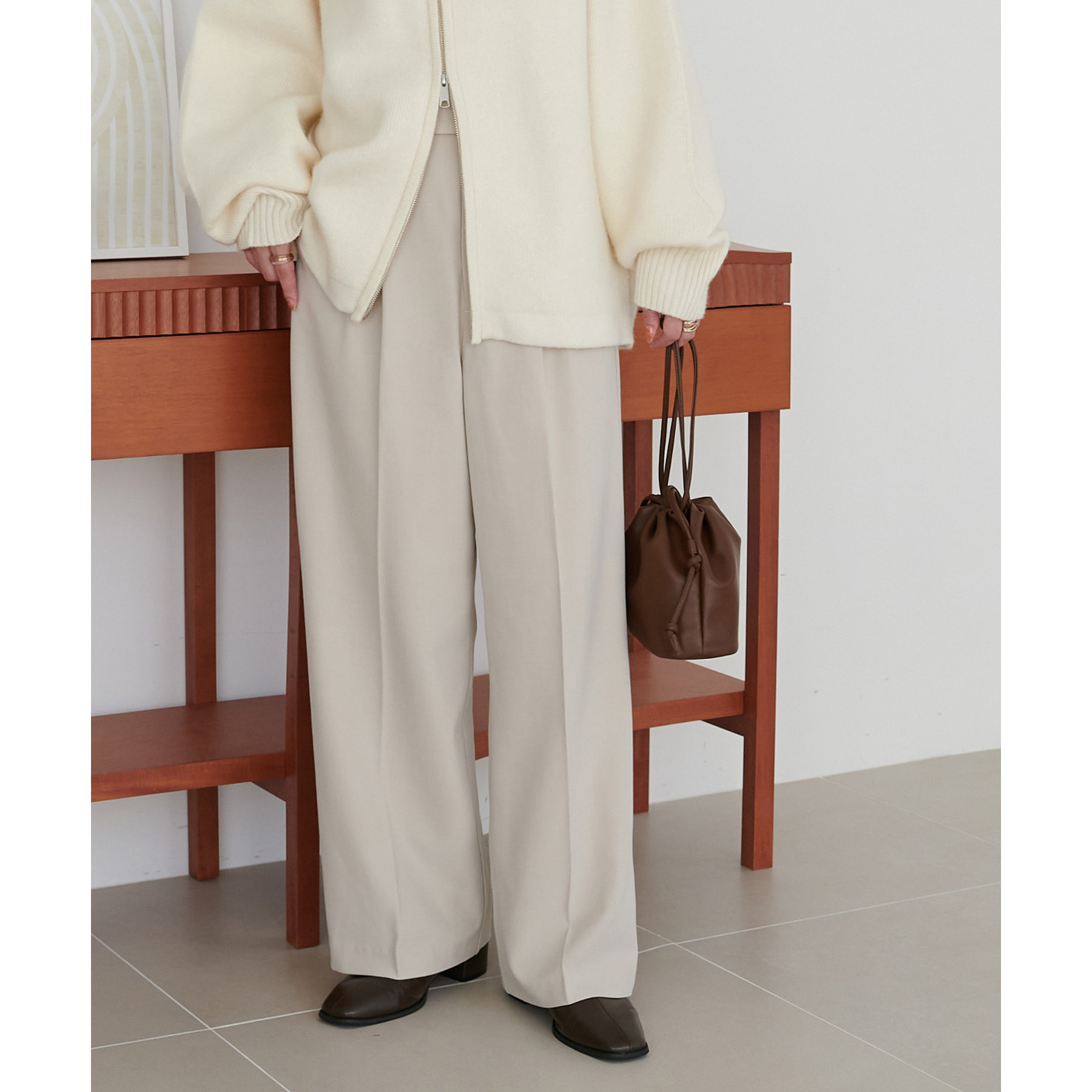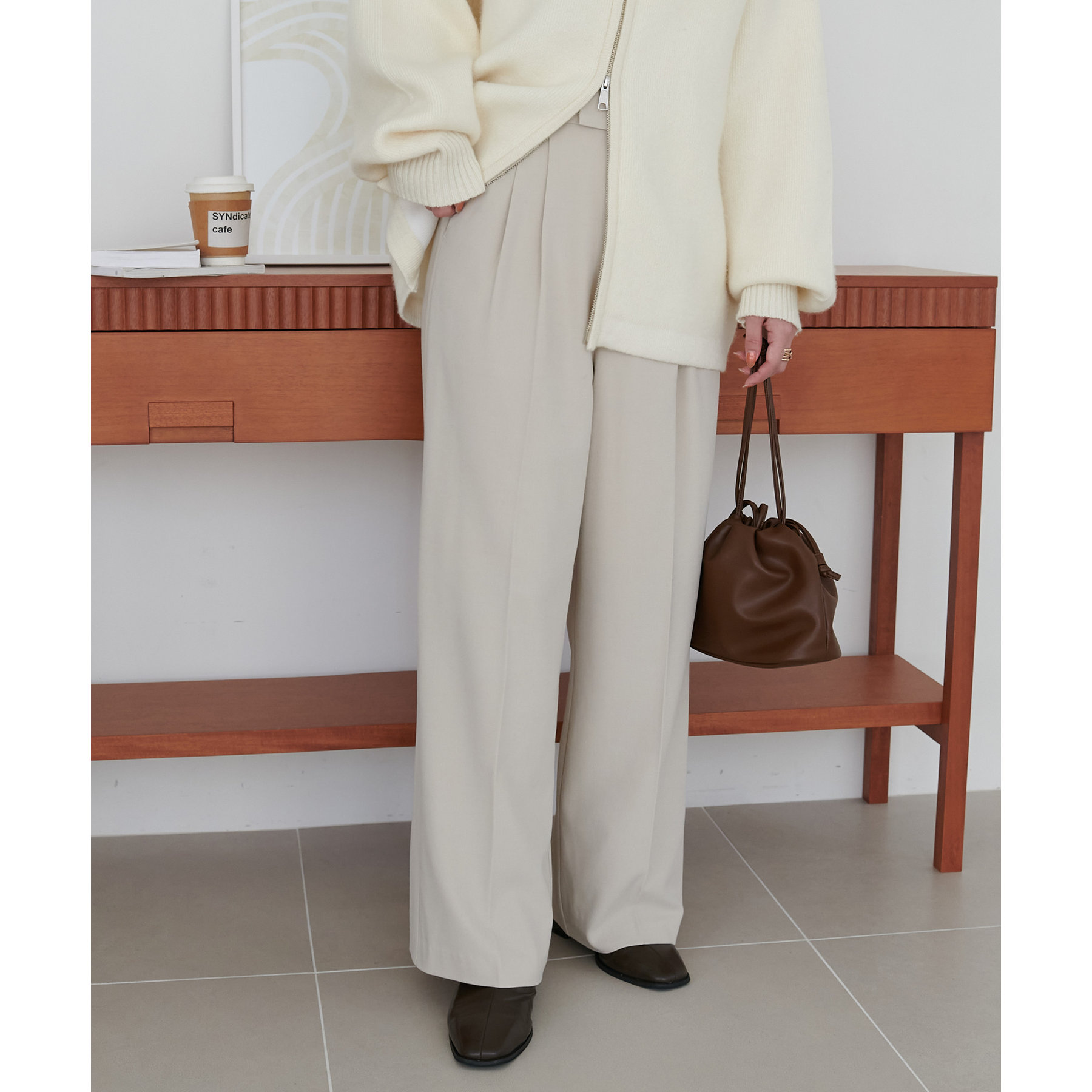 2タックデザインで腰回りをカバーし、キレイな落ち感のあるシルエットに仕上げました。
