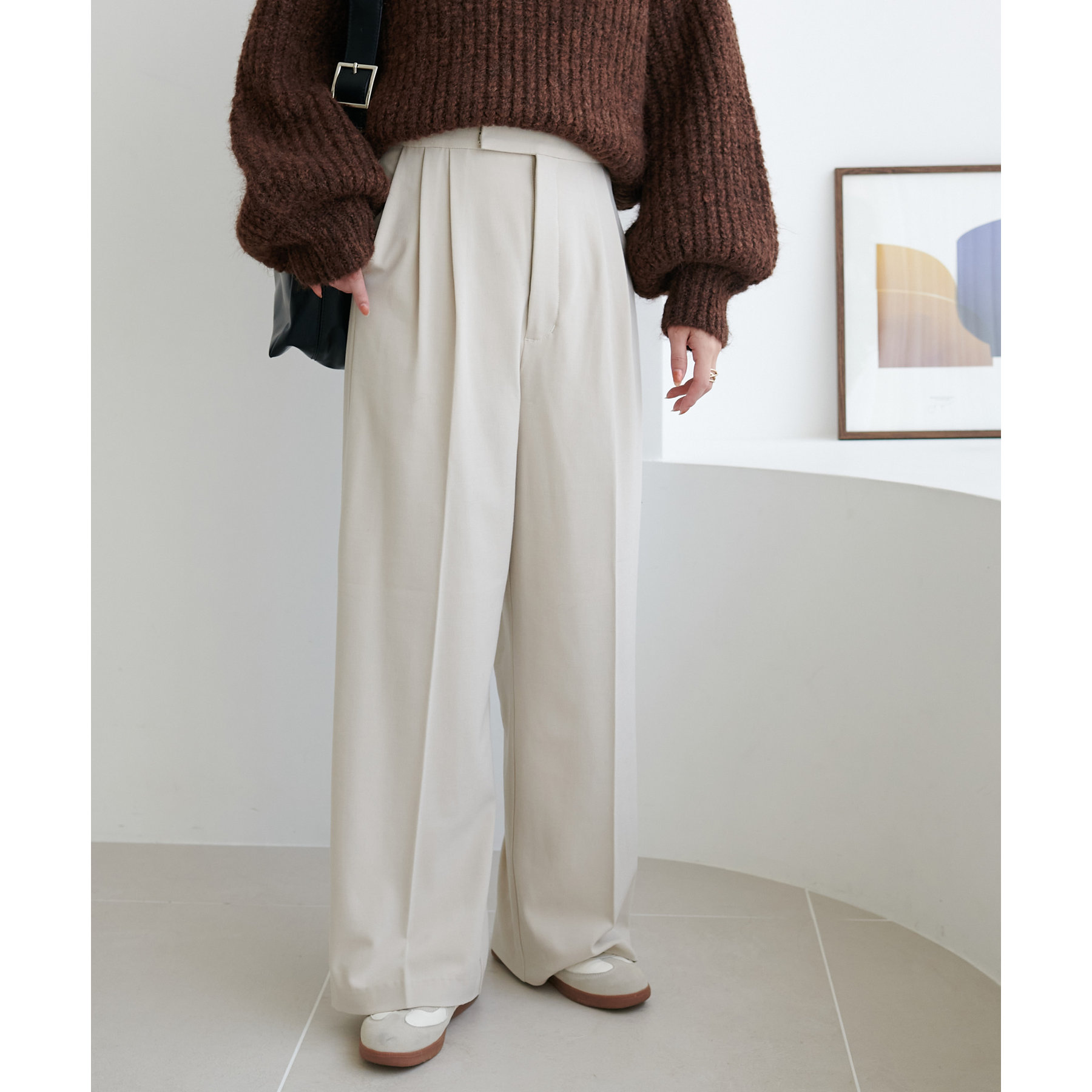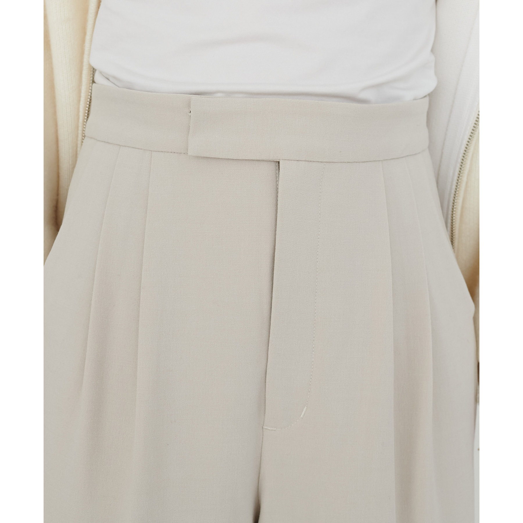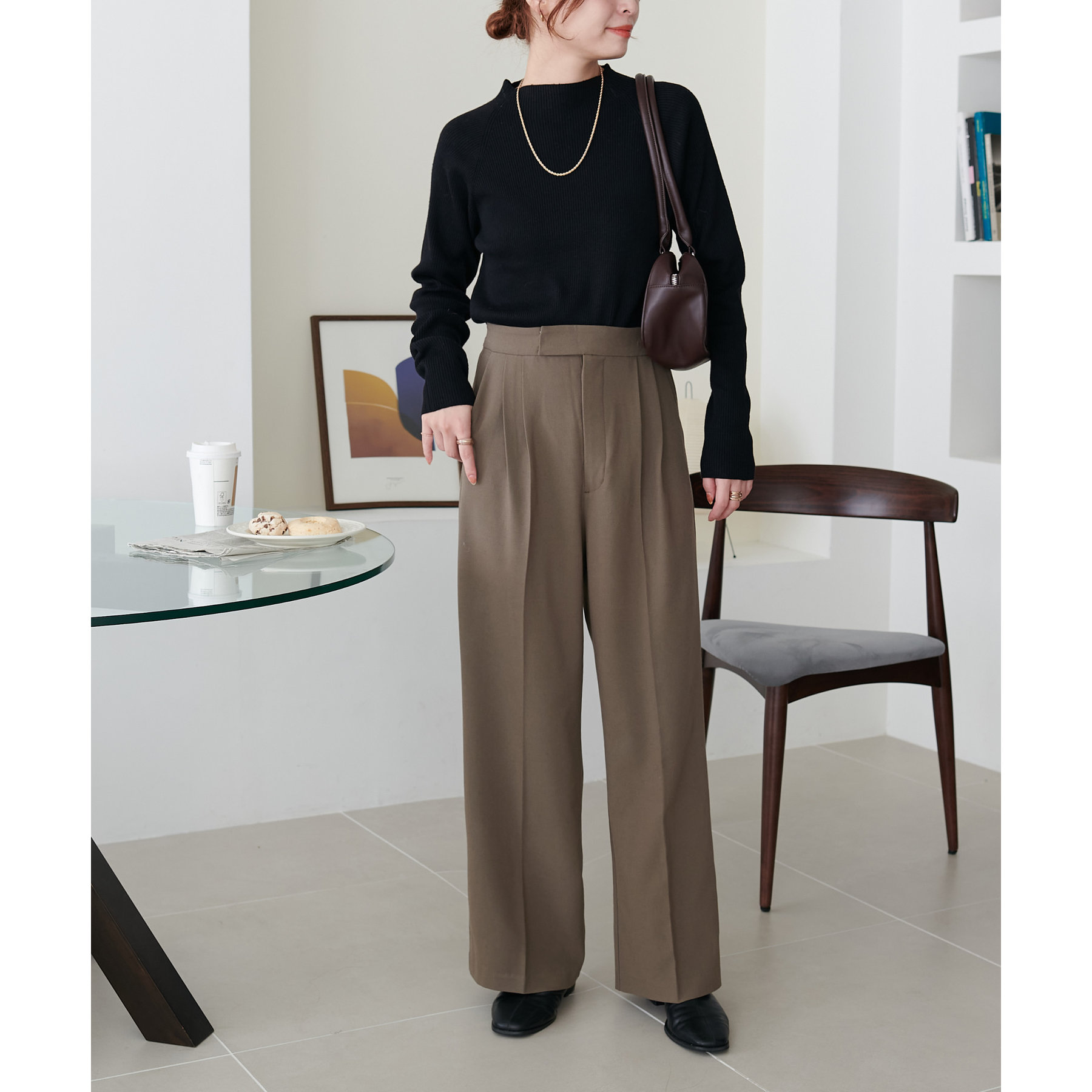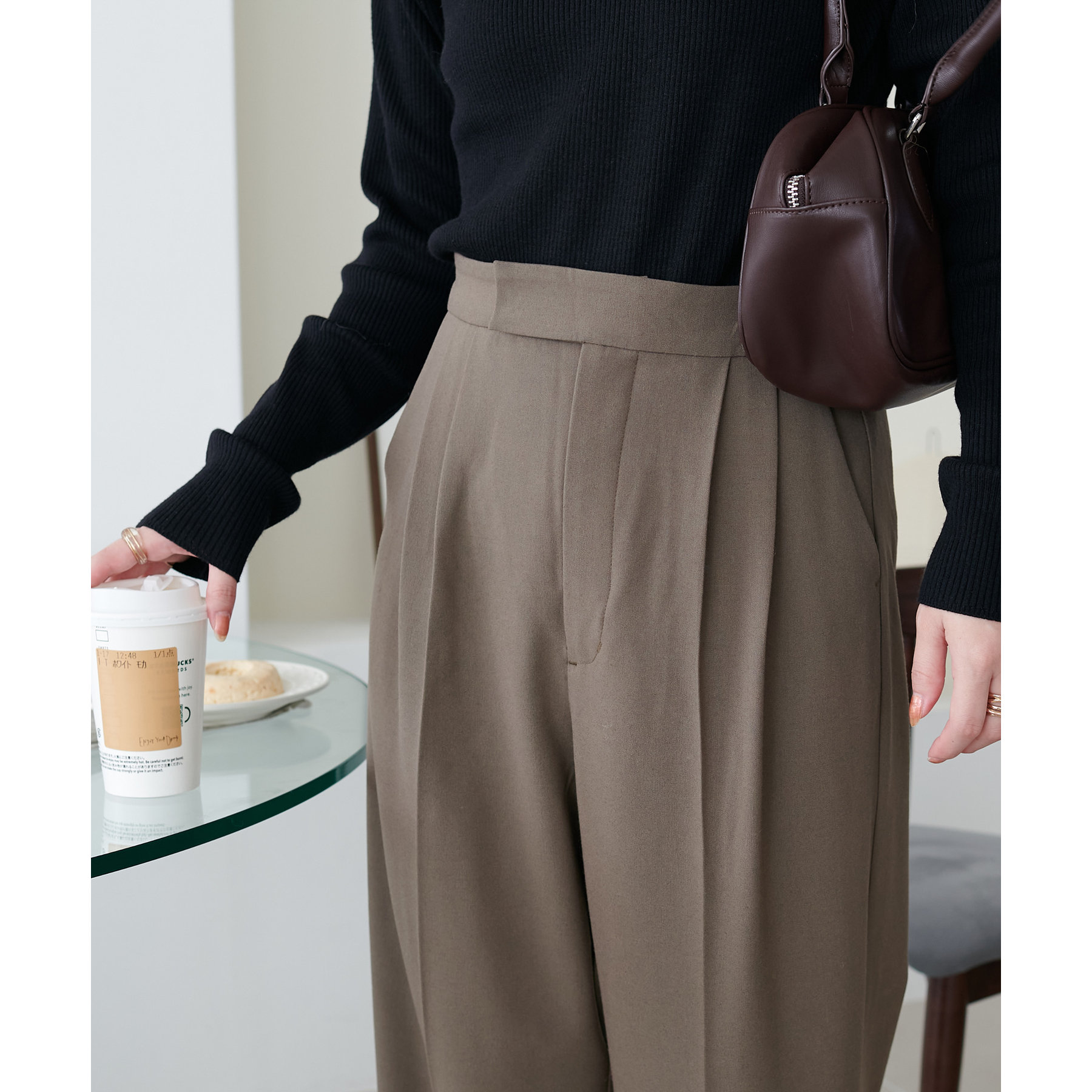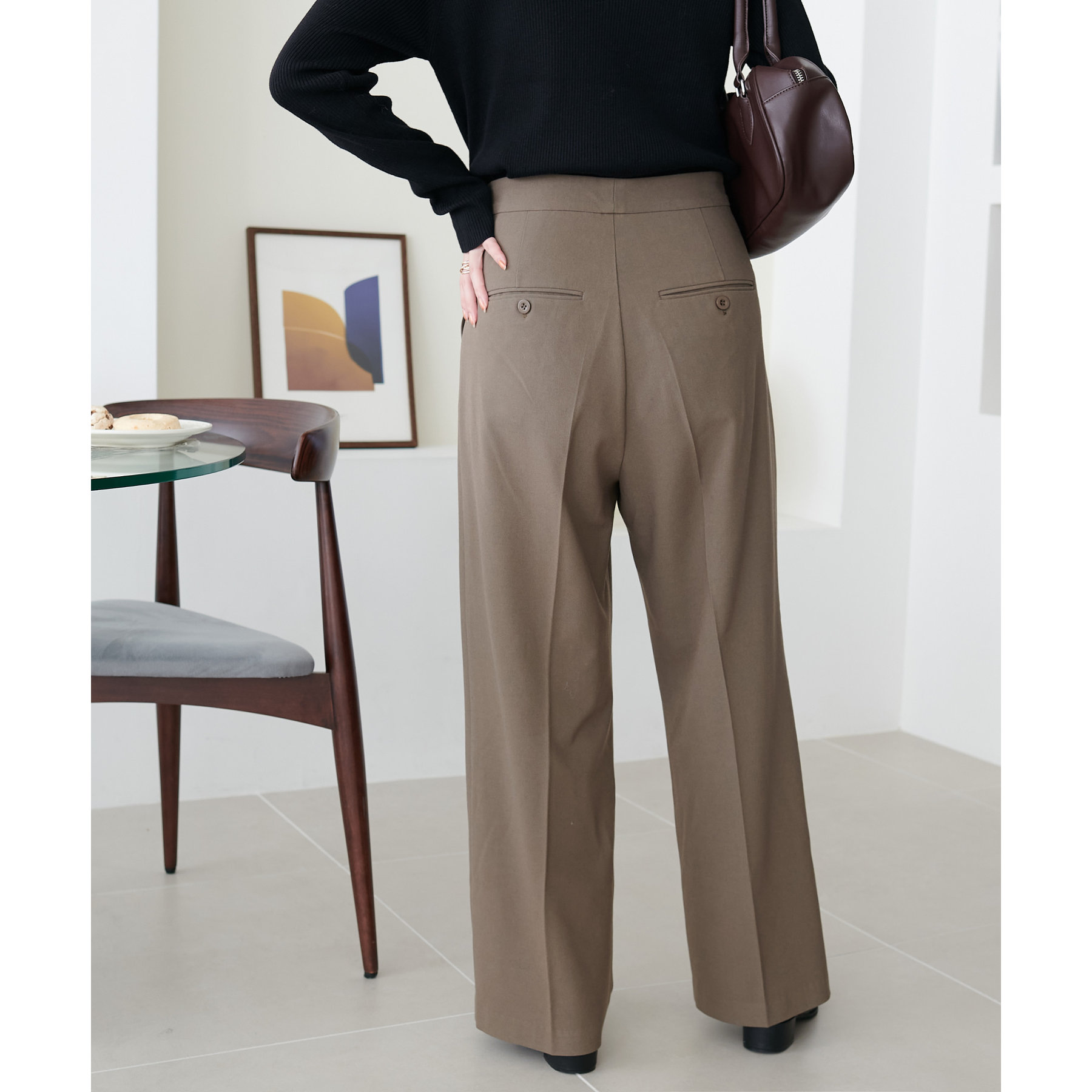 2タックデザインで腰回りをカバーし、キレイな落ち感のあるシルエットに仕上げました。