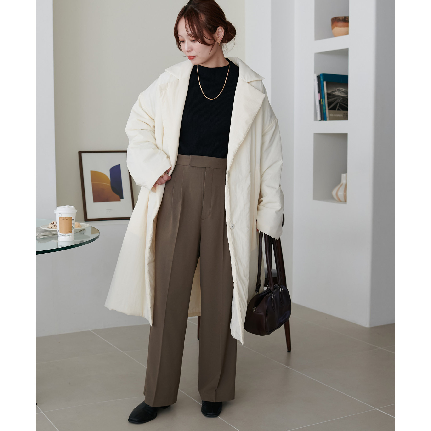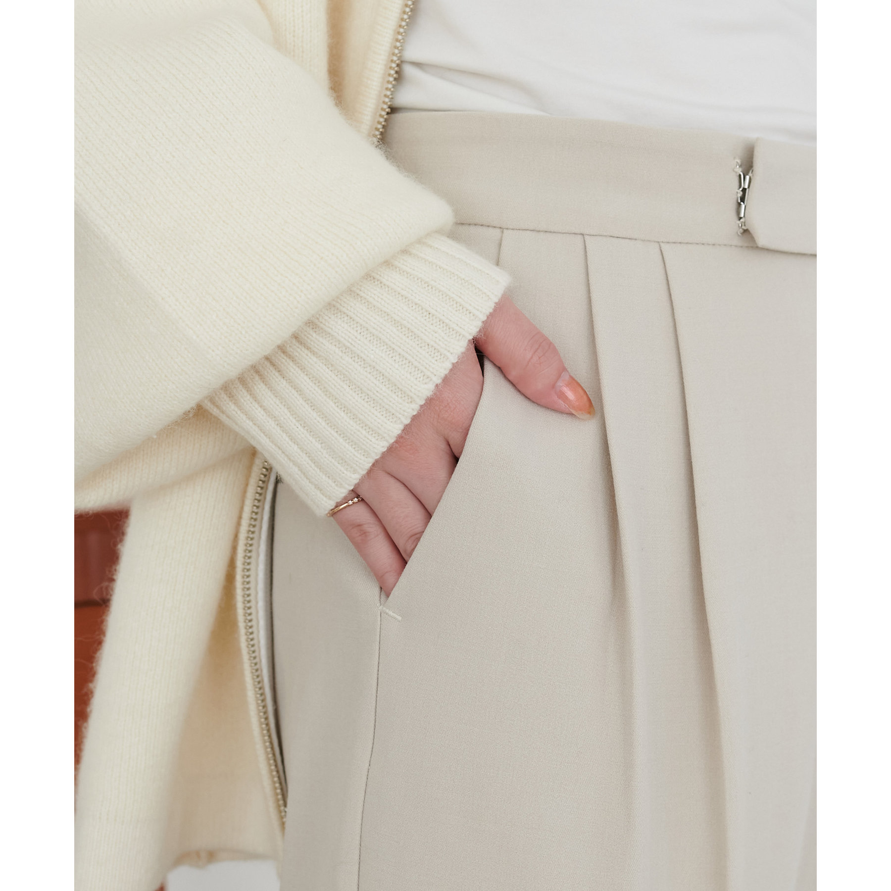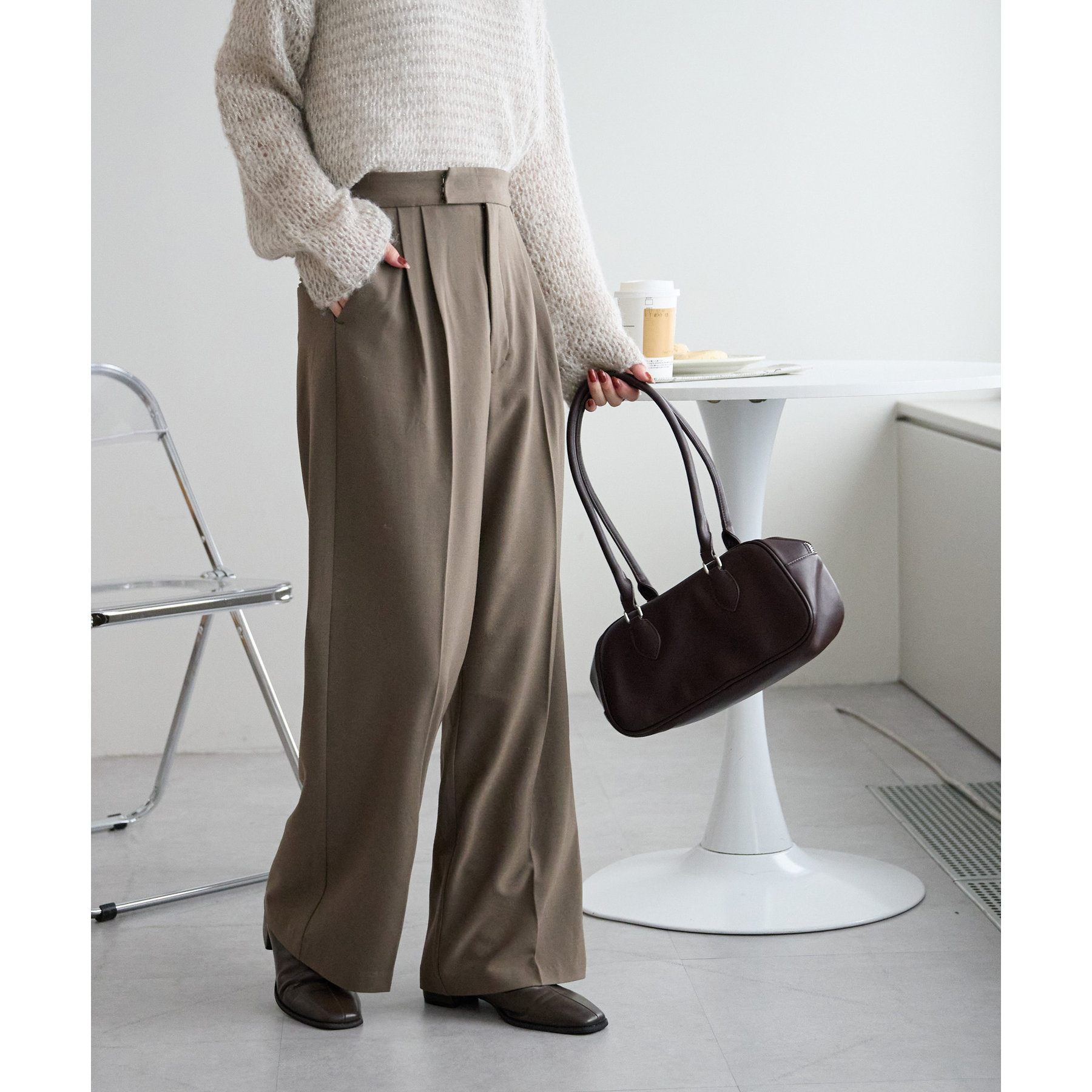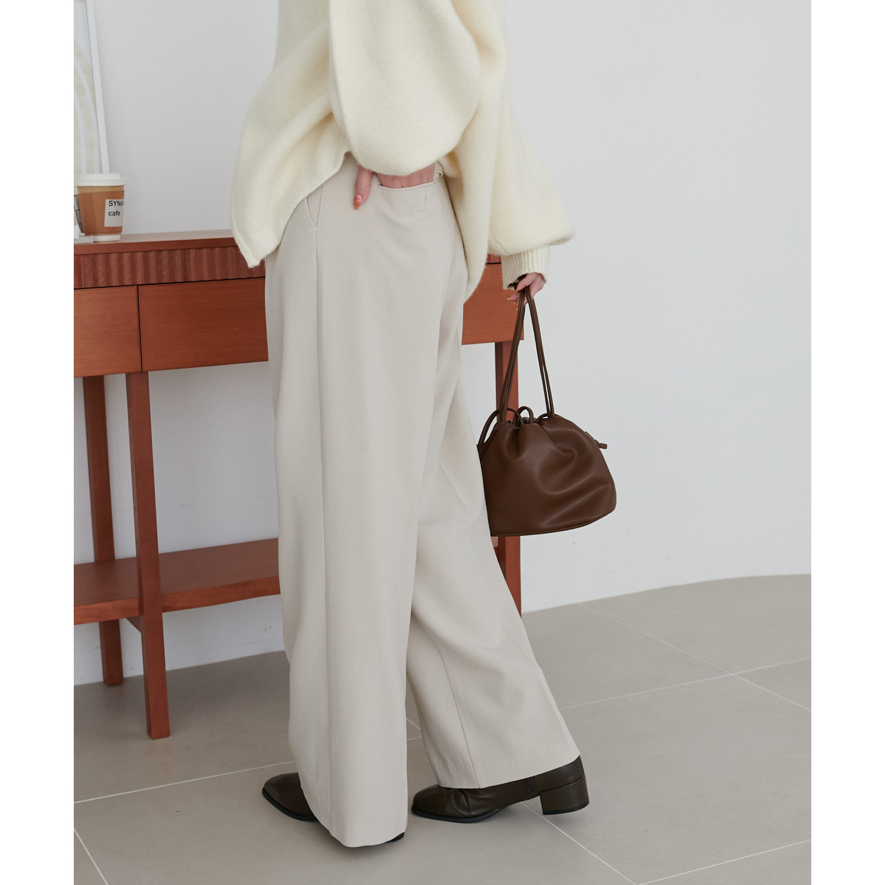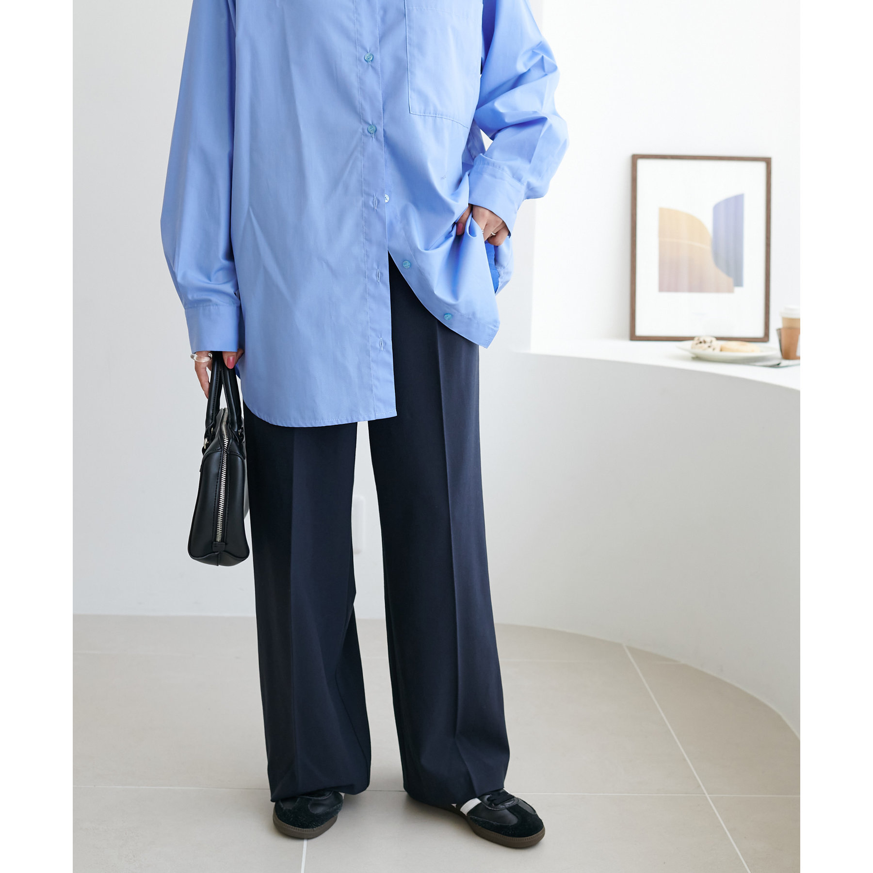 2タックデザインで腰回りをカバーし、キレイな落ち感のあるシルエットに仕上げました。
