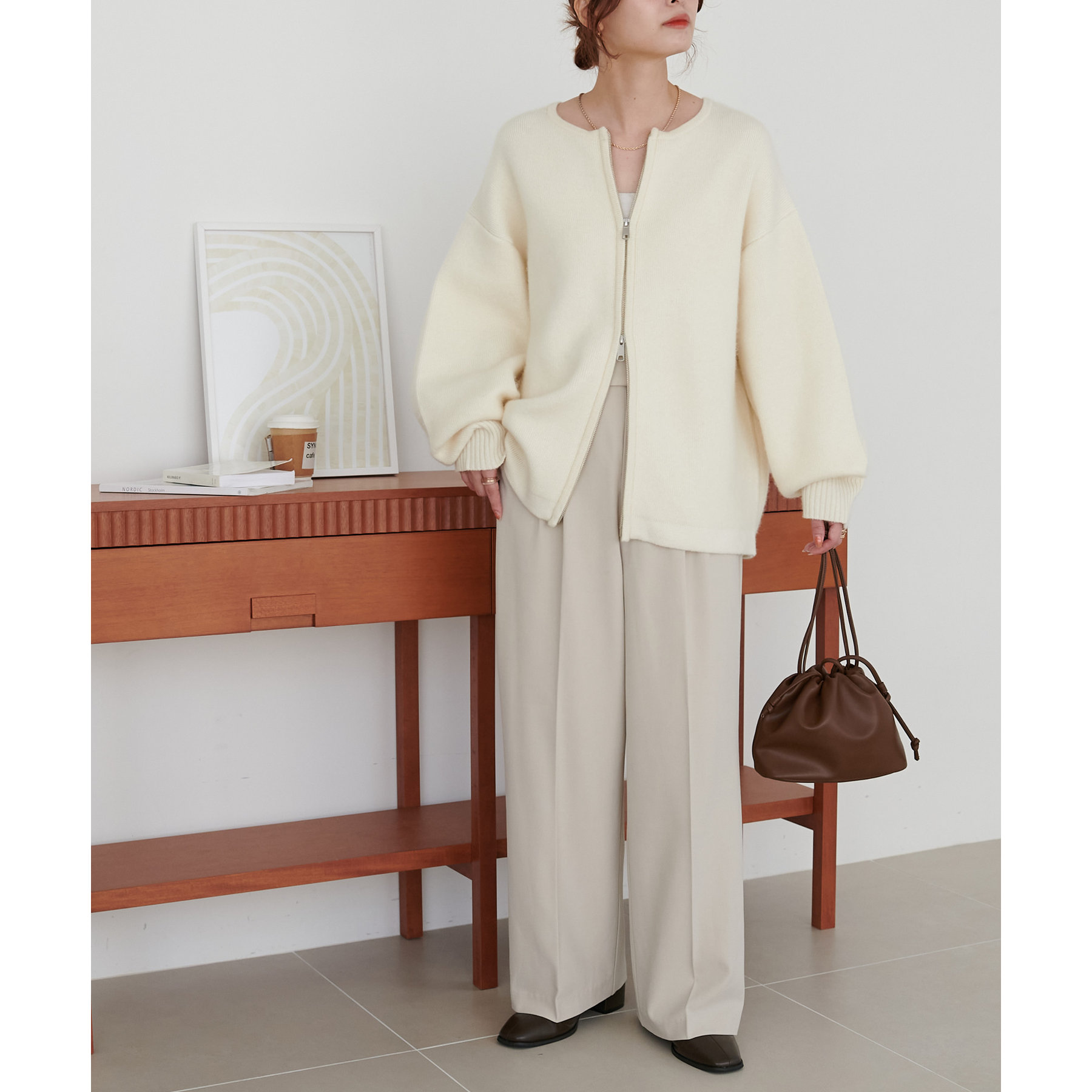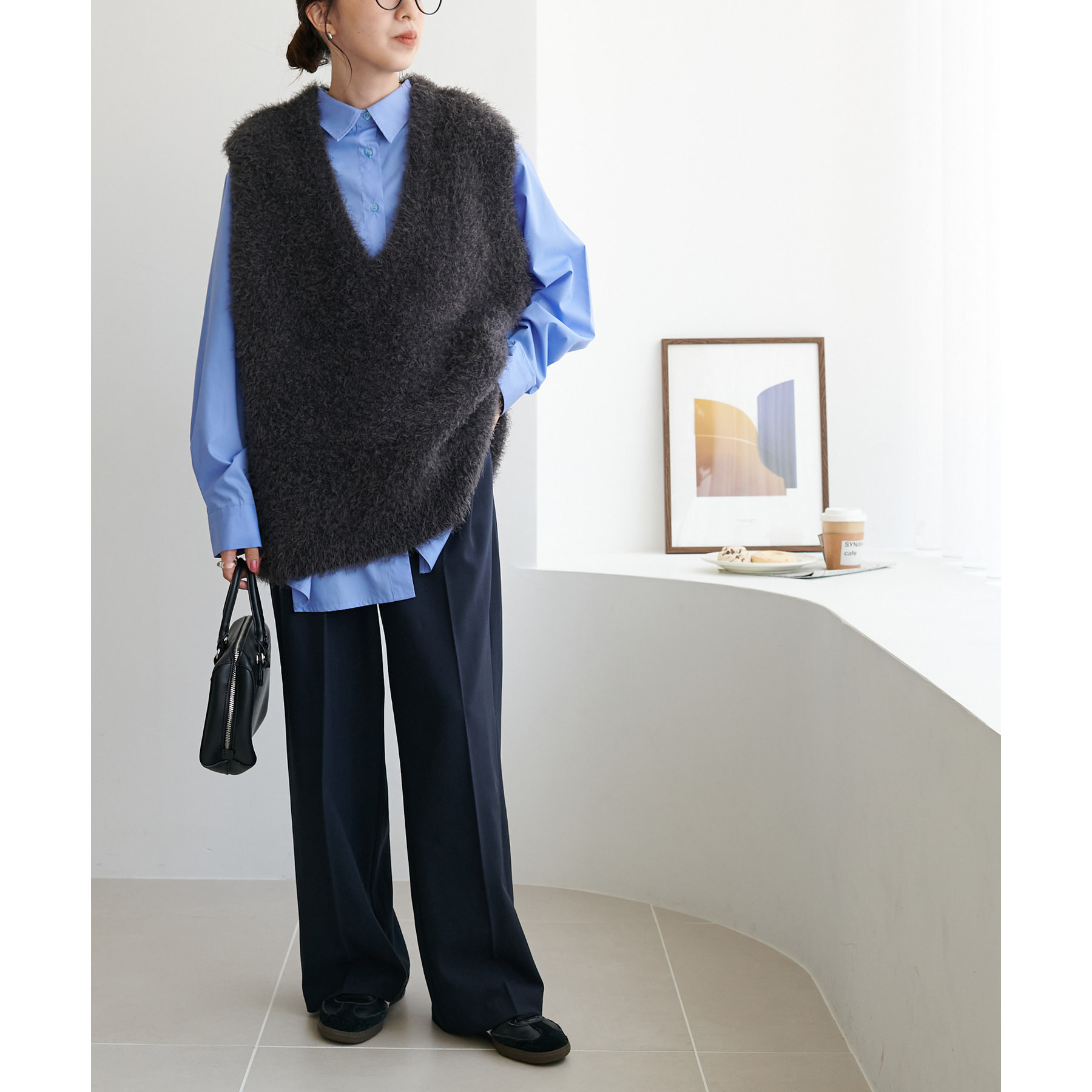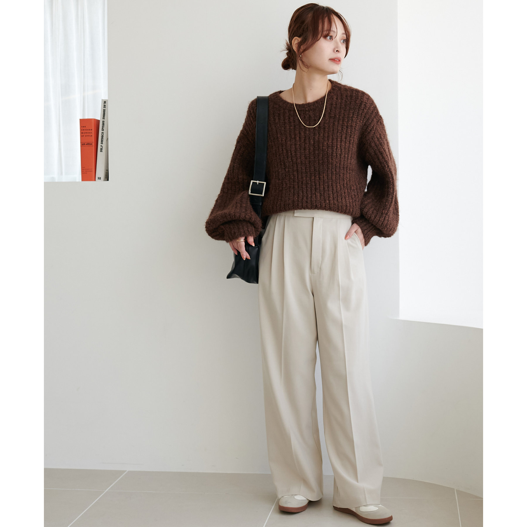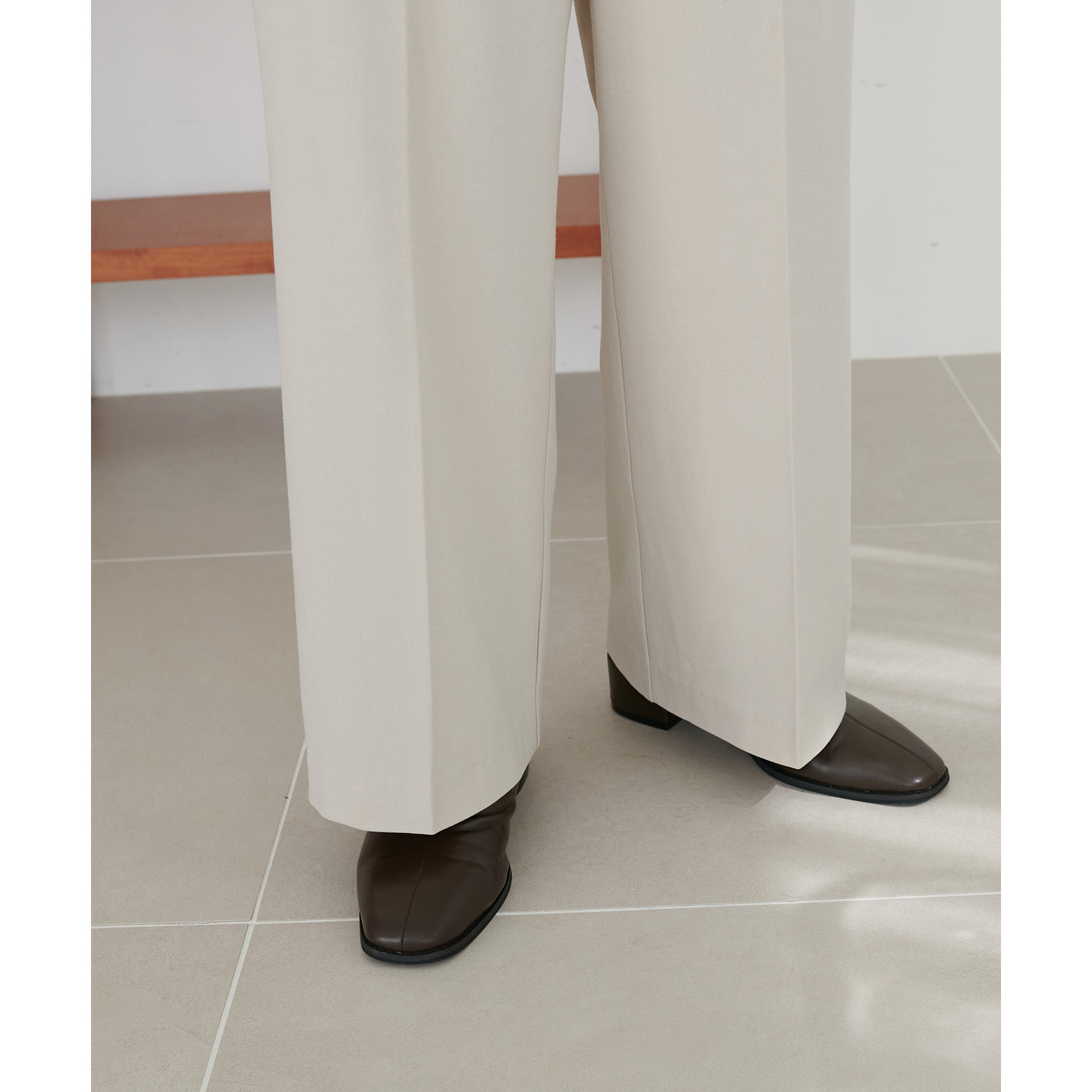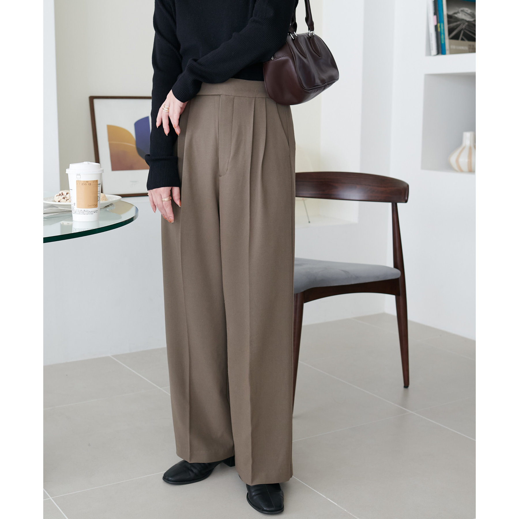 2タックデザインで腰回りをカバーし、キレイな落ち感のあるシルエットに仕上げました。