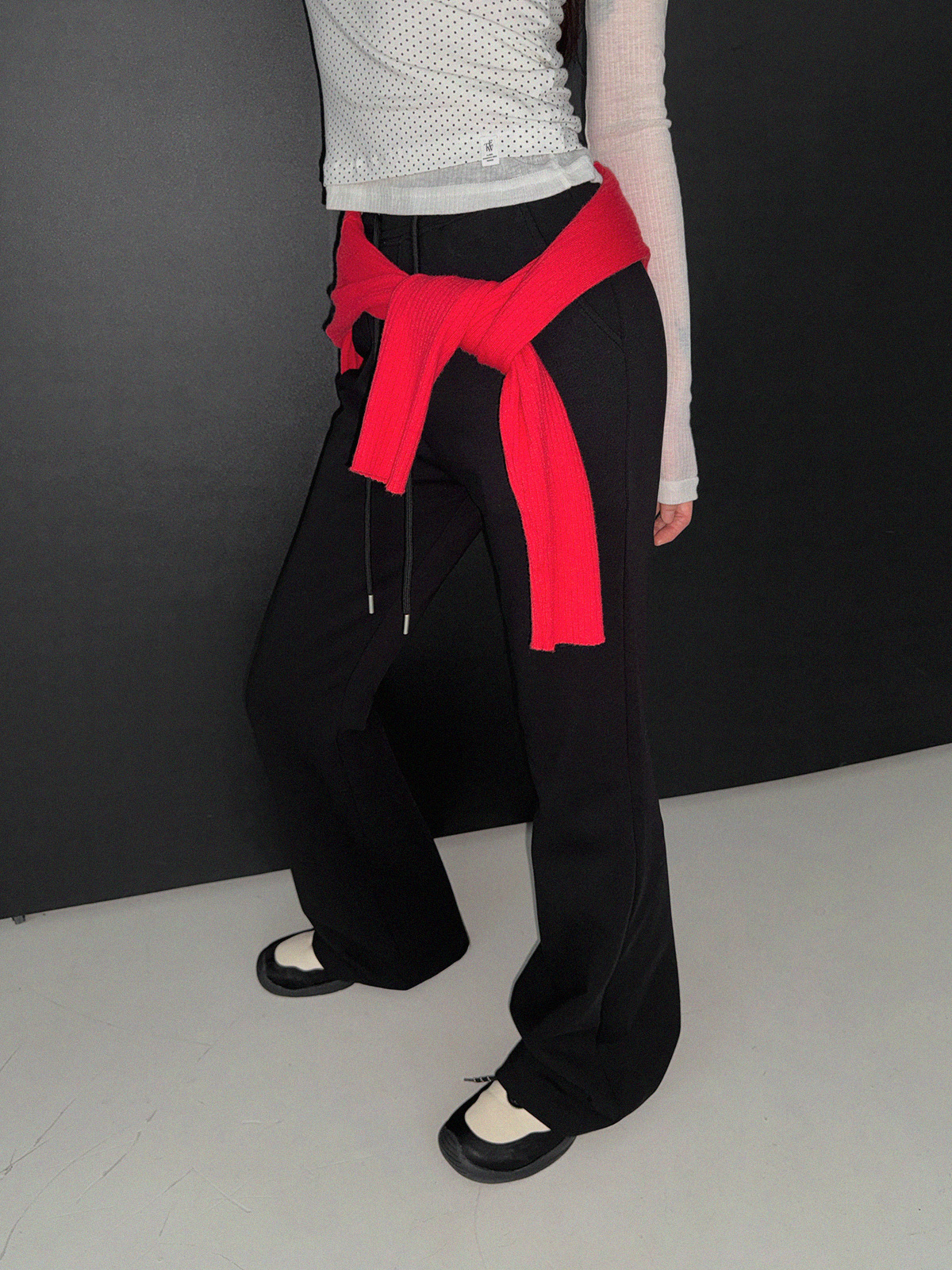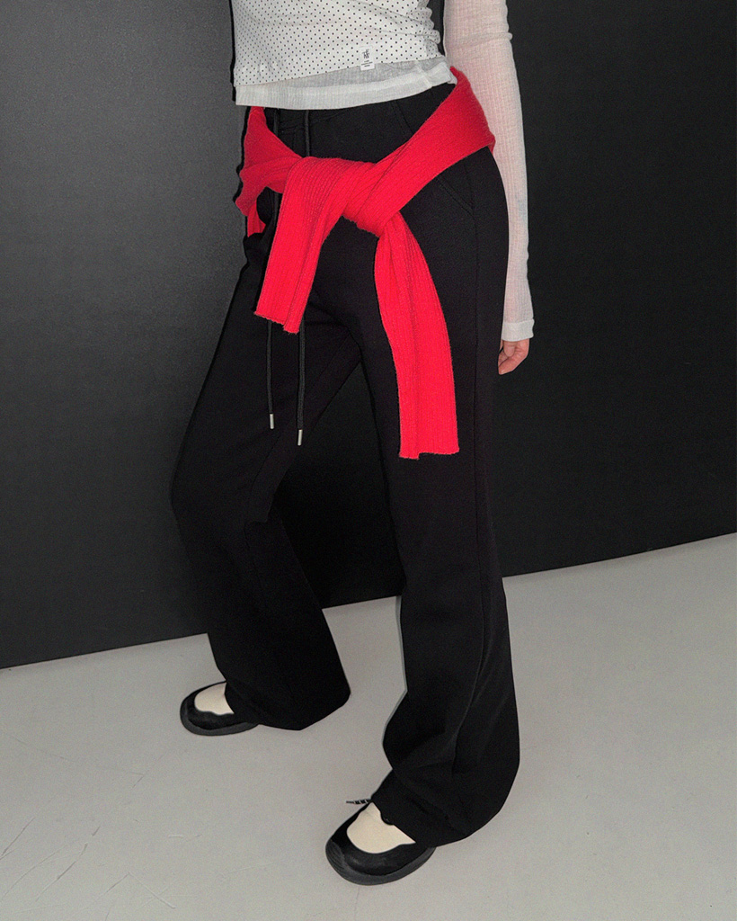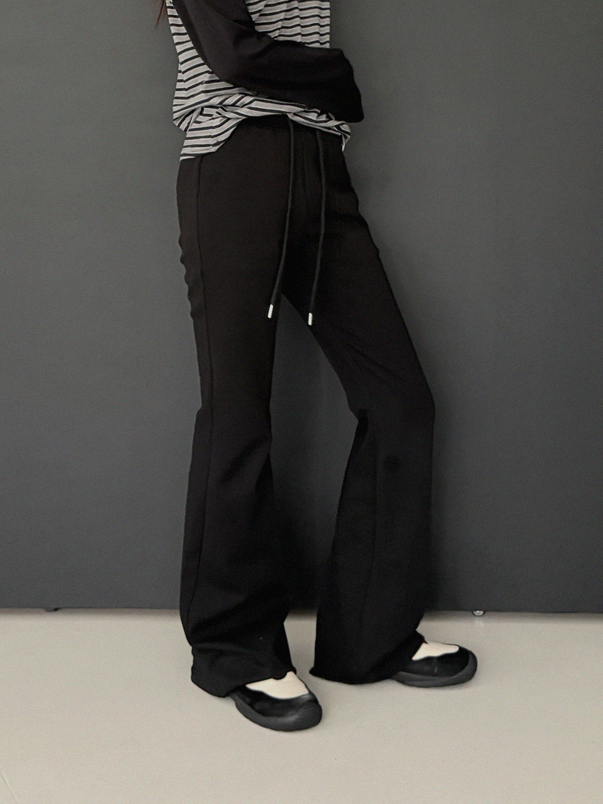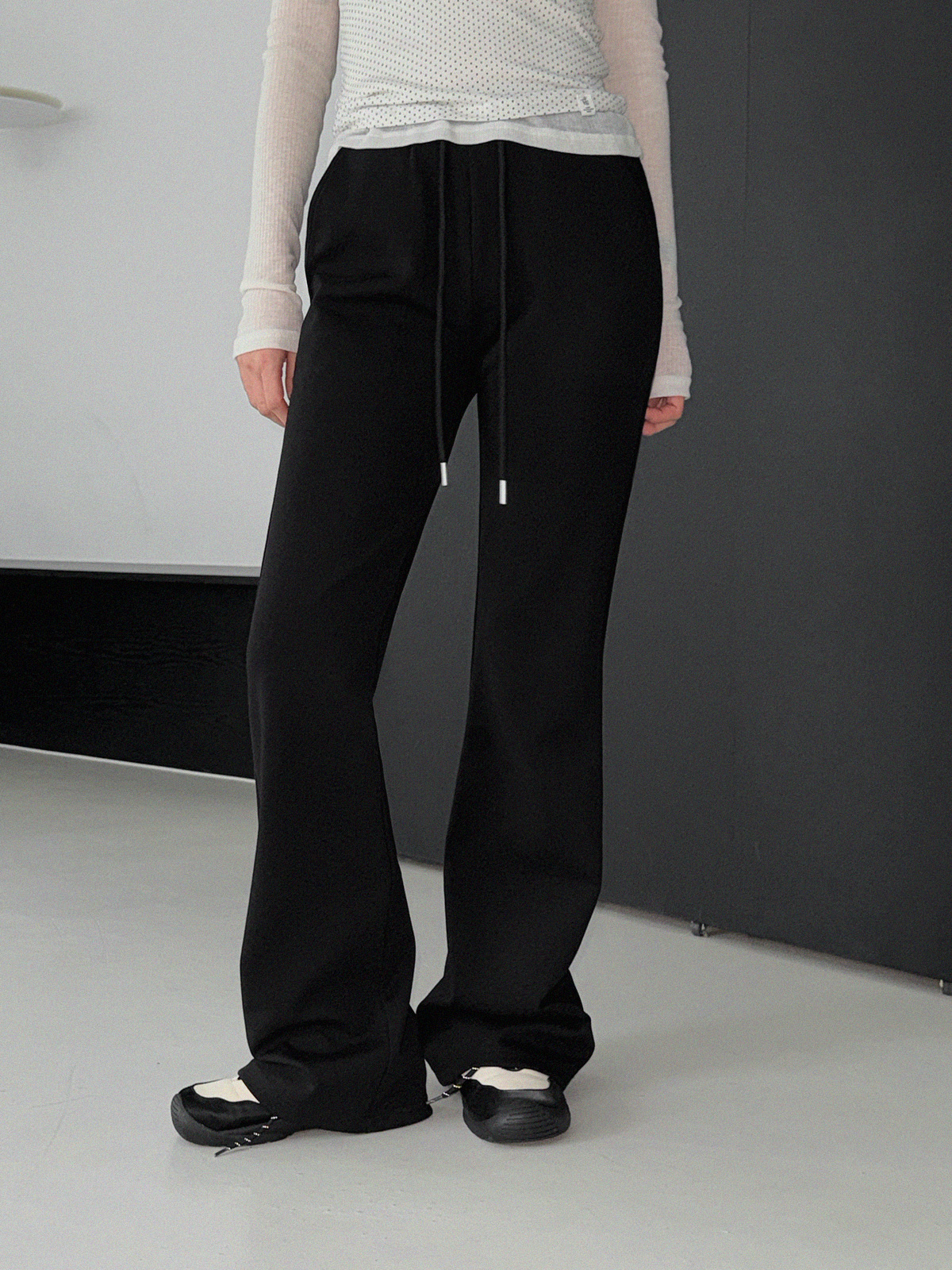 Blan elastic-waist bootcut long pants