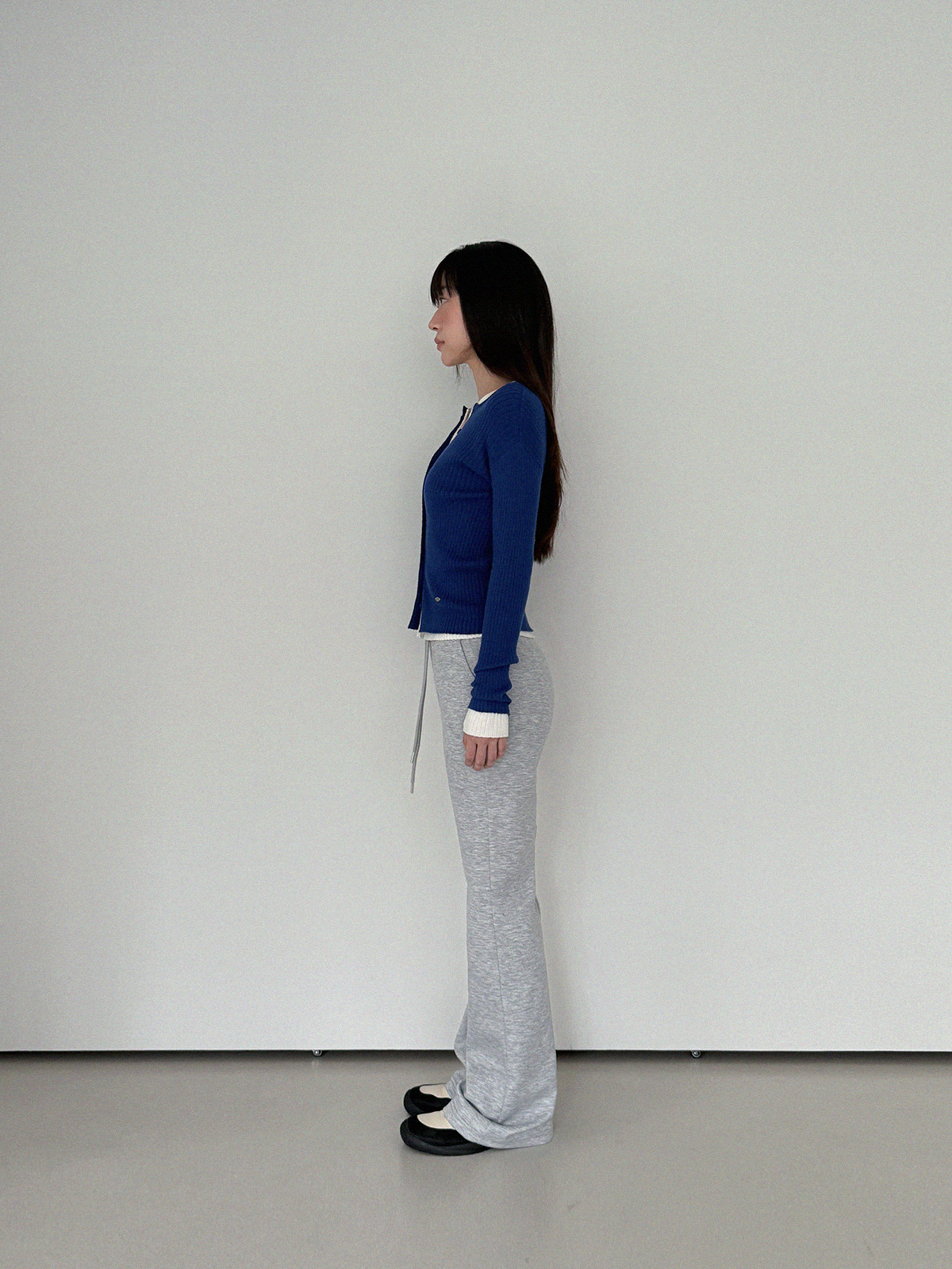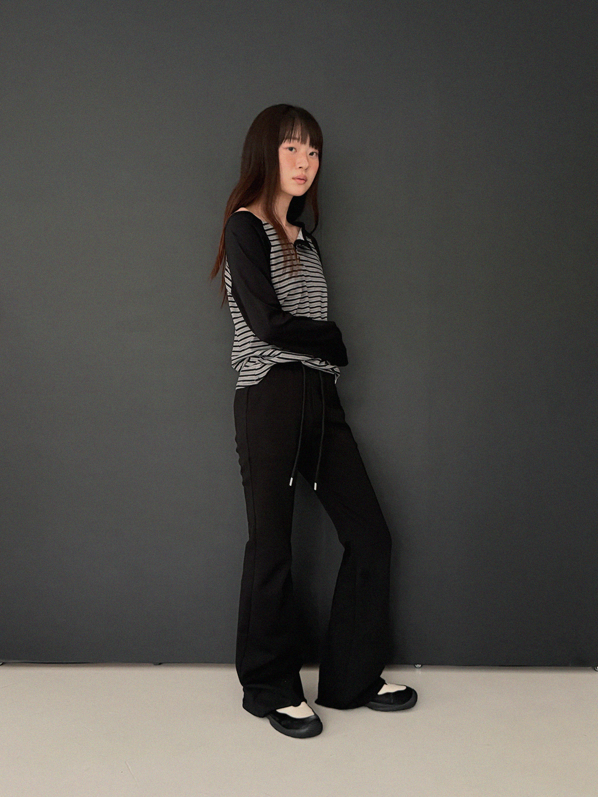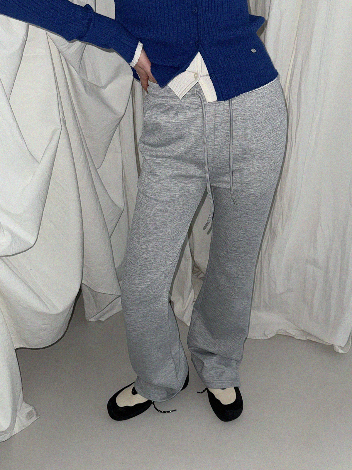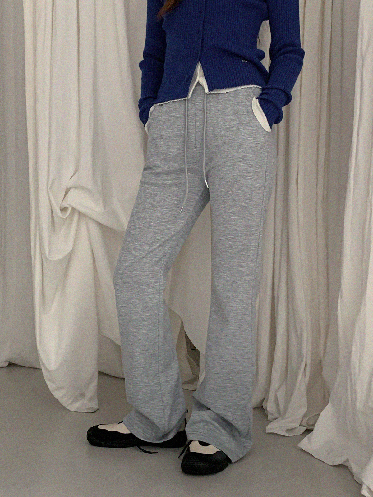 Blan elastic-waist bootcut long pants