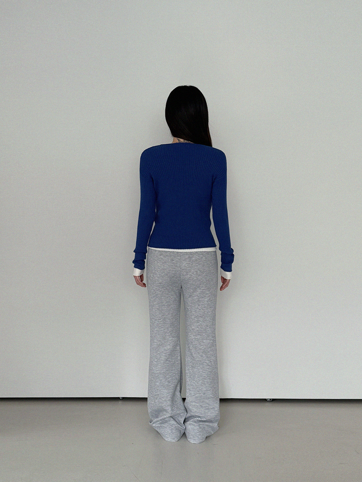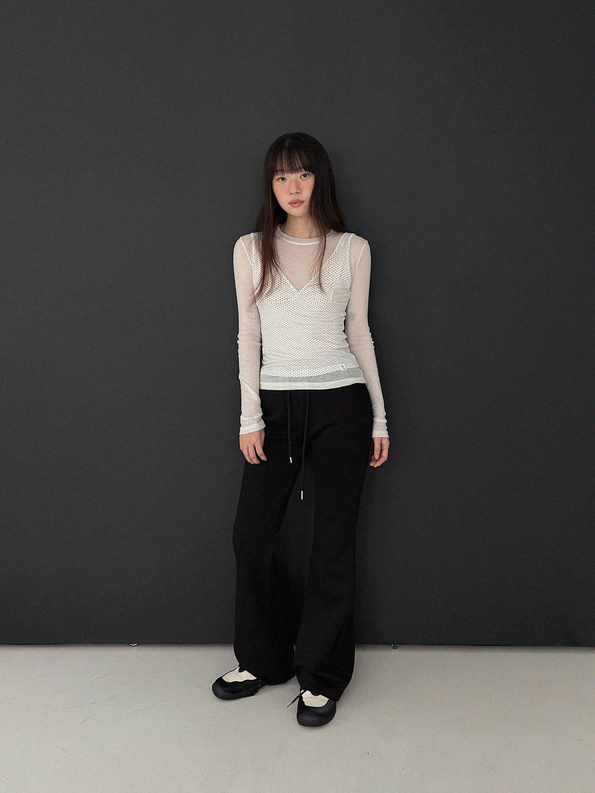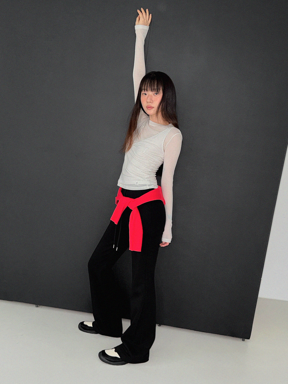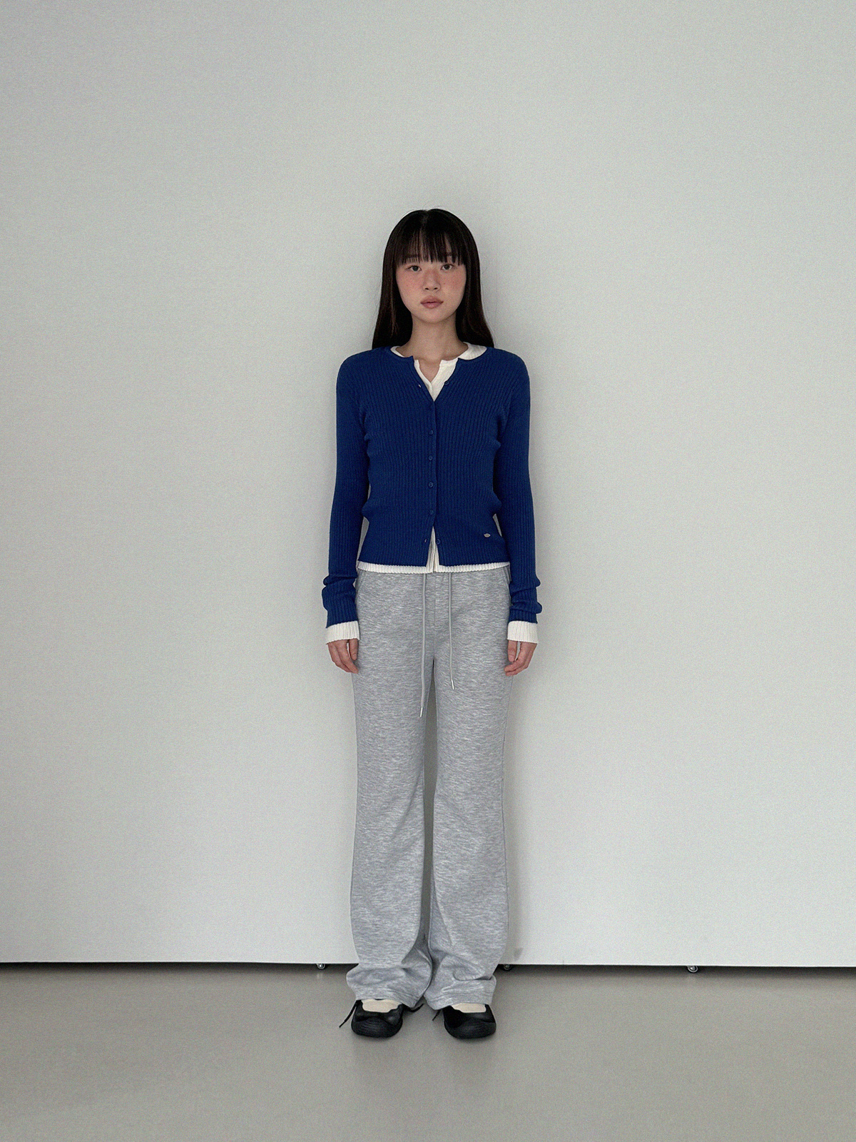 Blan elastic-waist bootcut long pants