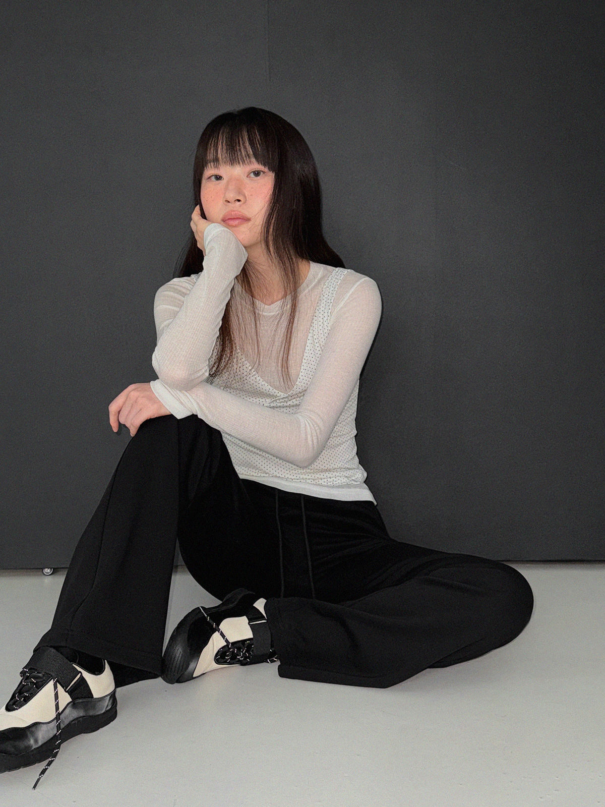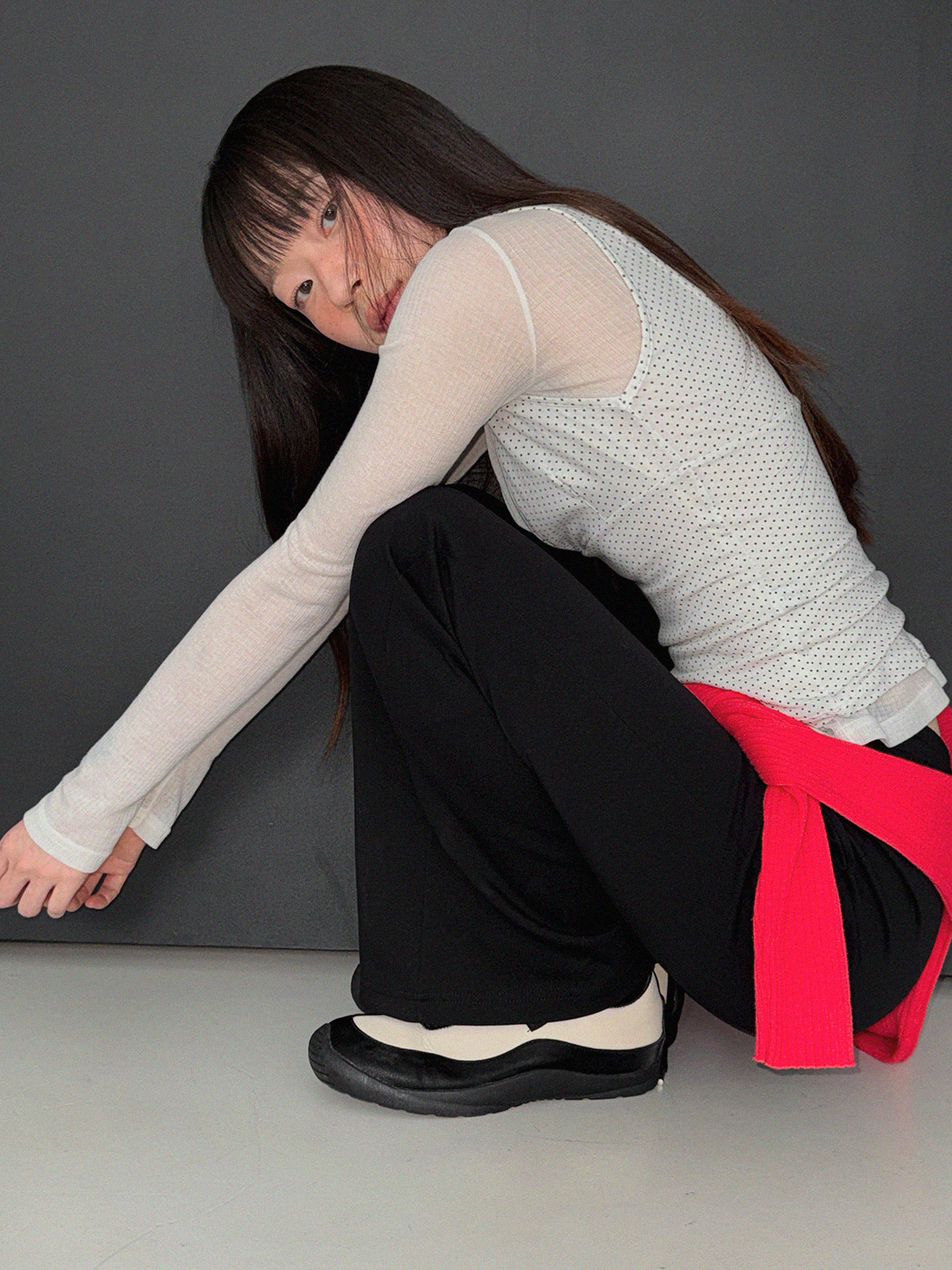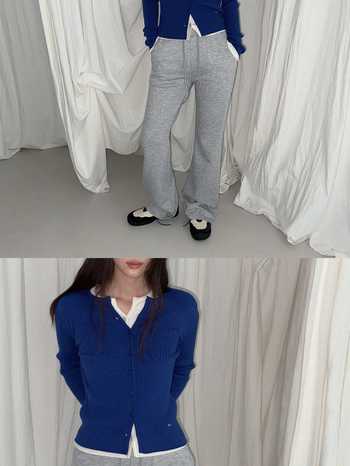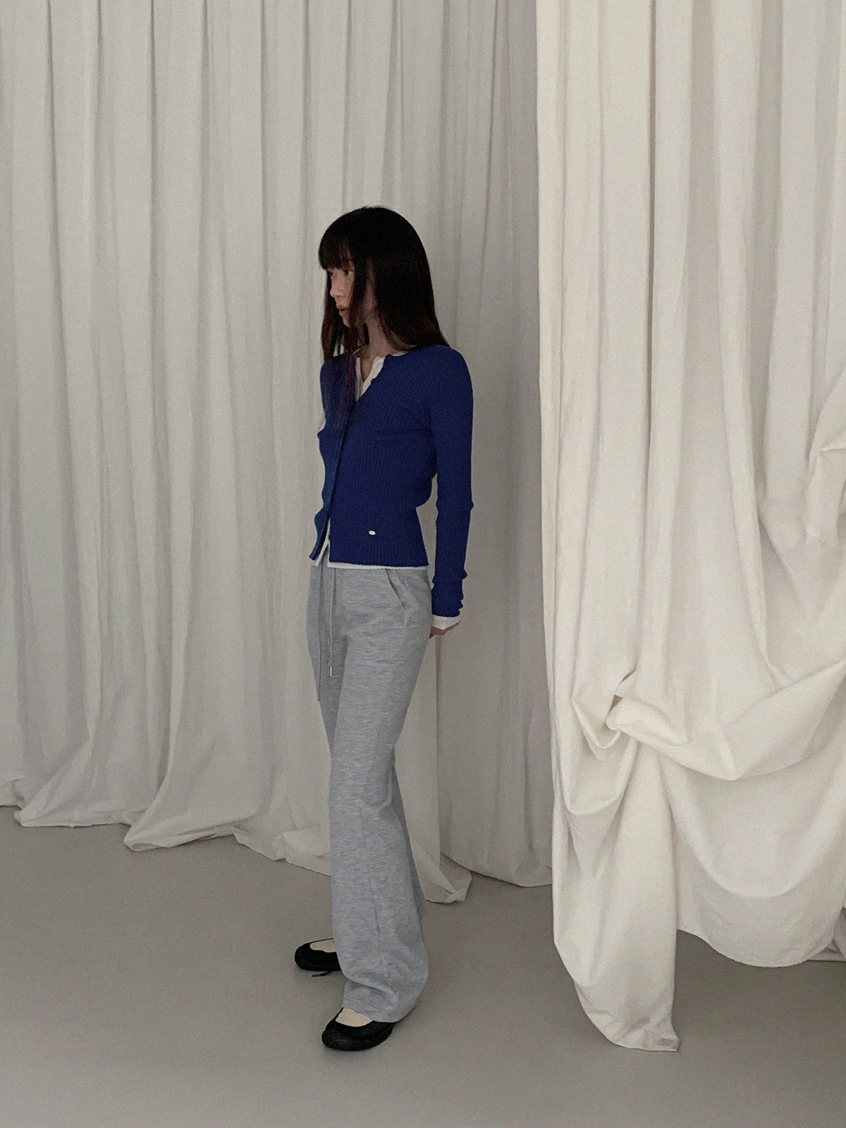 Blan elastic-waist bootcut long pants