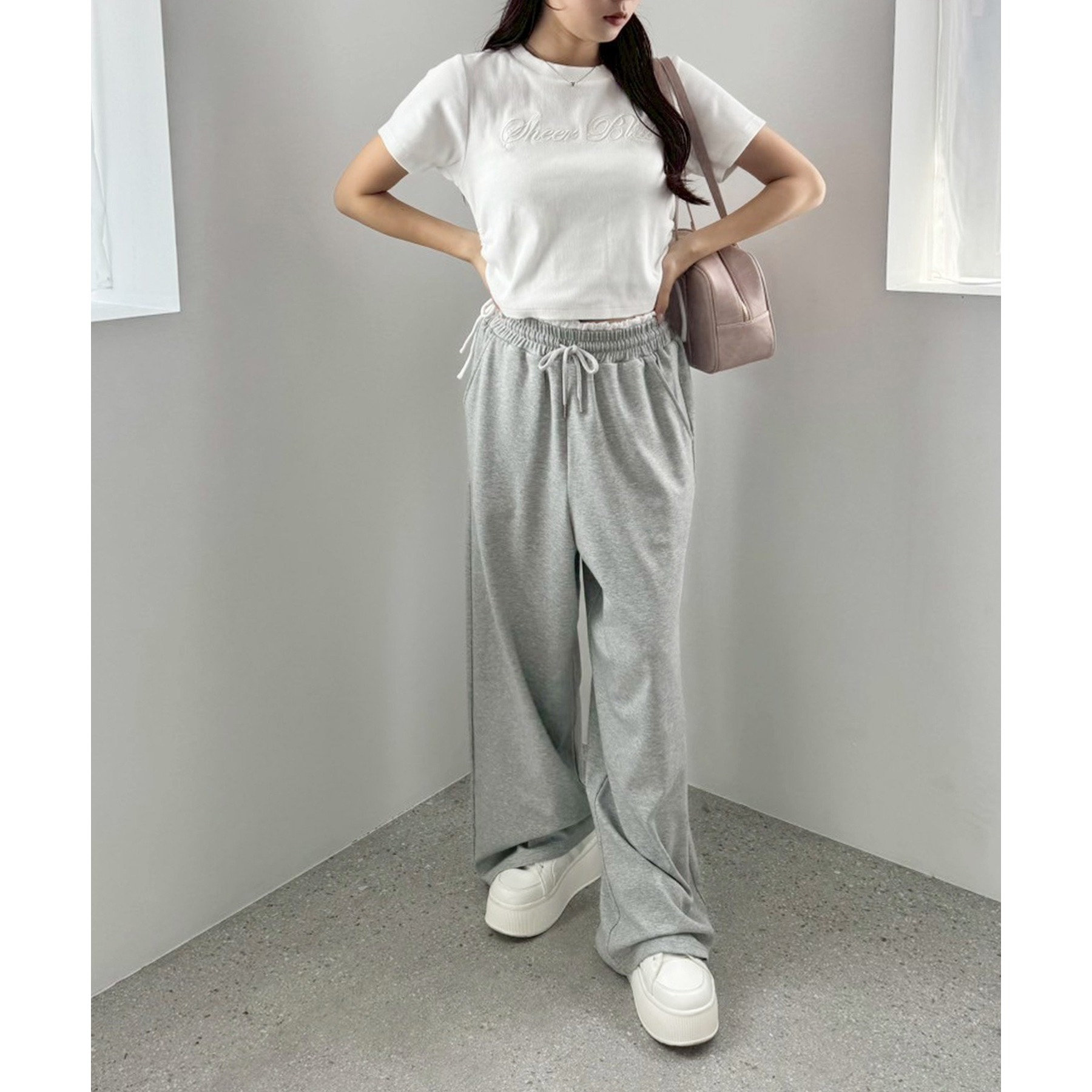 ドロストを絞ってカーゴパンツやスウェットパンツと合わせた