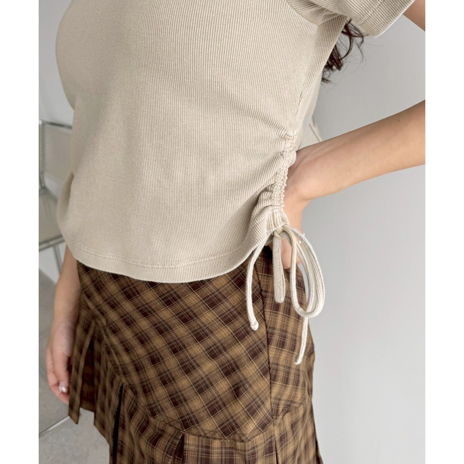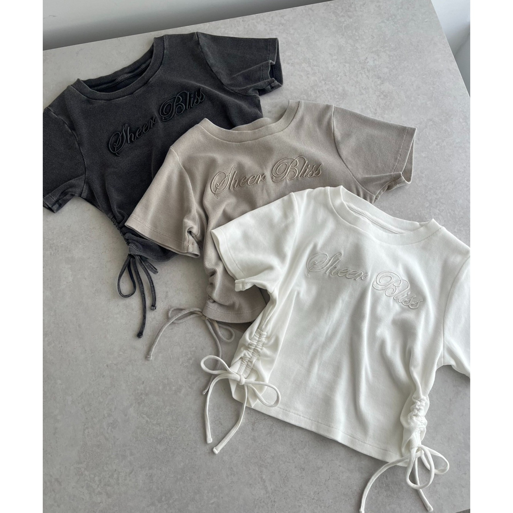 サイドのドロストがトレンドデザインのショートTee