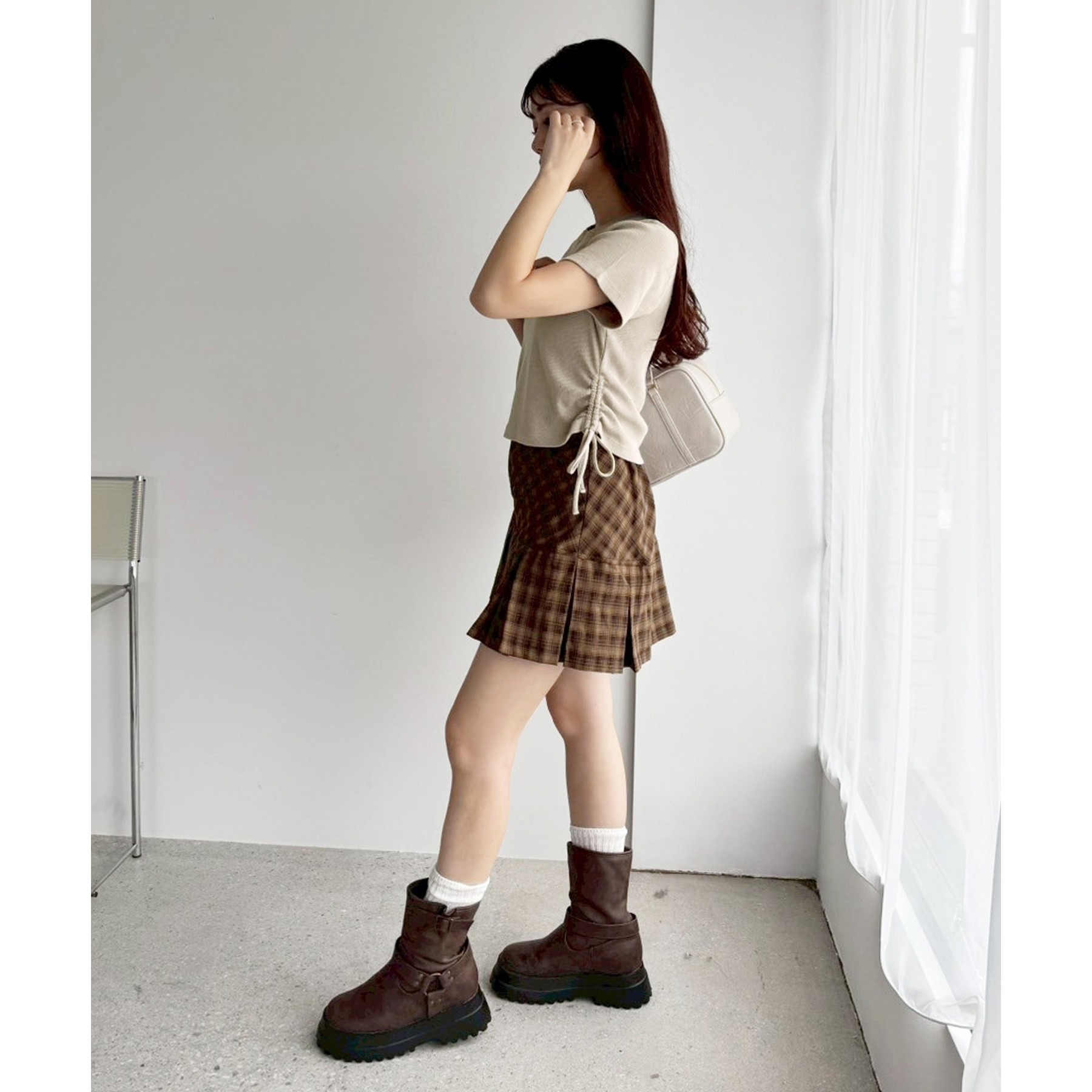 ハイウエストデニムと合わせると韓国風コーデに。