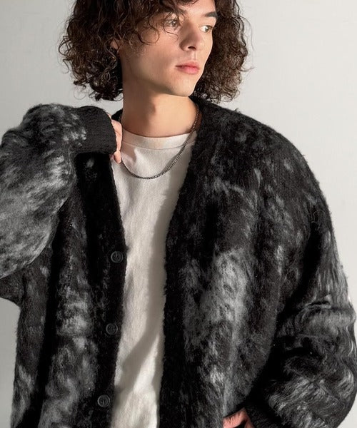 【Classical Origin】「まるで毛布。」モヘアライクシャギー素材Vネックカーディガン/Mohair-Like Shaggy Knit V-Neck Cardigan co0780003