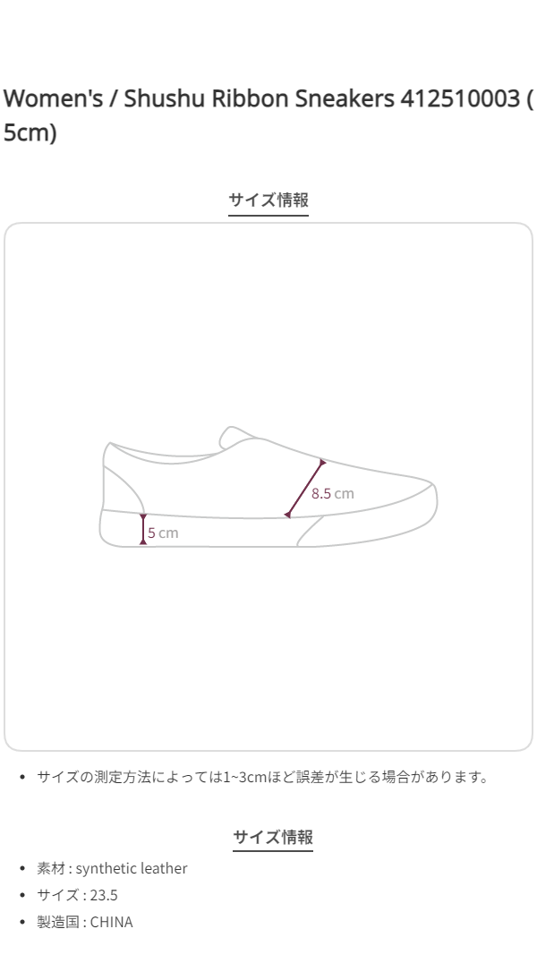 Shushu Ribbon Sneakers 412510003 (5cm)