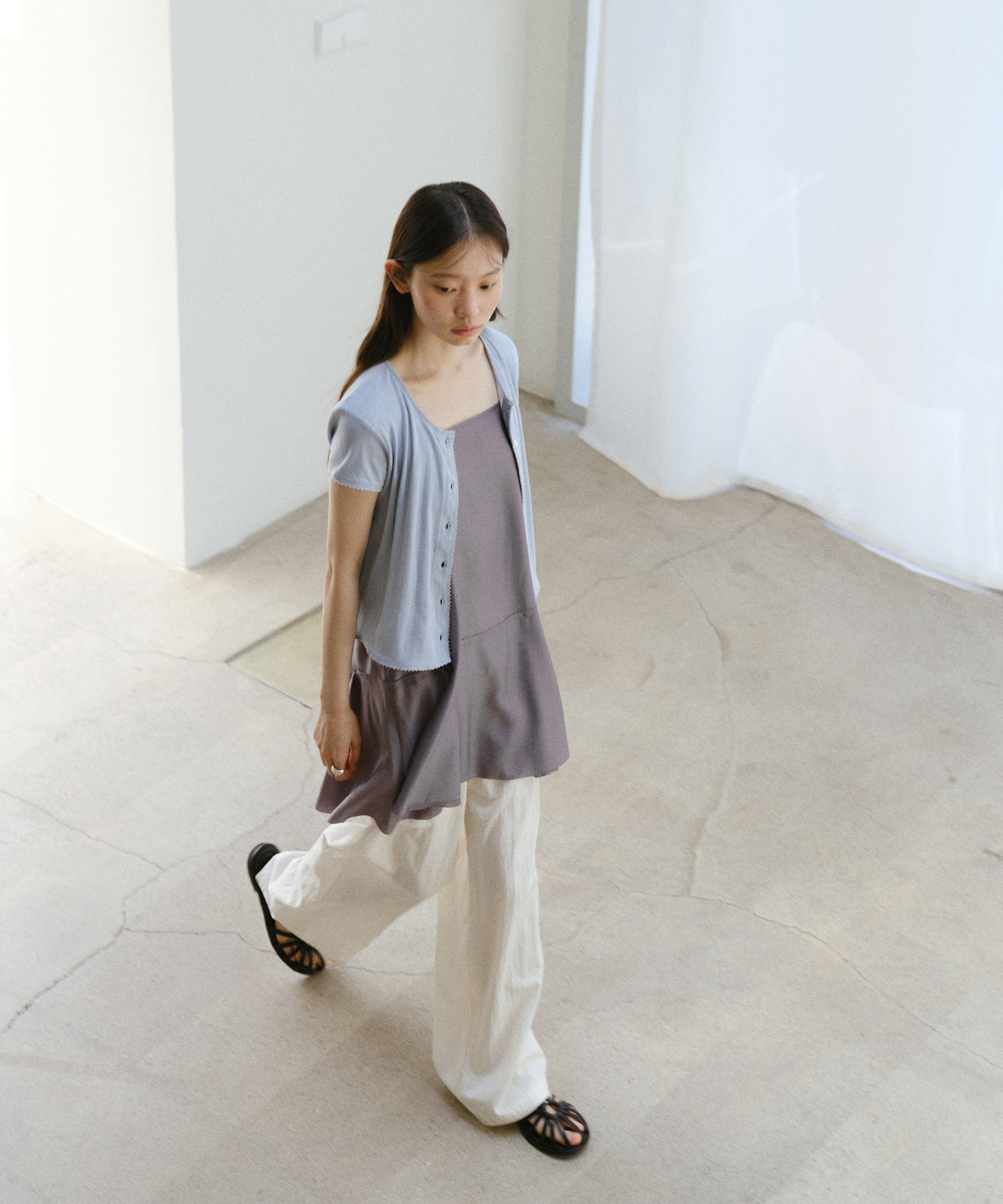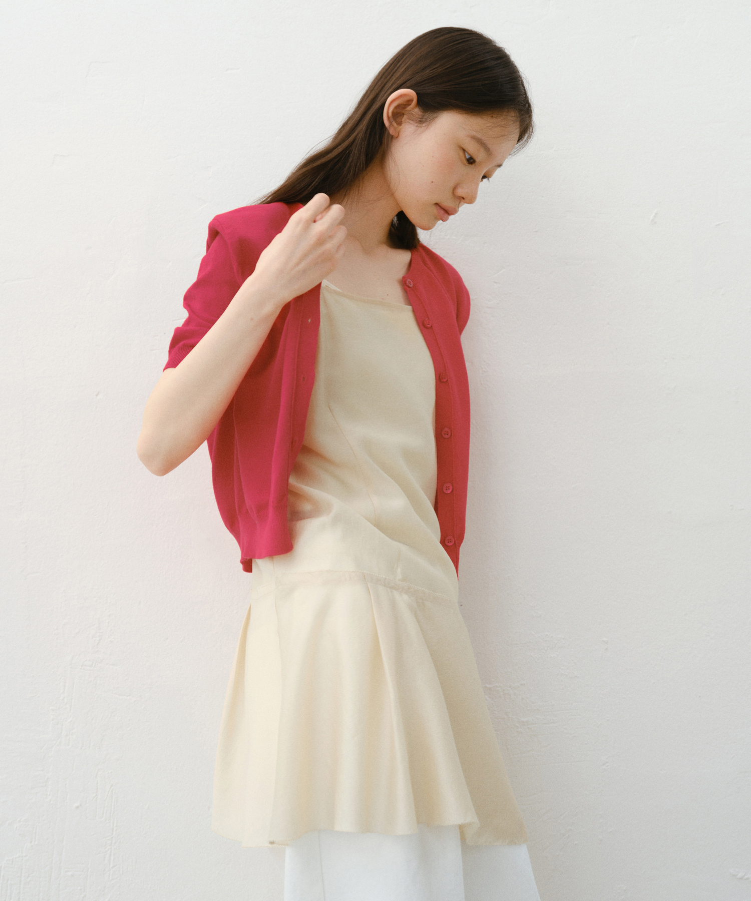 柔らかくシルキーな肌触りが感じられながらも、ほのかな艶消しテクスチャが魅力的なテンセル素材で製作されたミニワンピースです。快適で自然な雰囲気を演出でき、デニムやバンディングパンツとレイヤードしてスタイリングしやすい製品です。