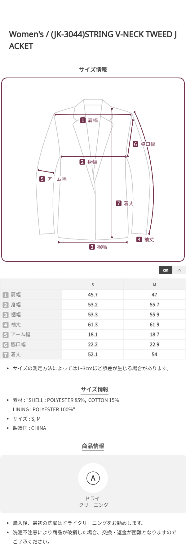 (JK-3044)STRING V-NECK TWEED JACKET