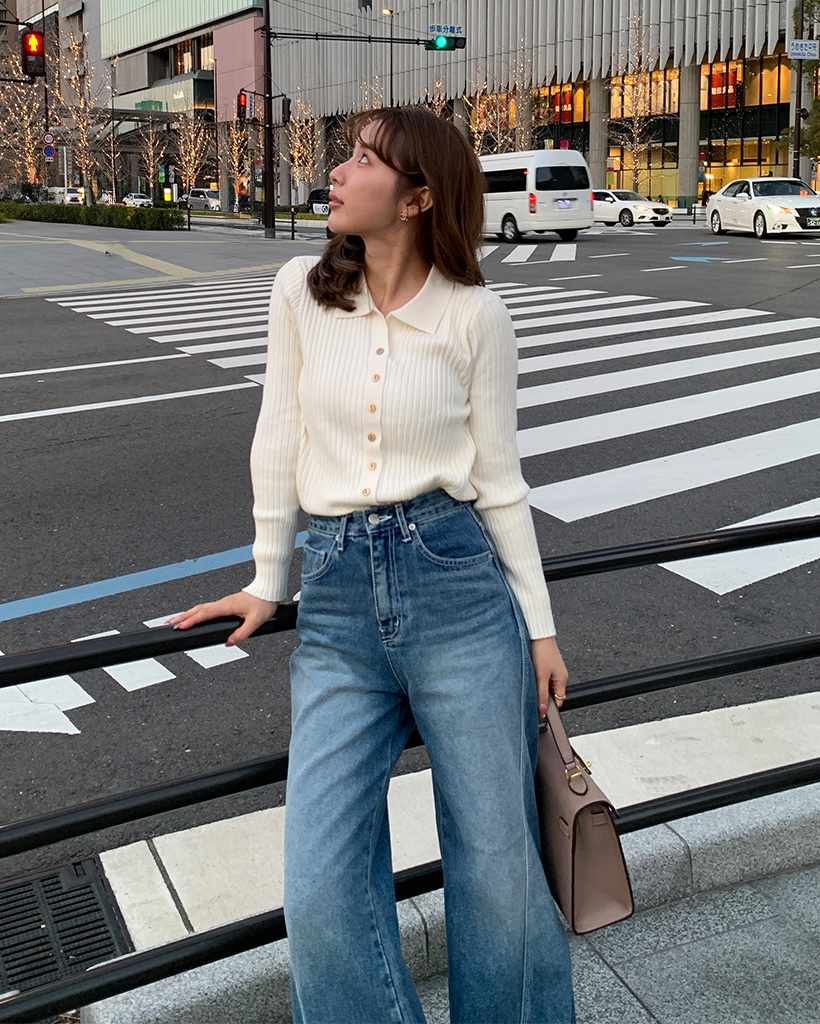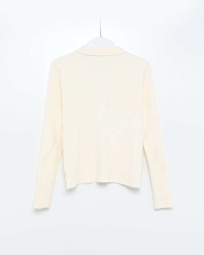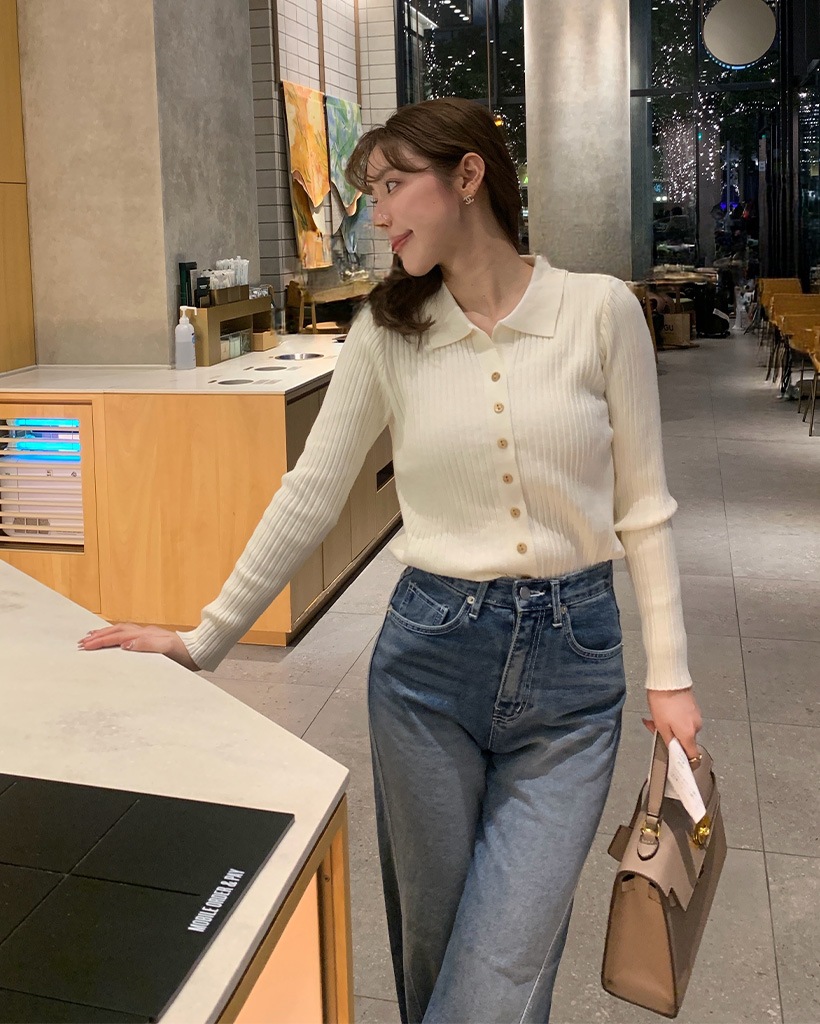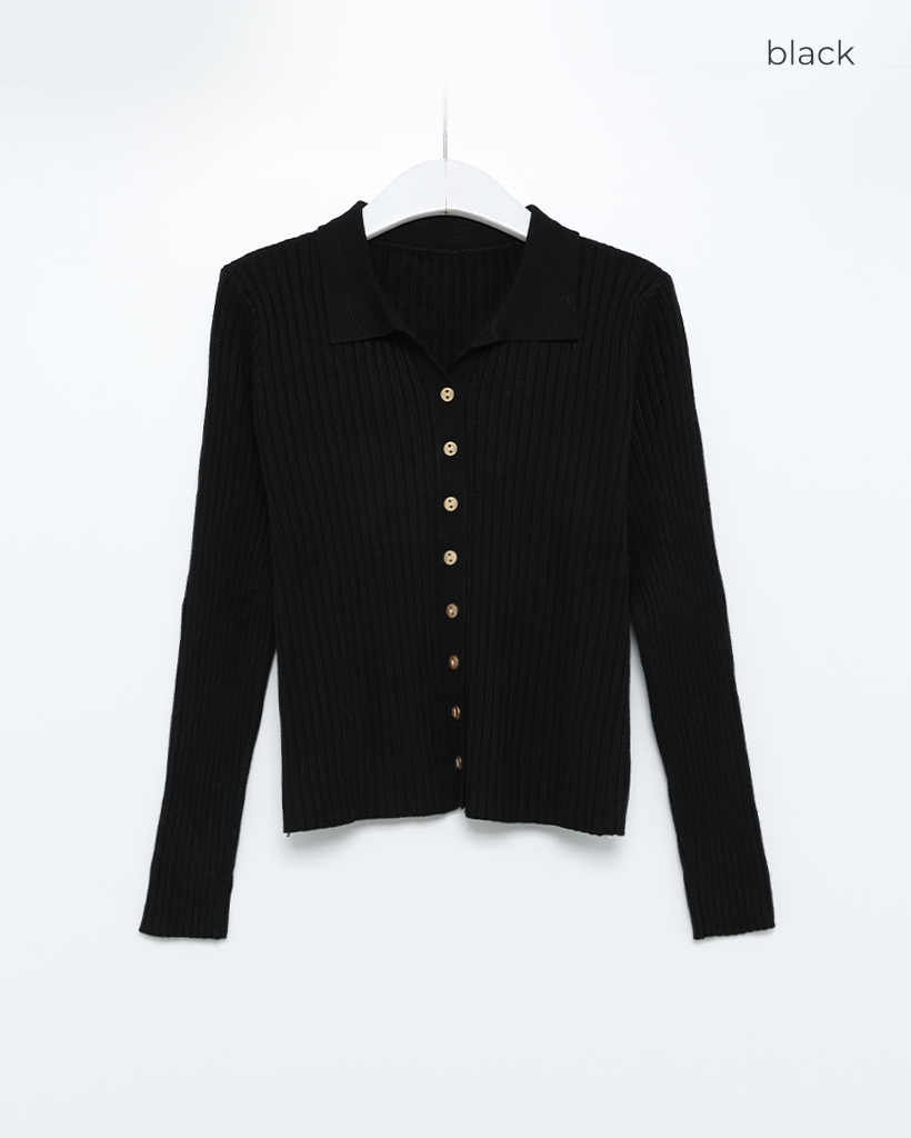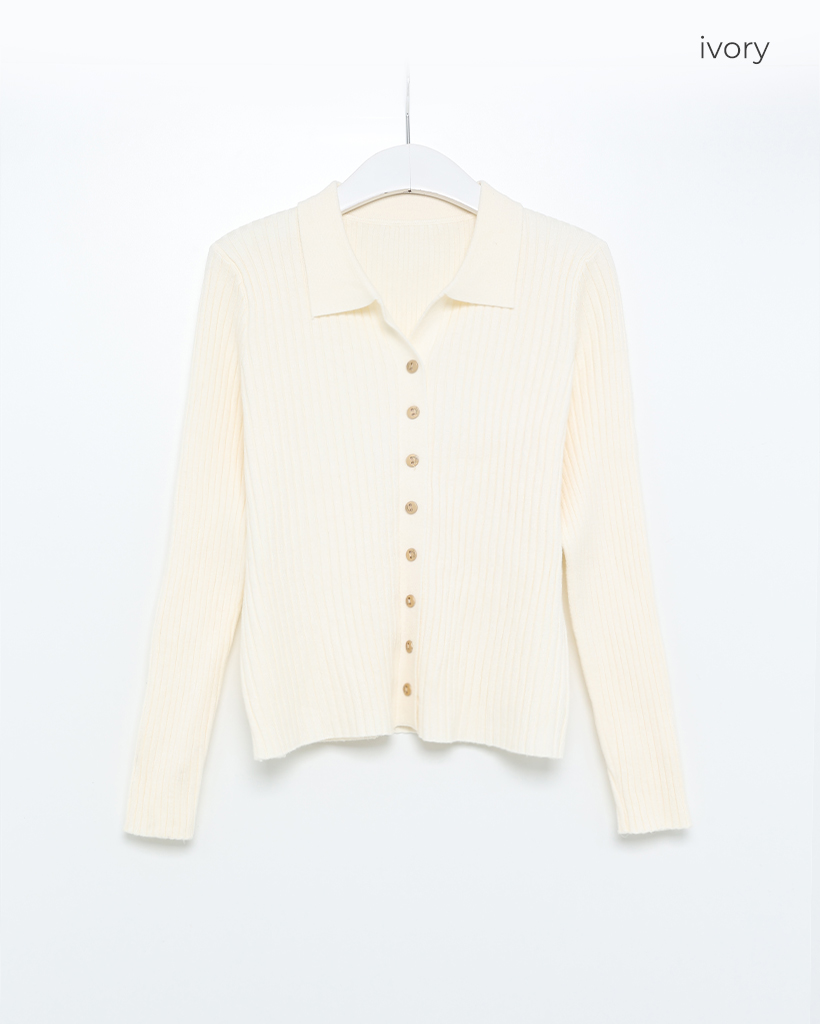 リブカラーボタンスリムカーディガン