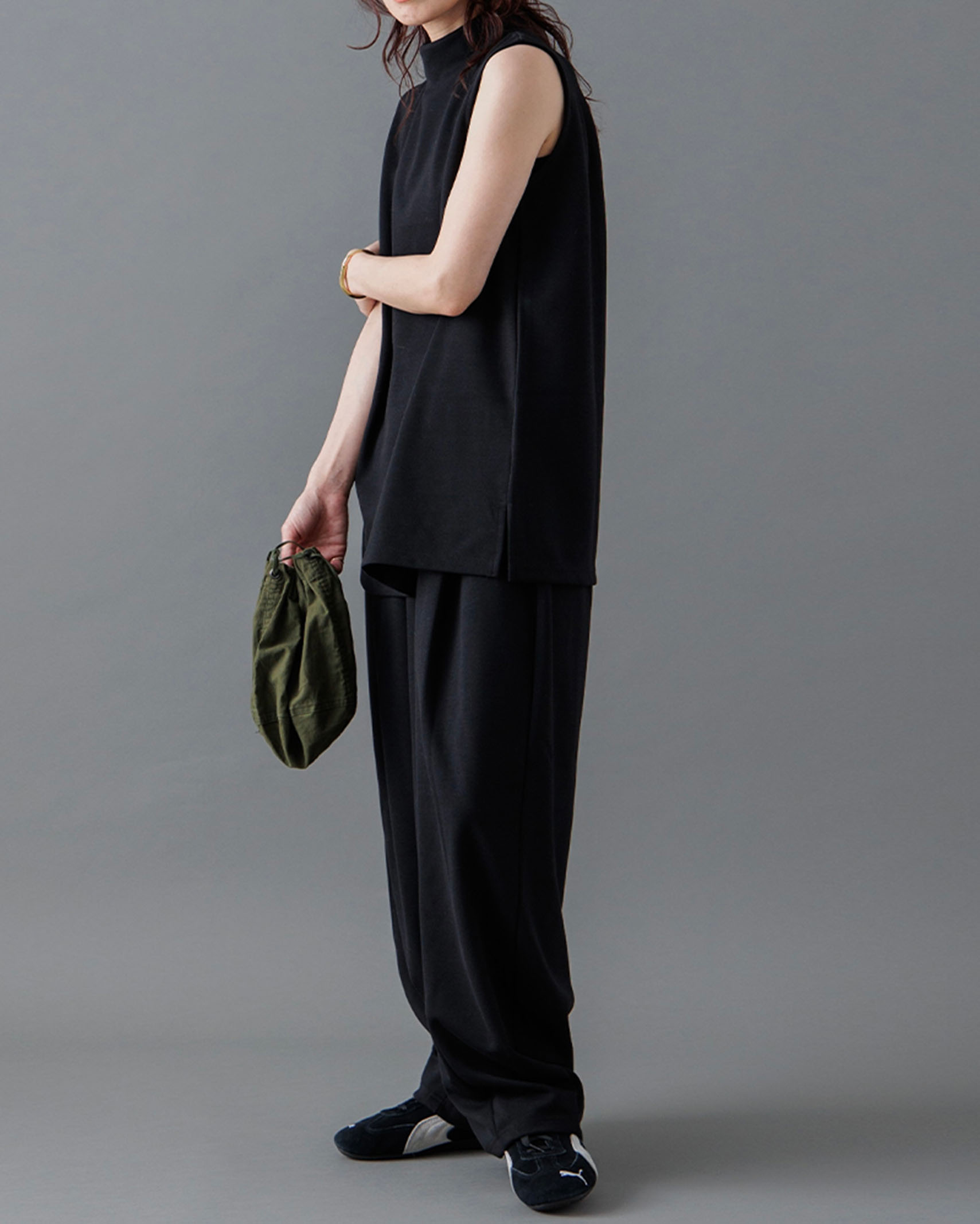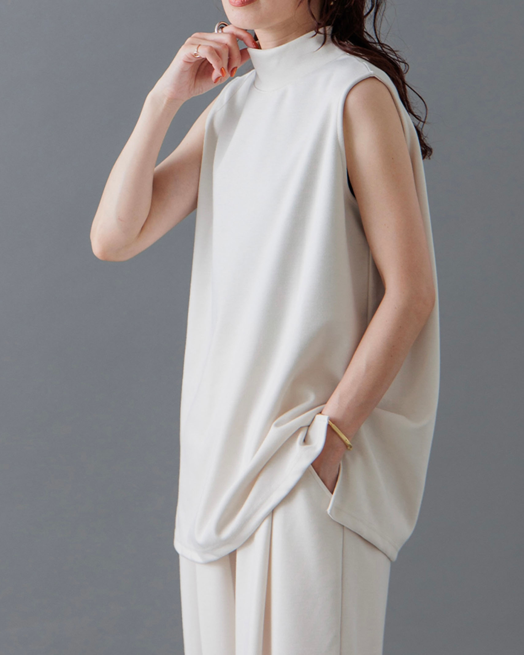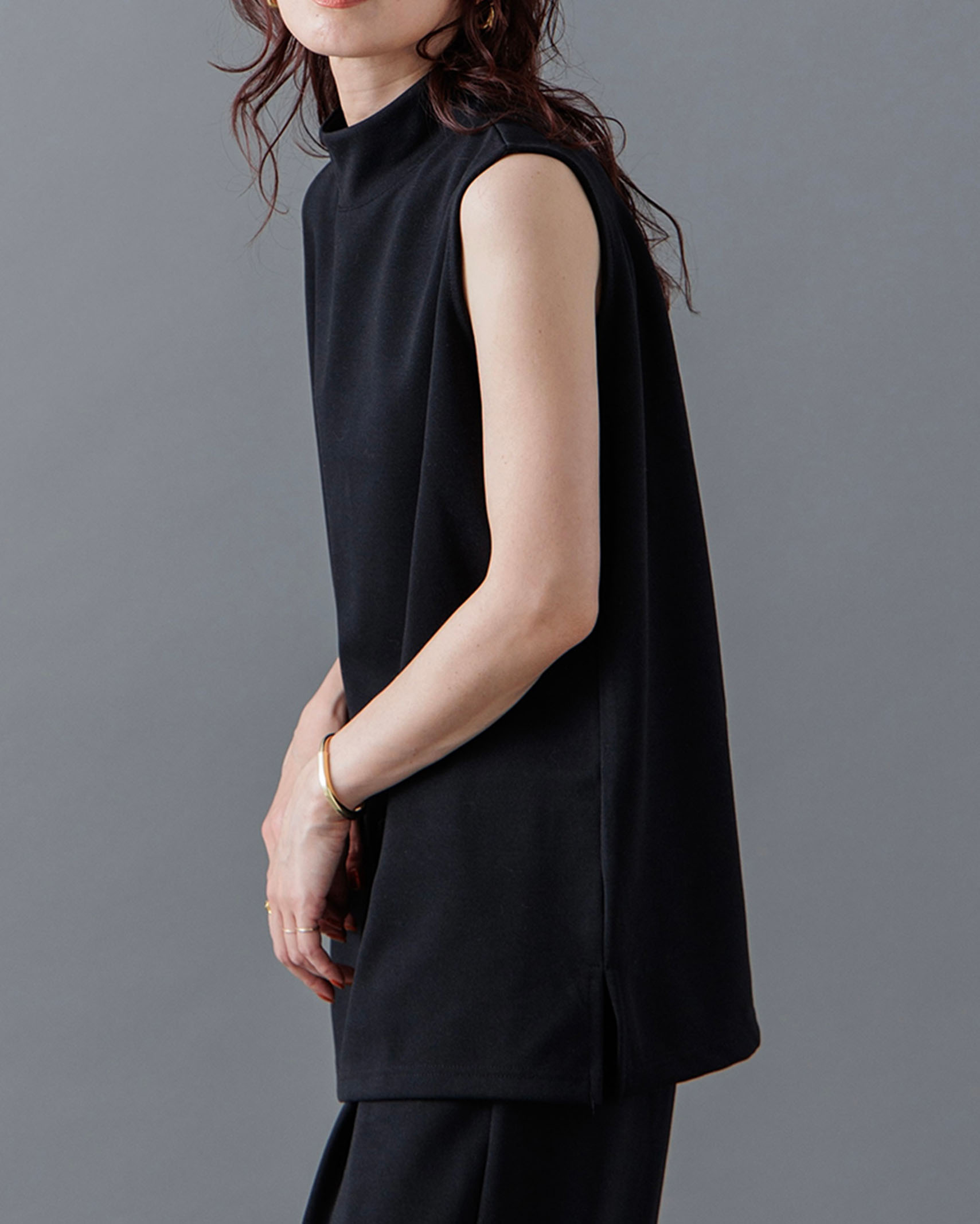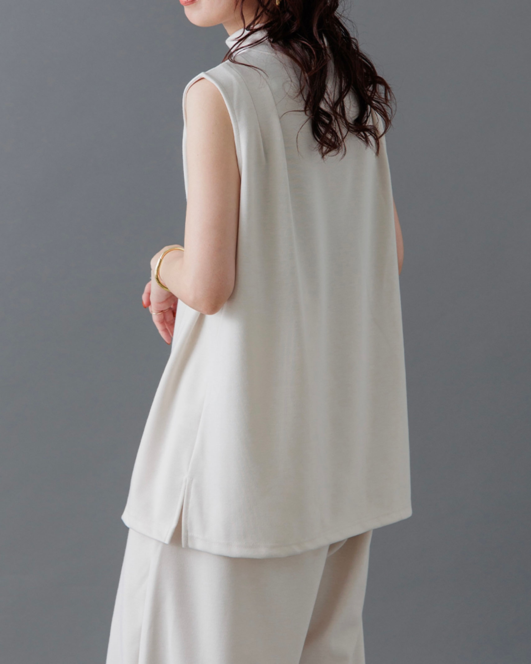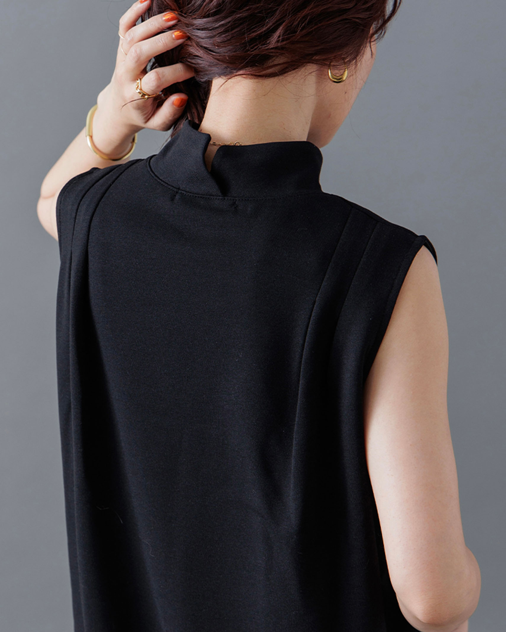 [1回再販](ORIGINAL) モックネックピンタックスリーブレス