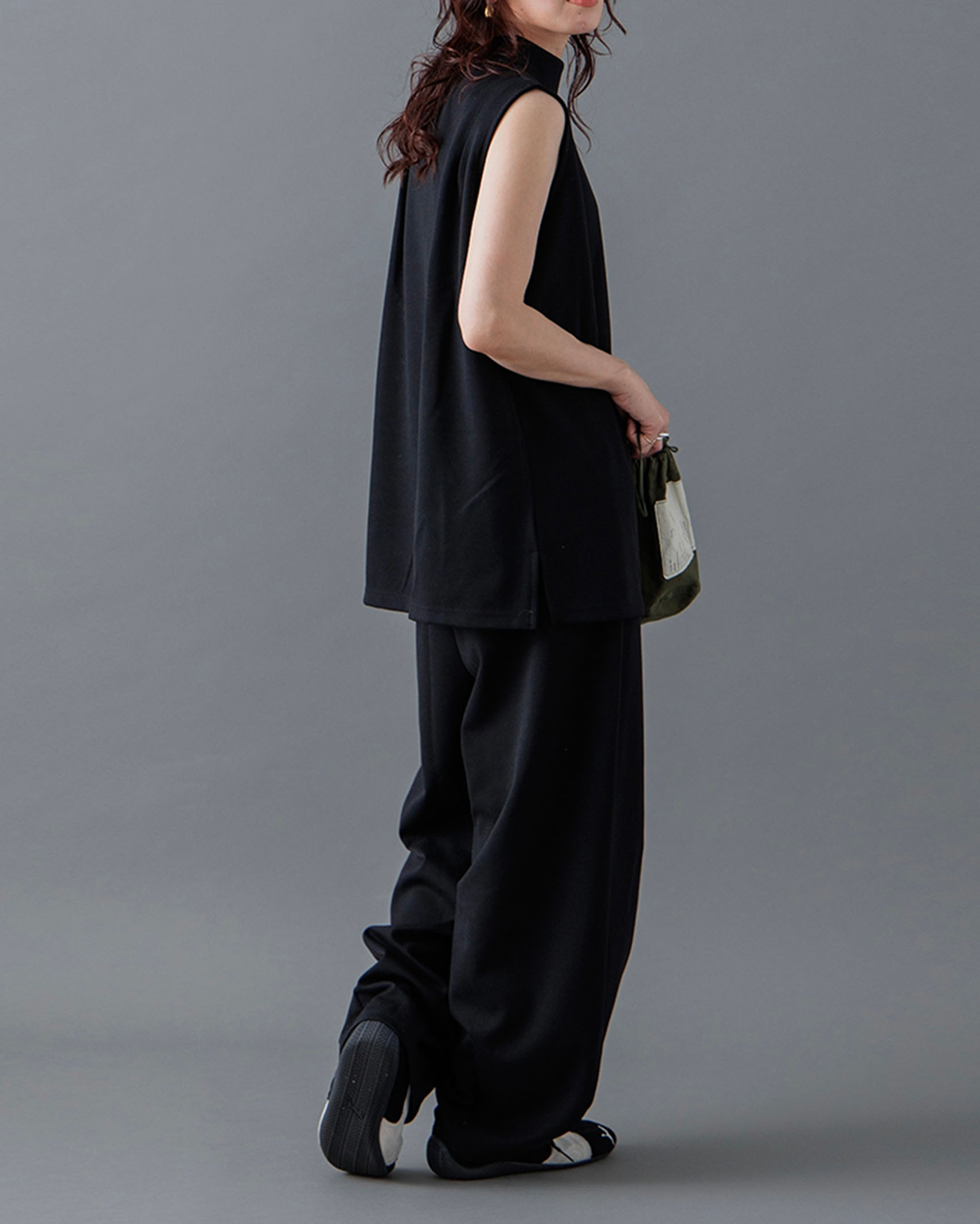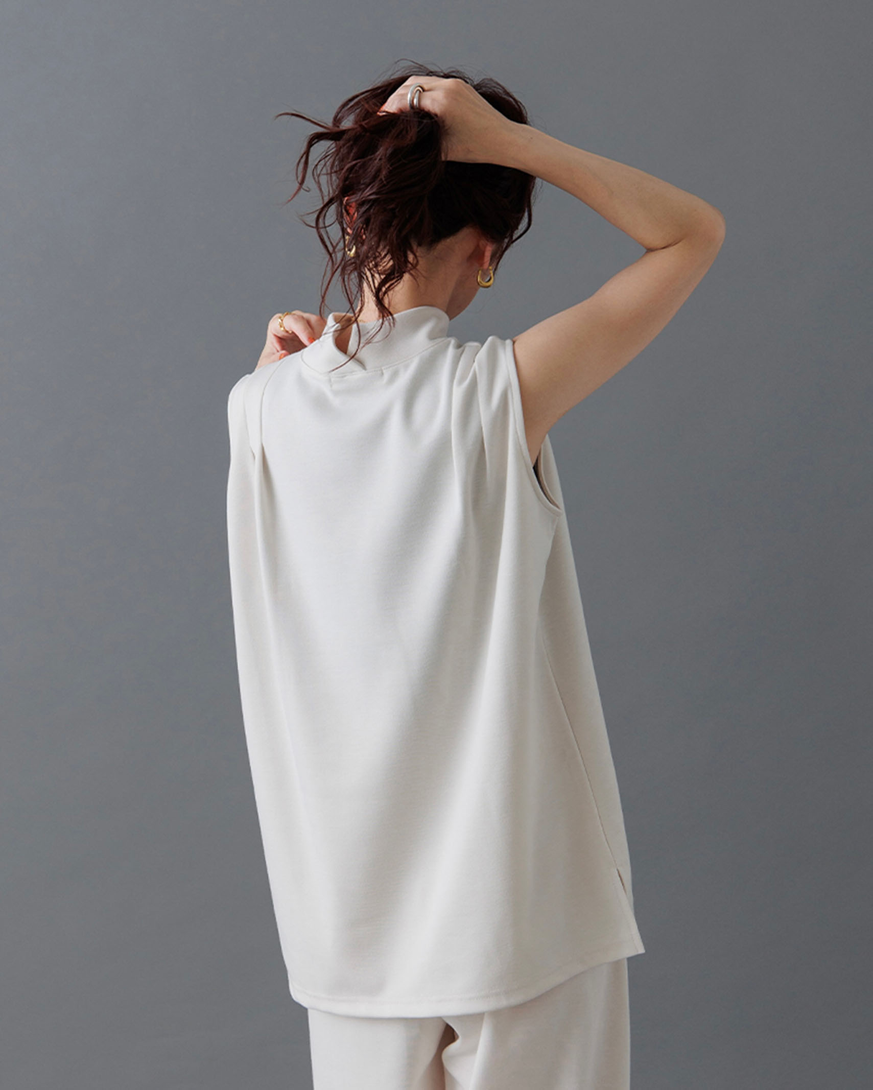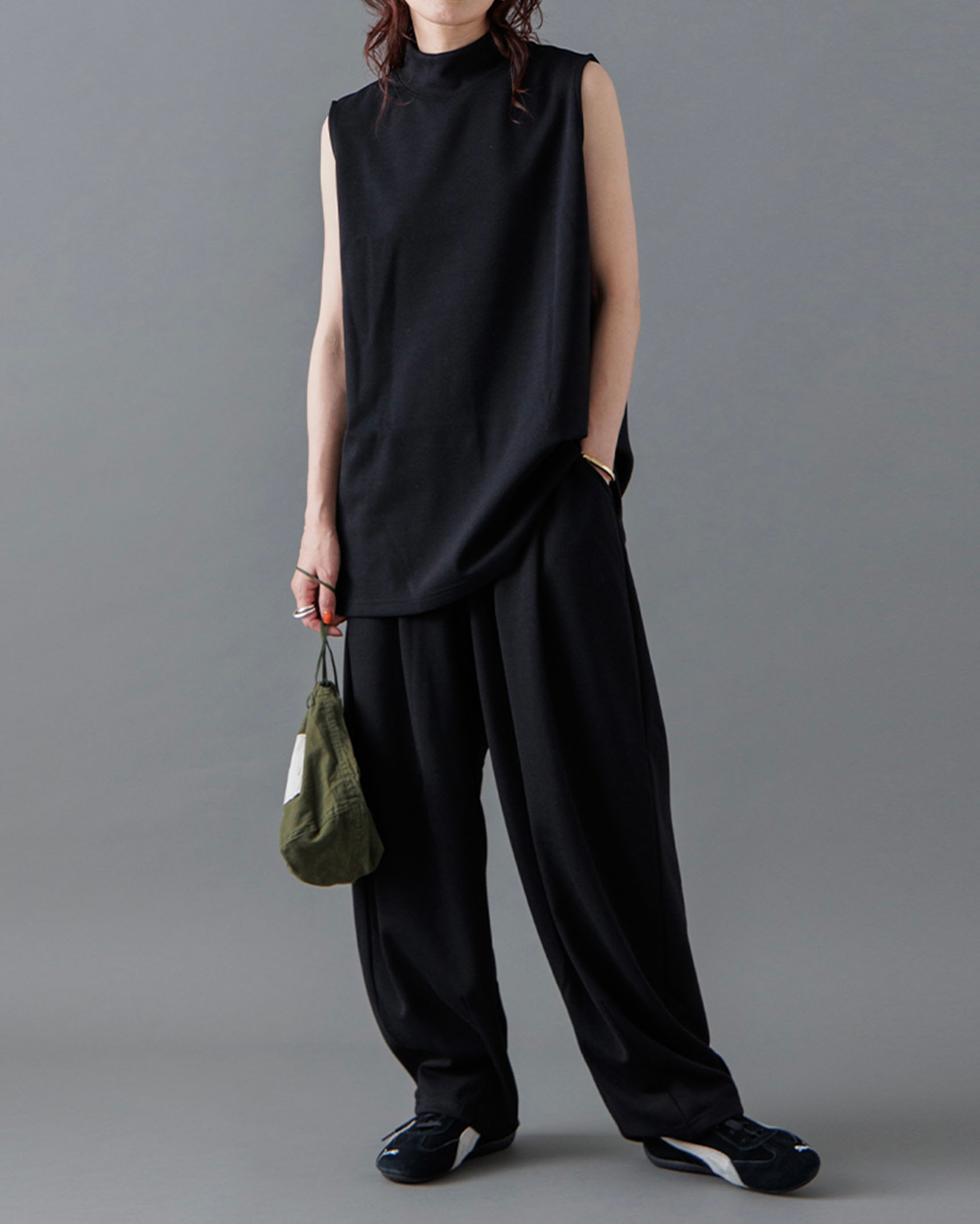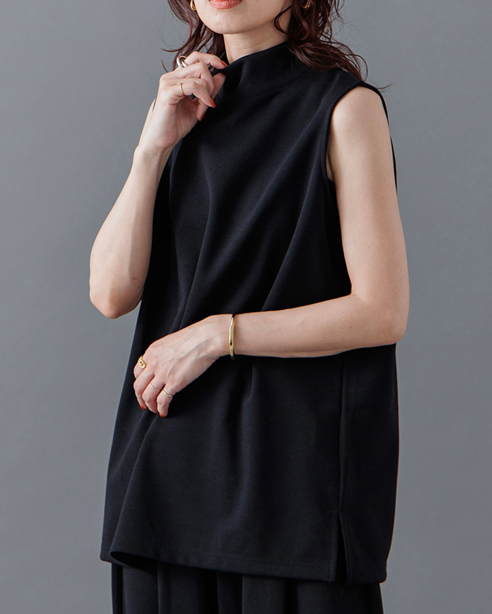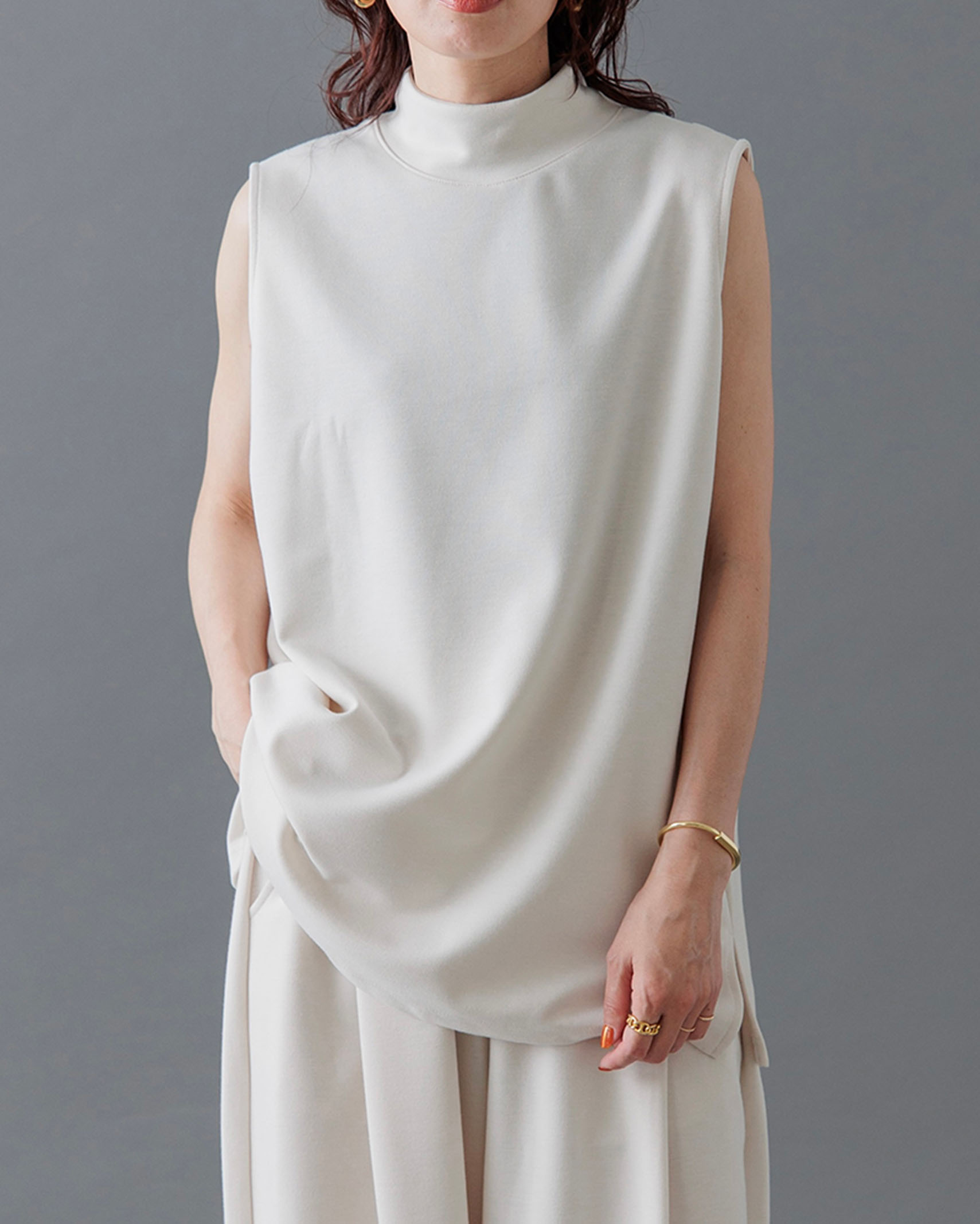[1回再販](ORIGINAL) モックネックピンタックスリーブレス