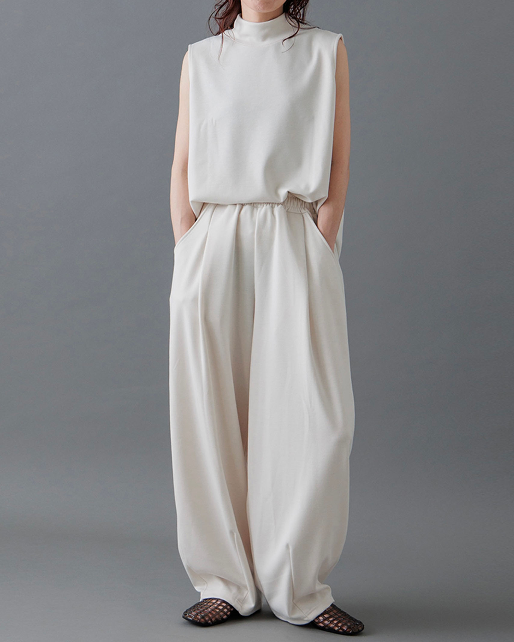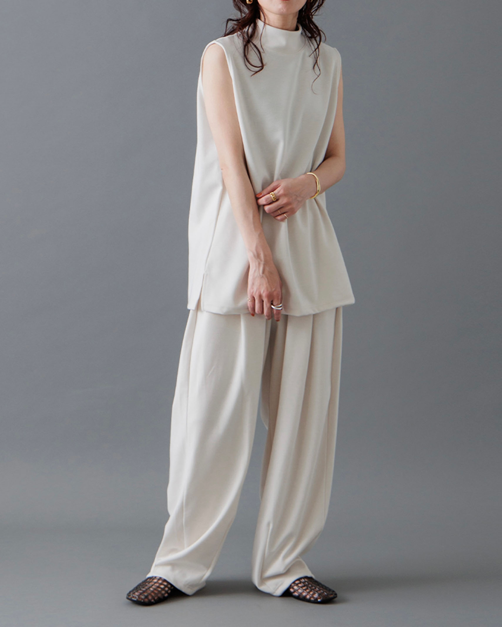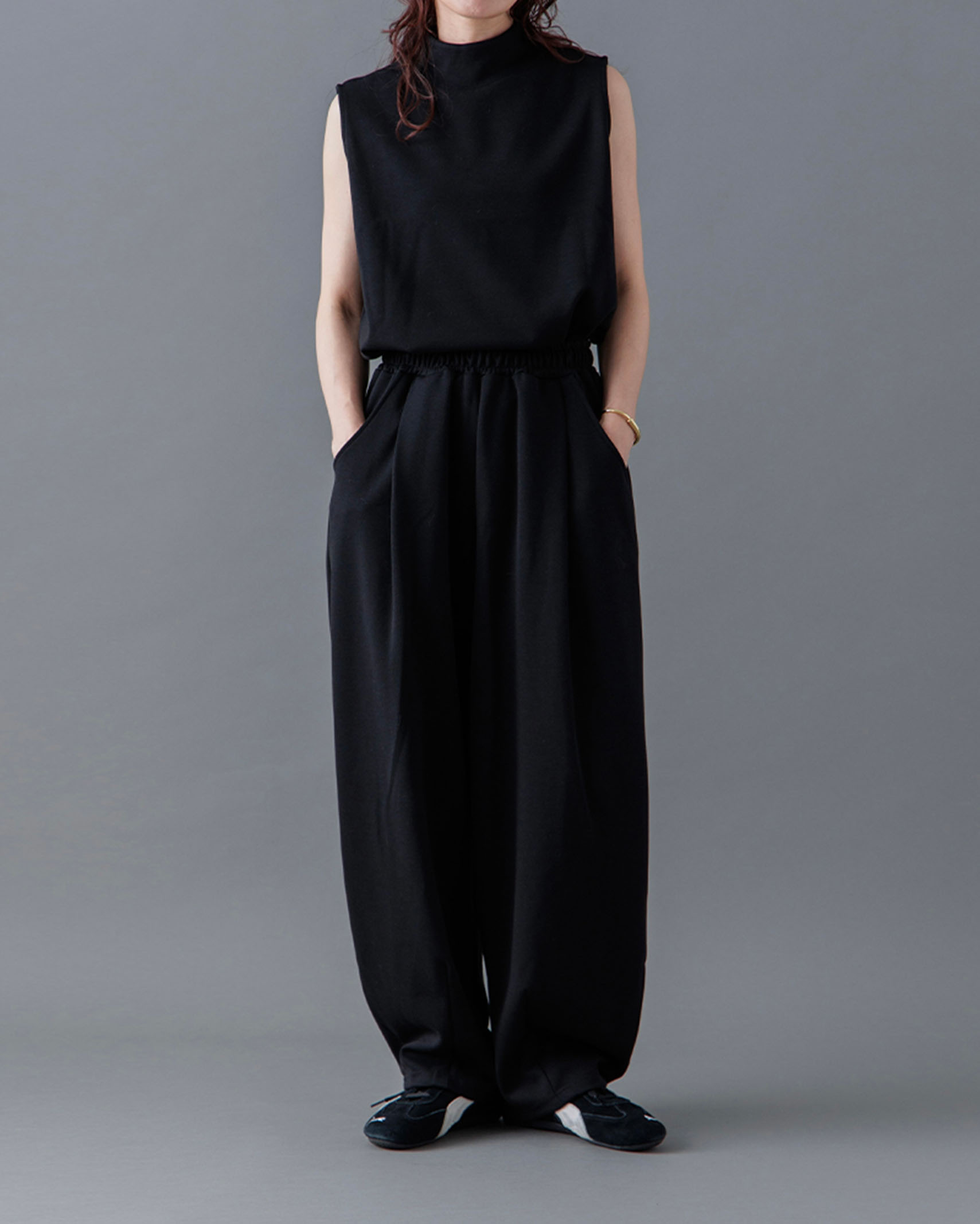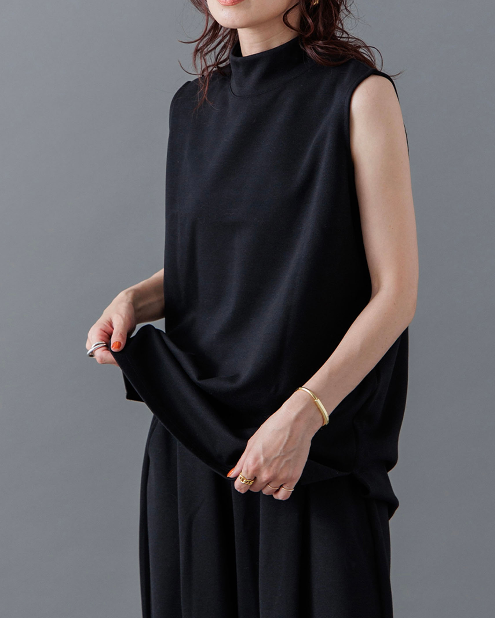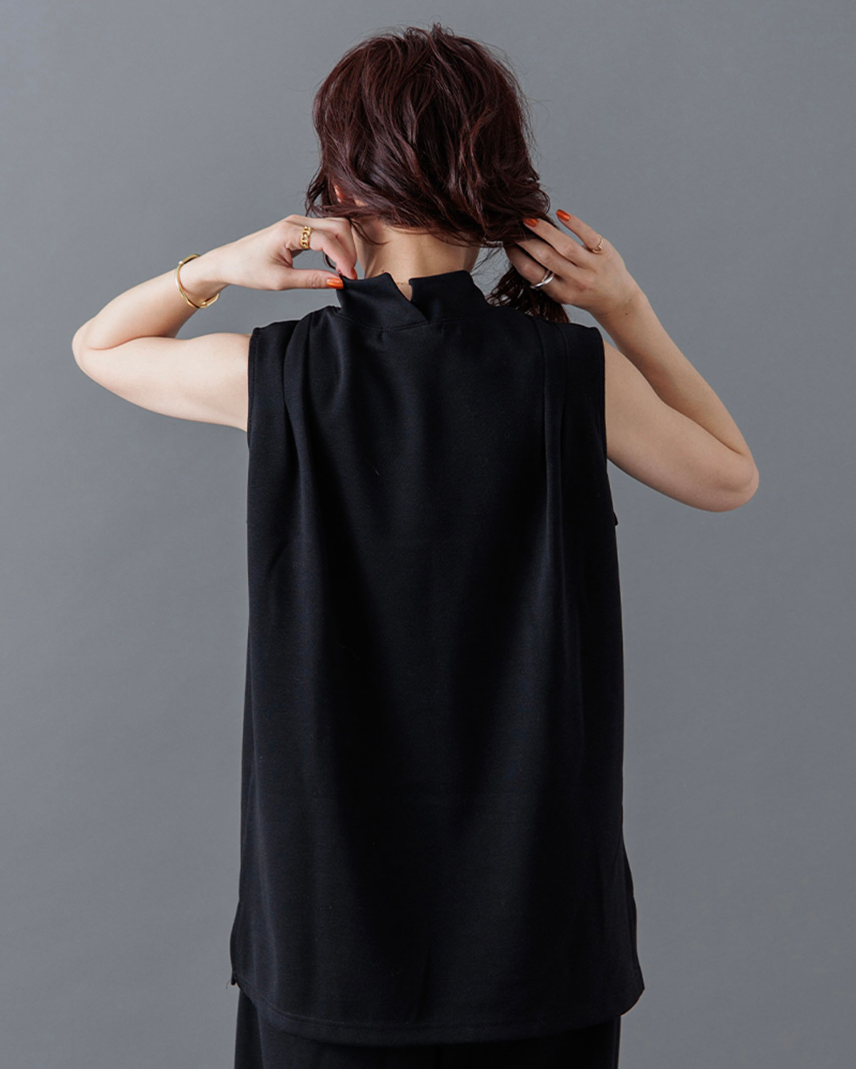 [1回再販](ORIGINAL) モックネックピンタックスリーブレス
