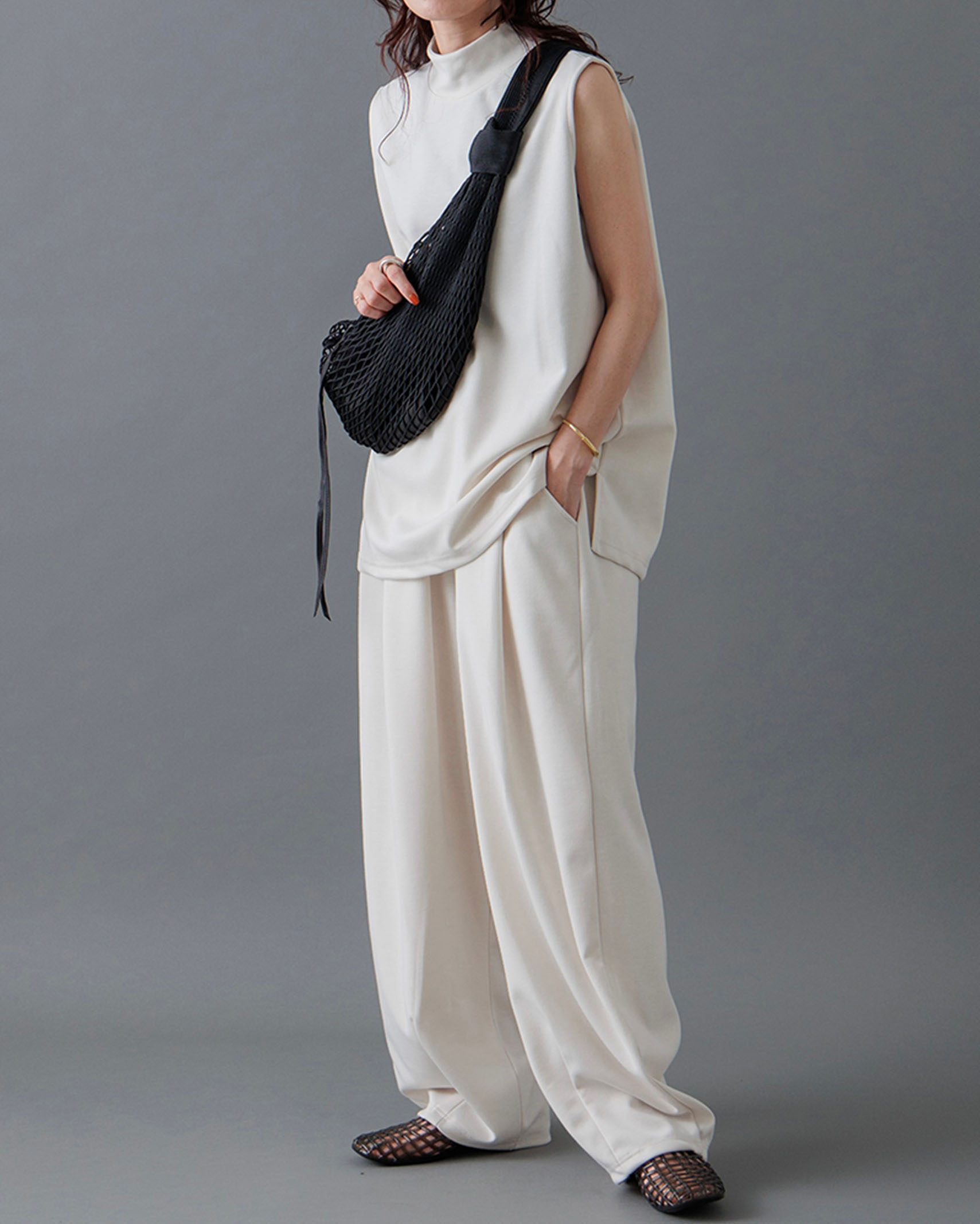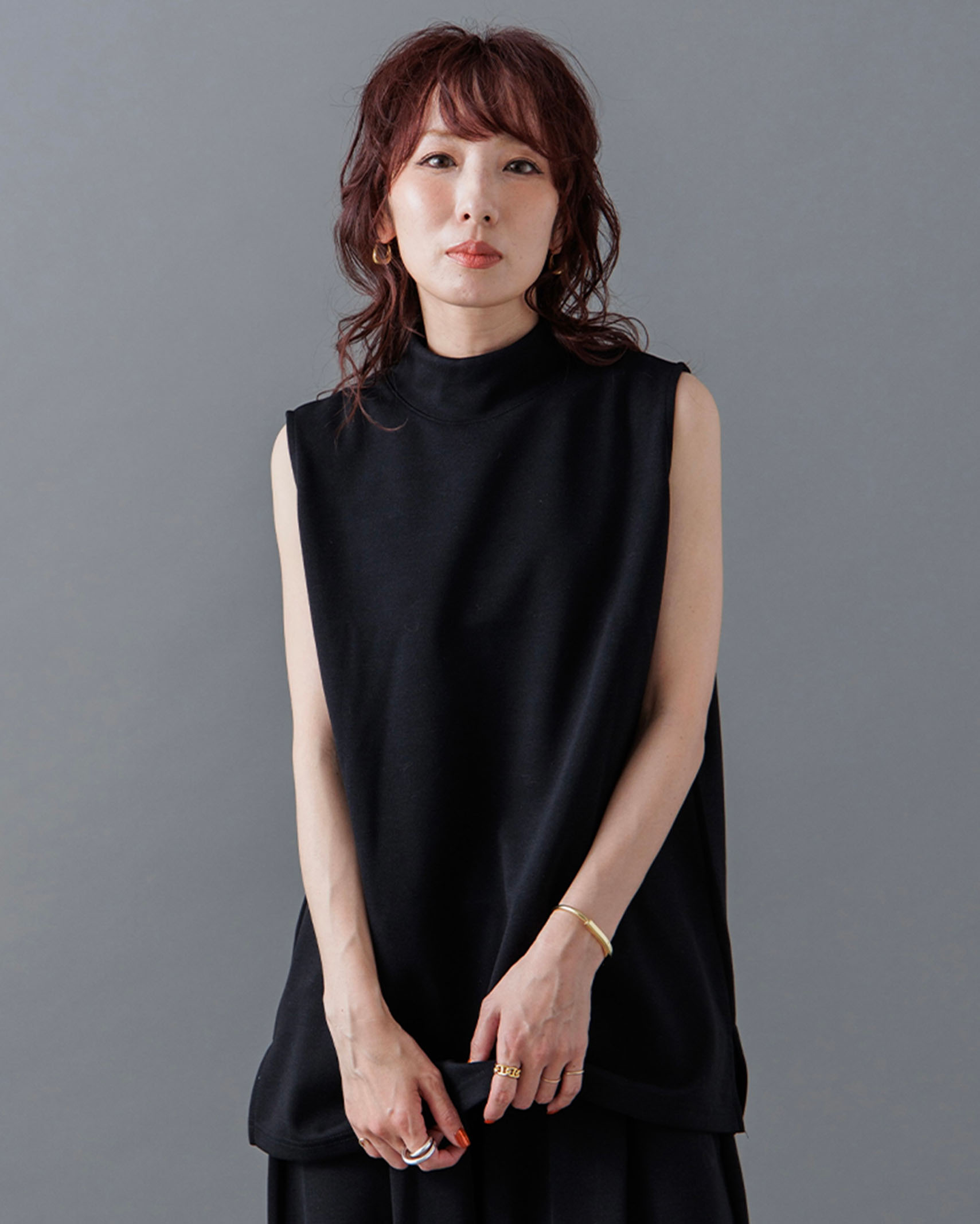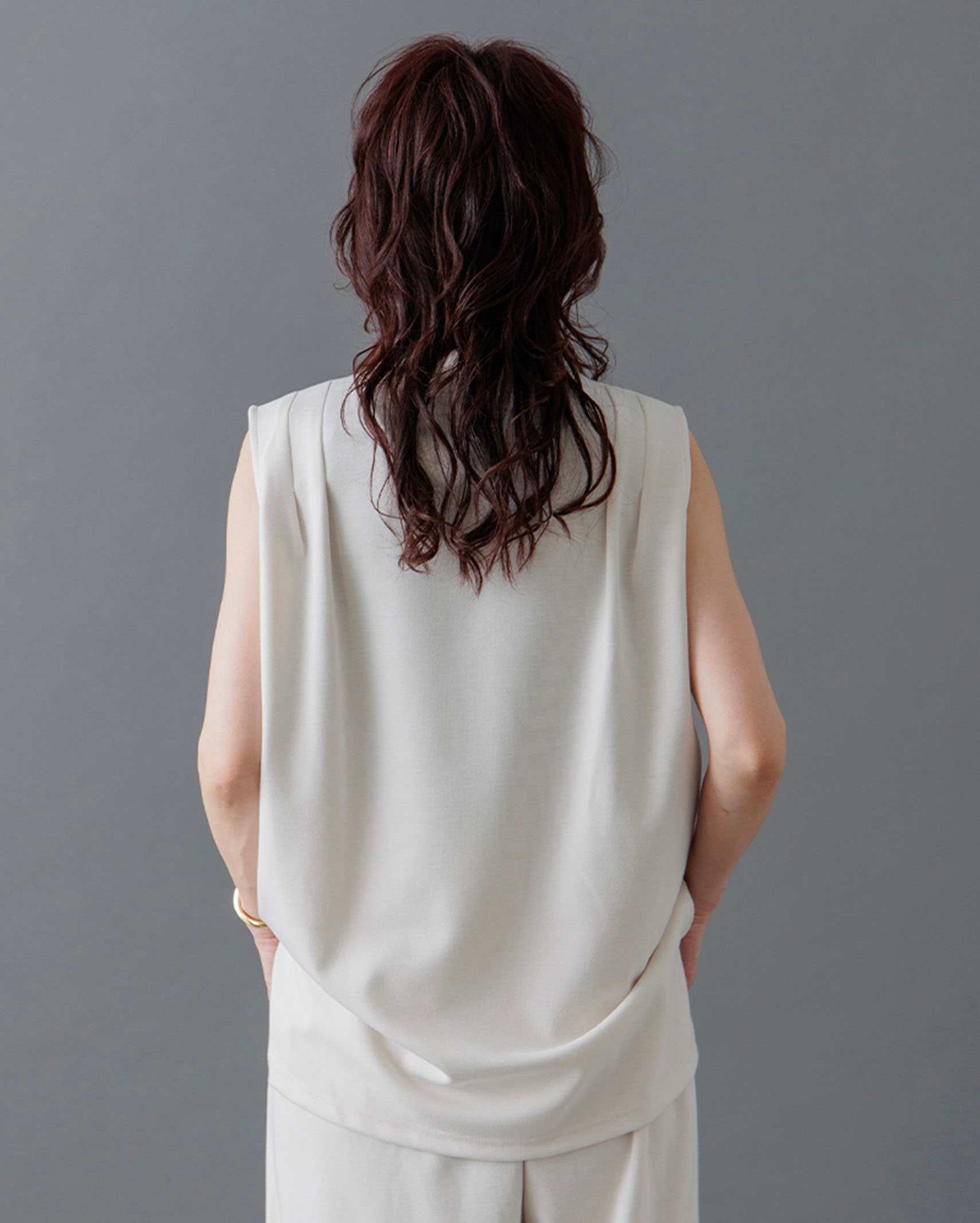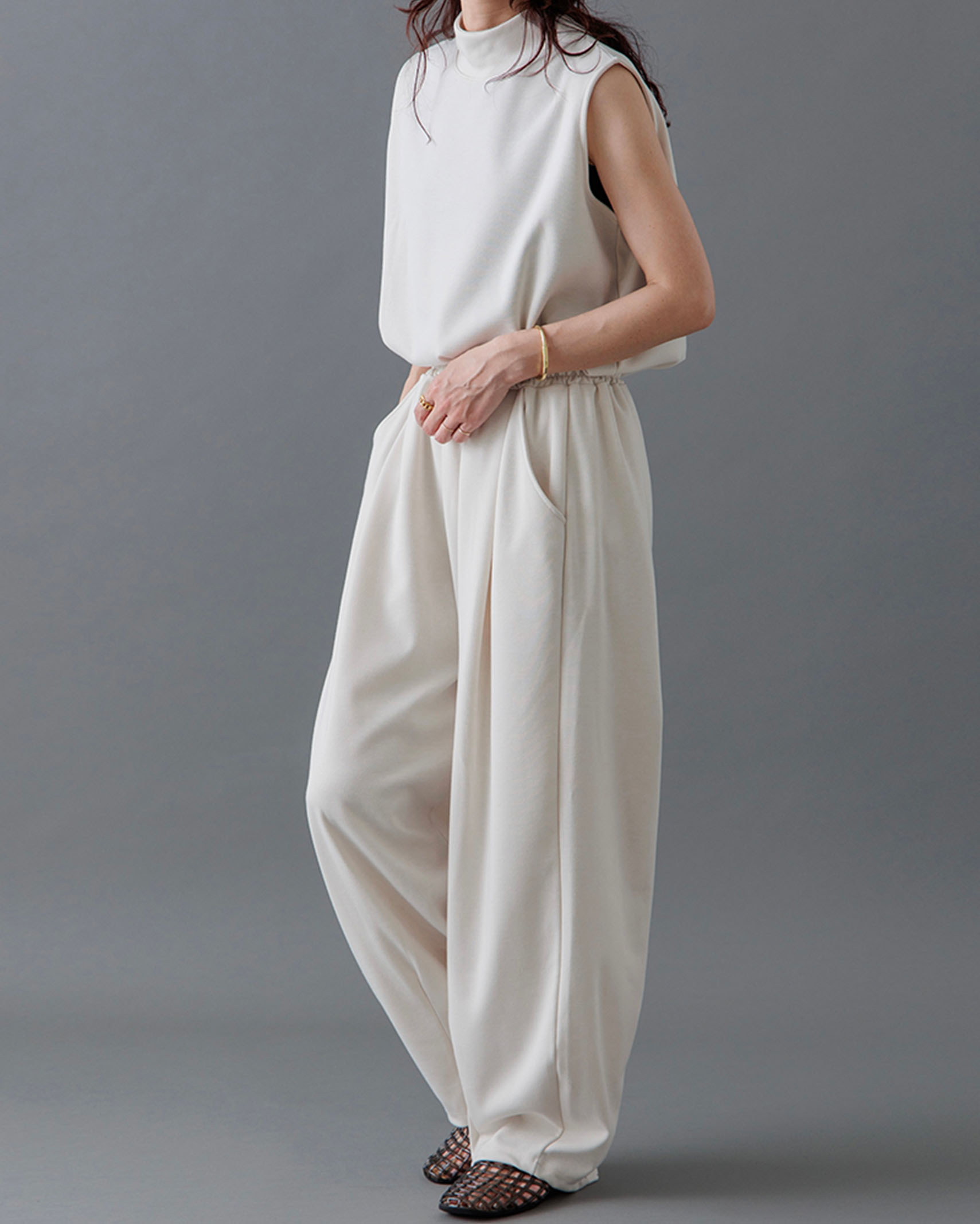 [1回再販](ORIGINAL) モックネックピンタックスリーブレス