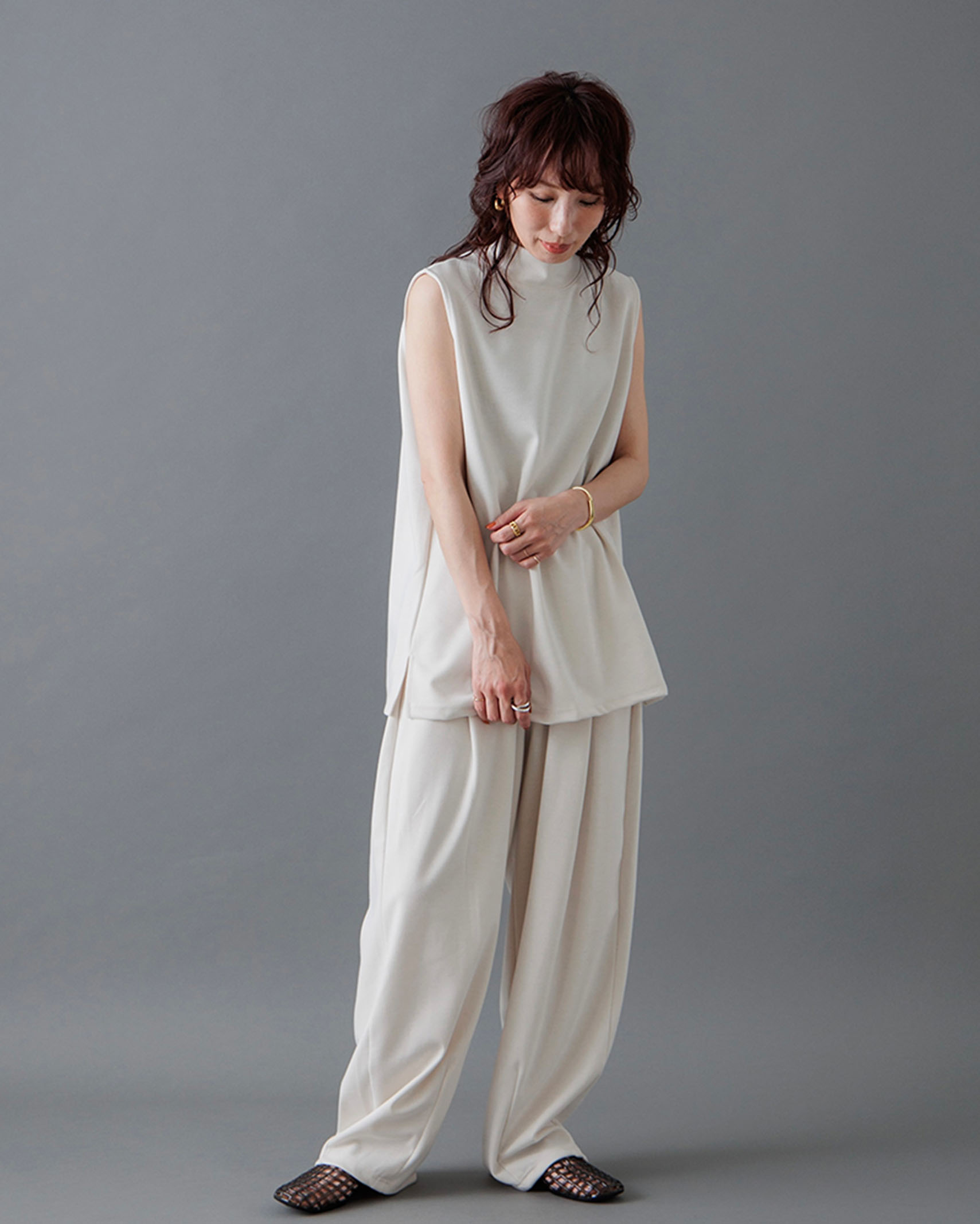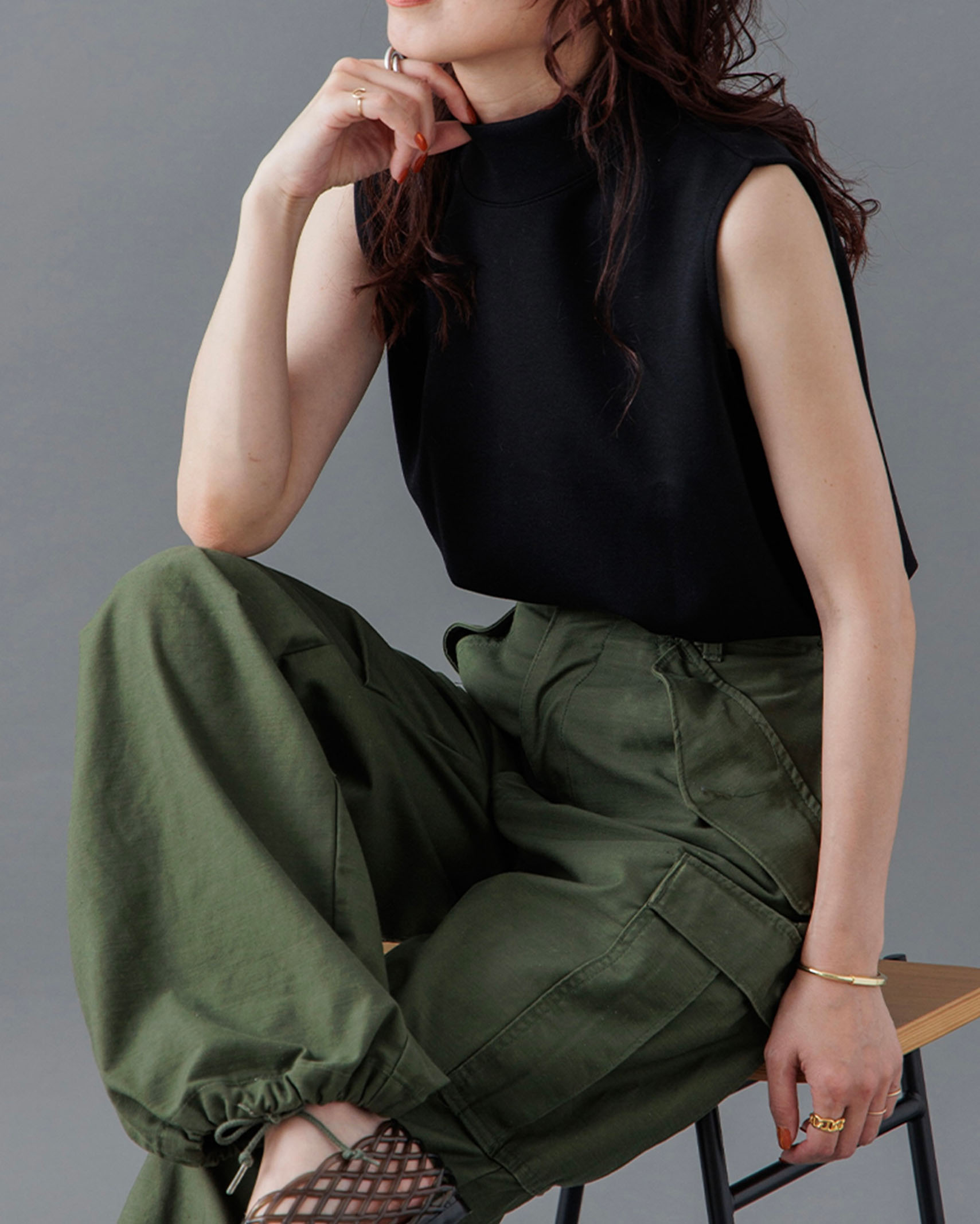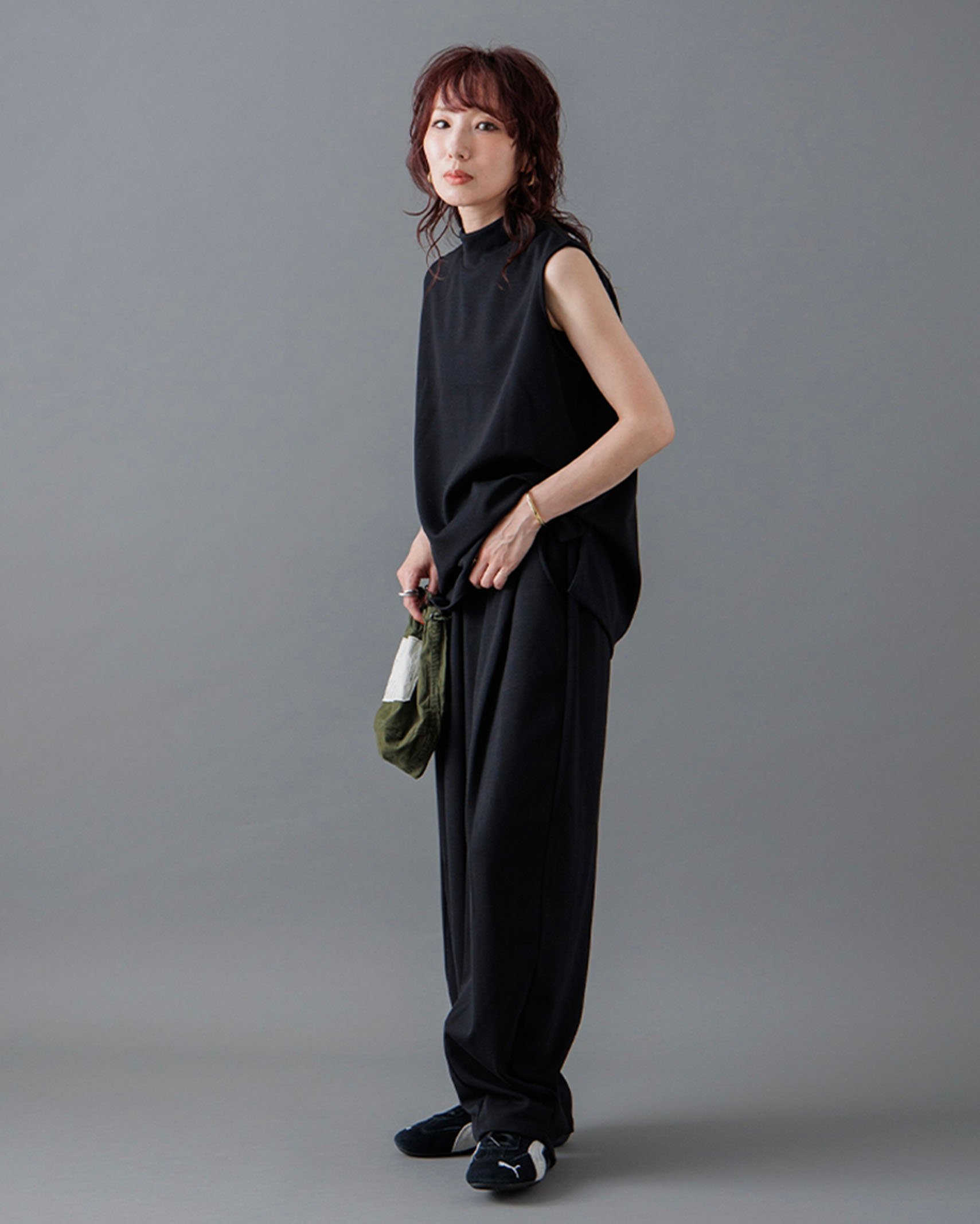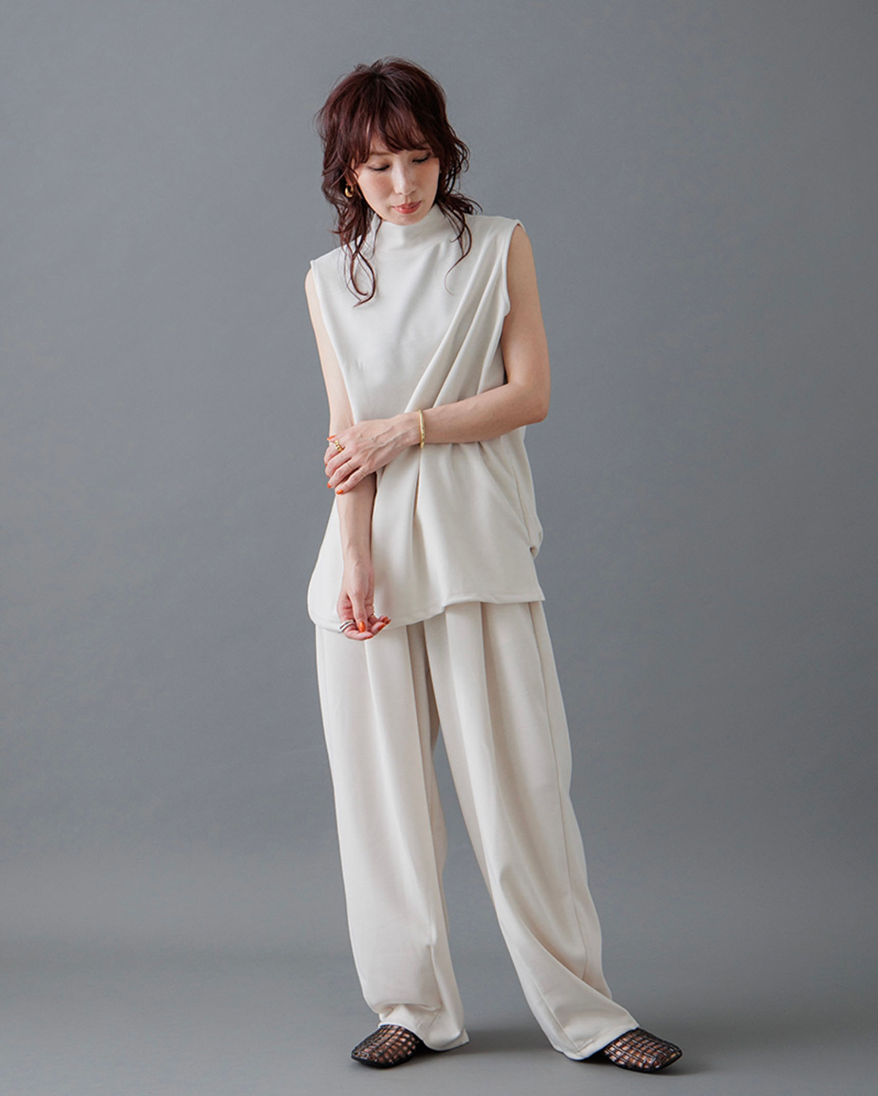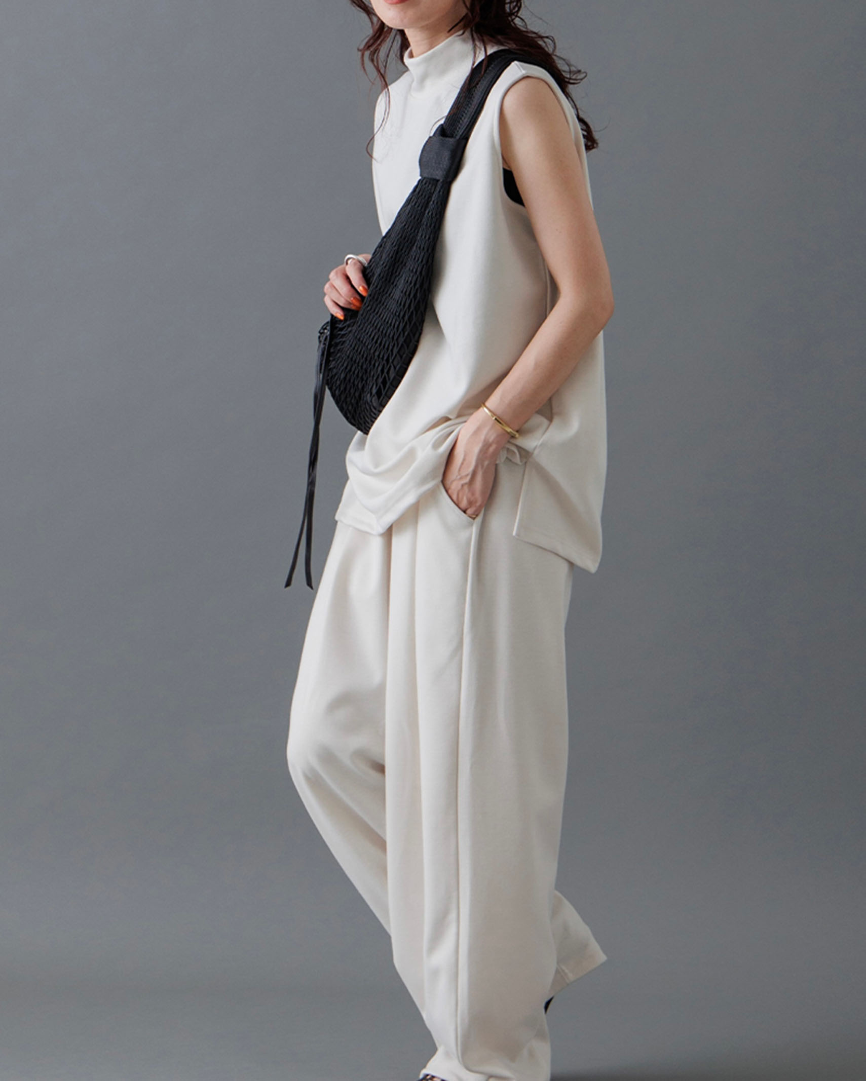 [1回再販](ORIGINAL) モックネックピンタックスリーブレス