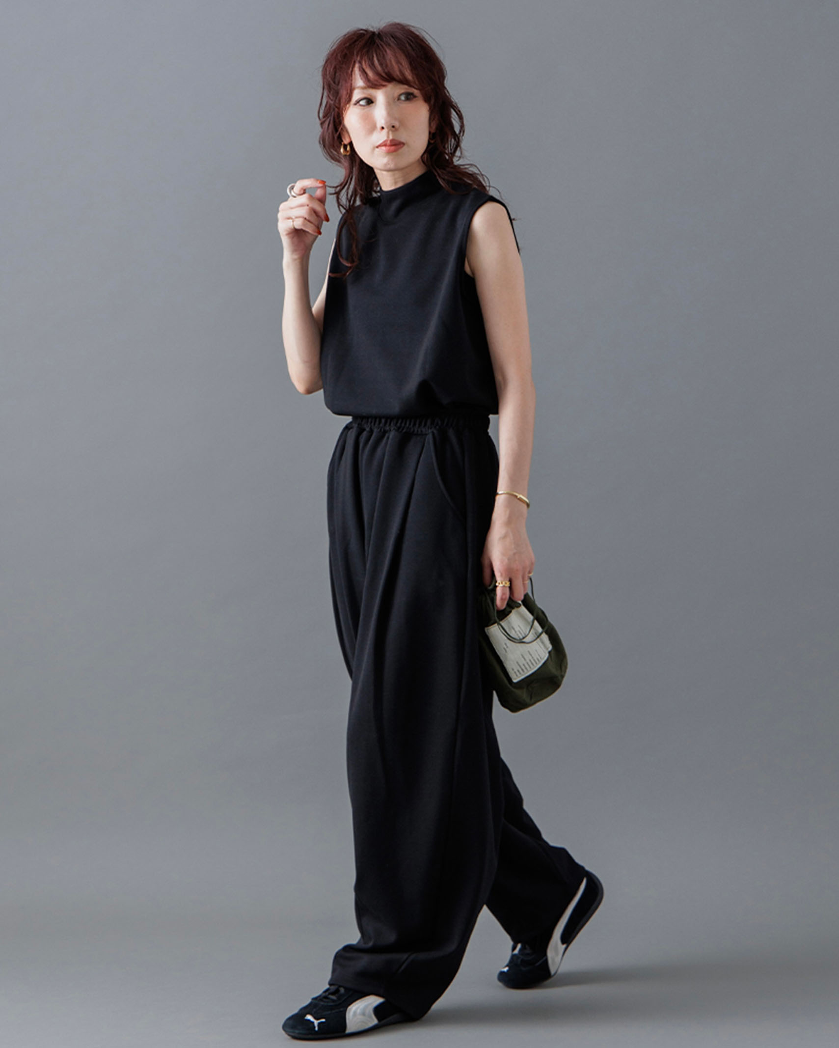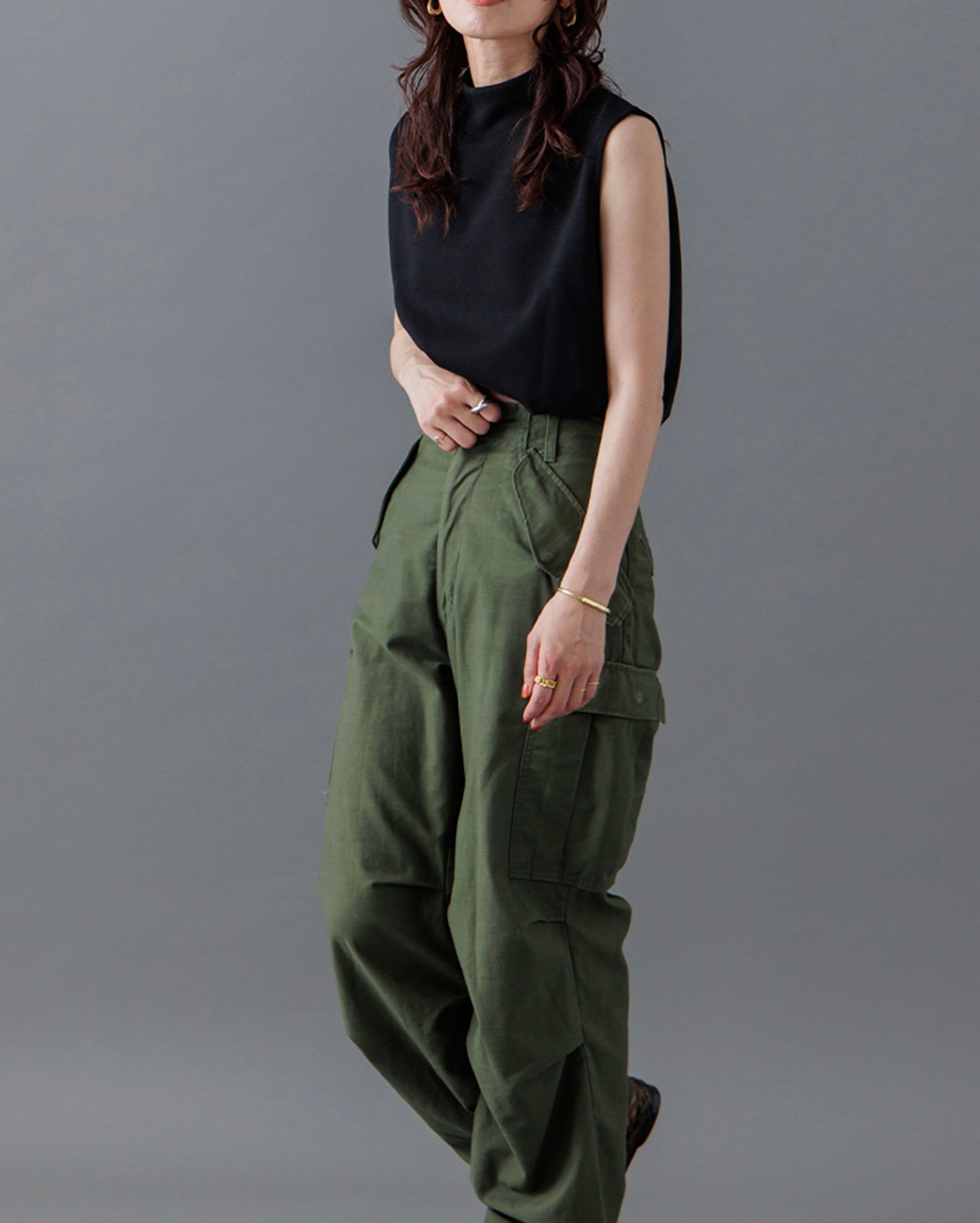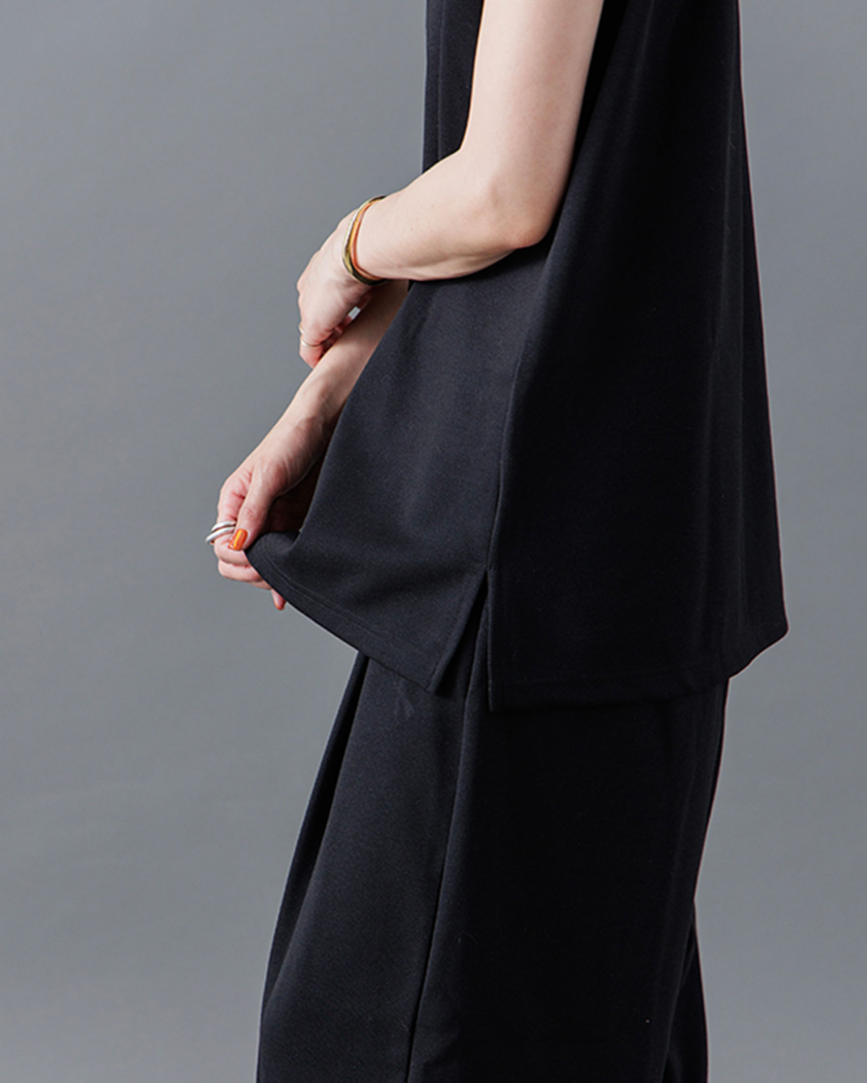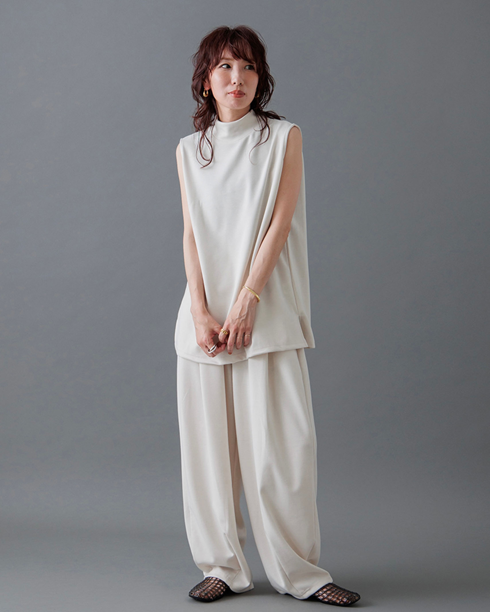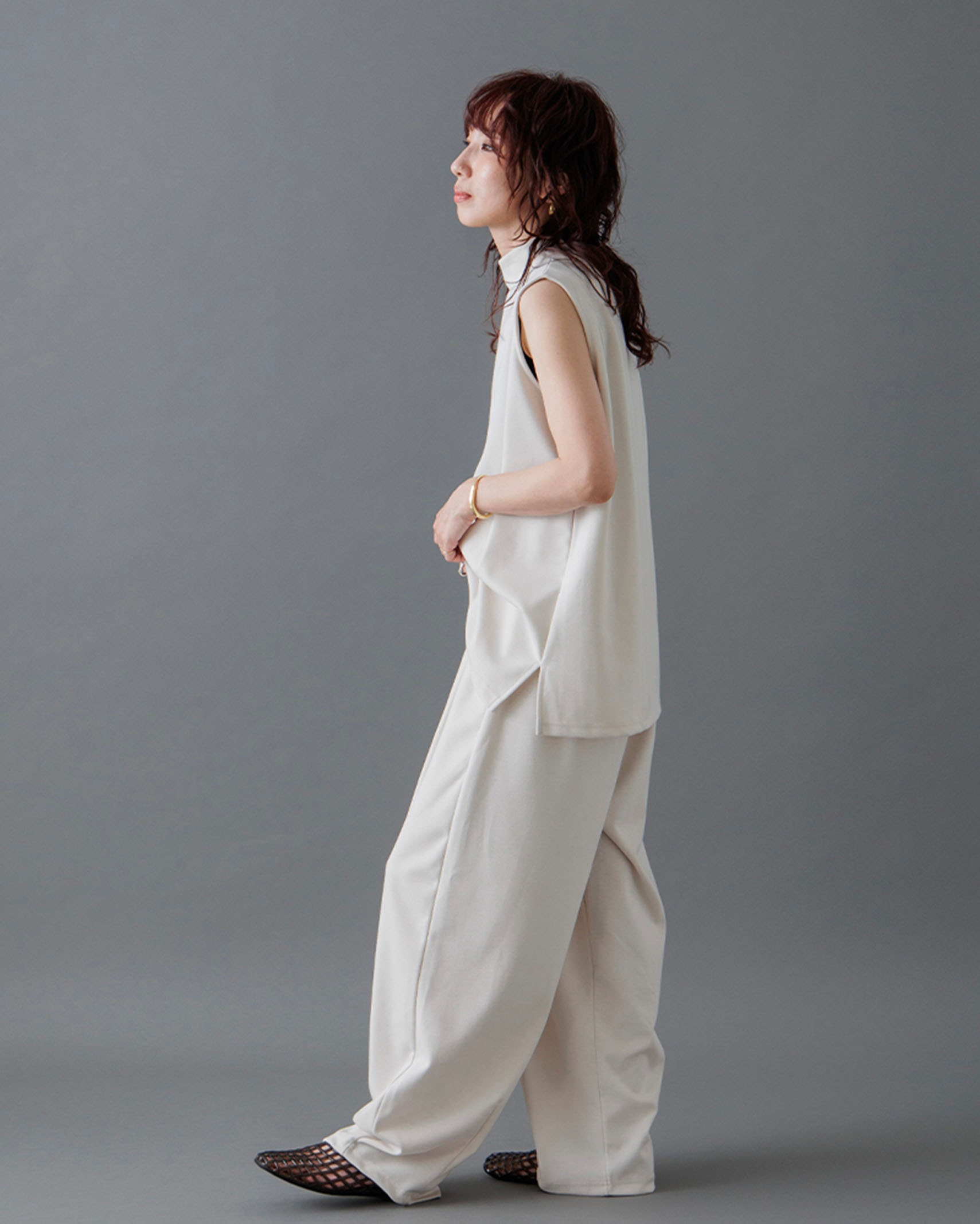 [1回再販](ORIGINAL) モックネックピンタックスリーブレス