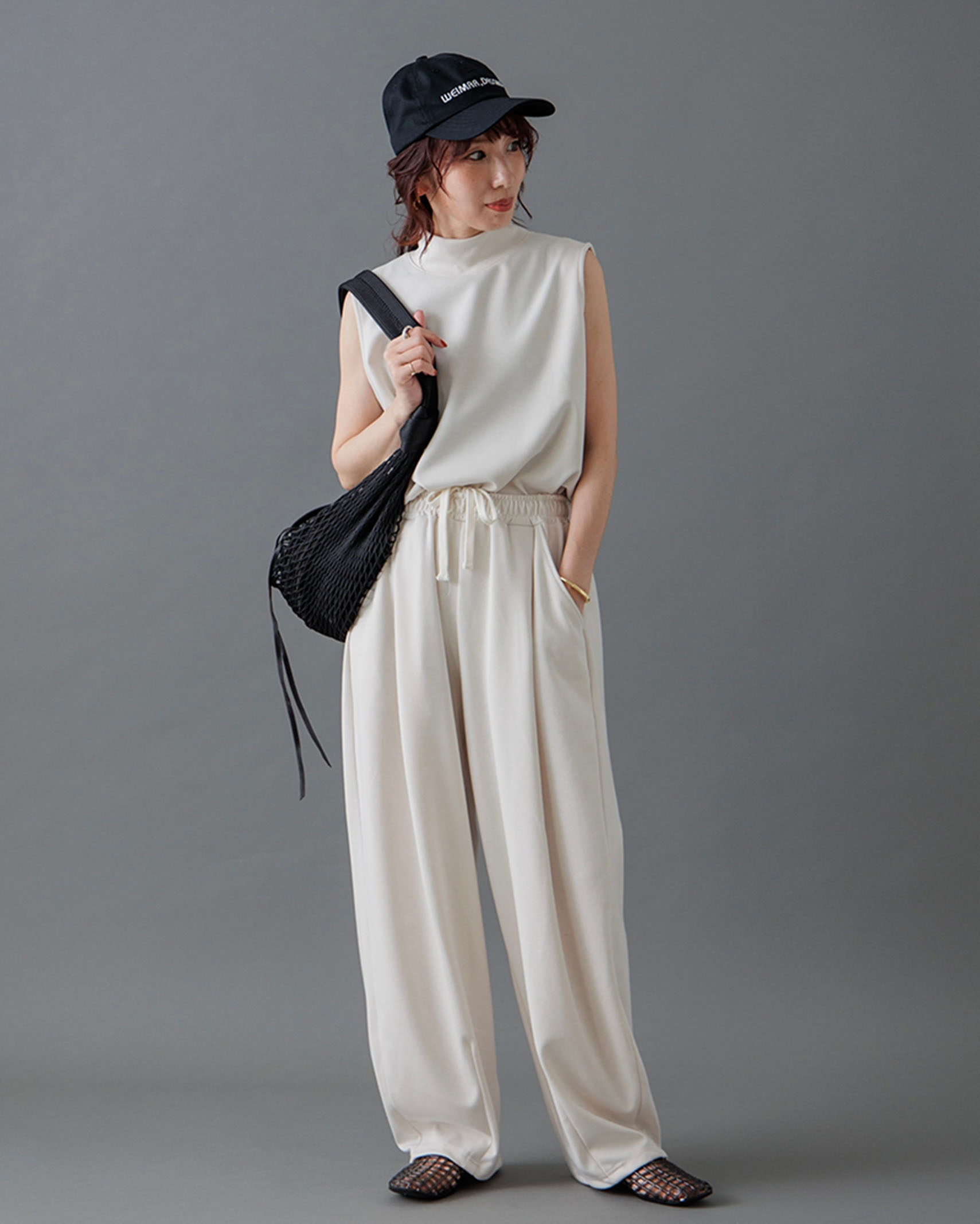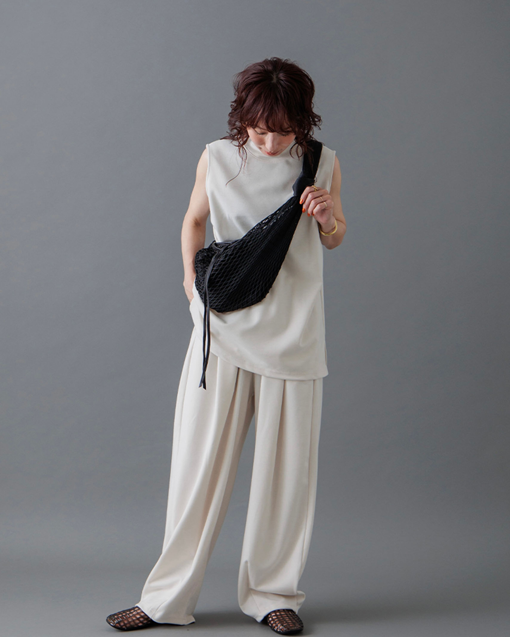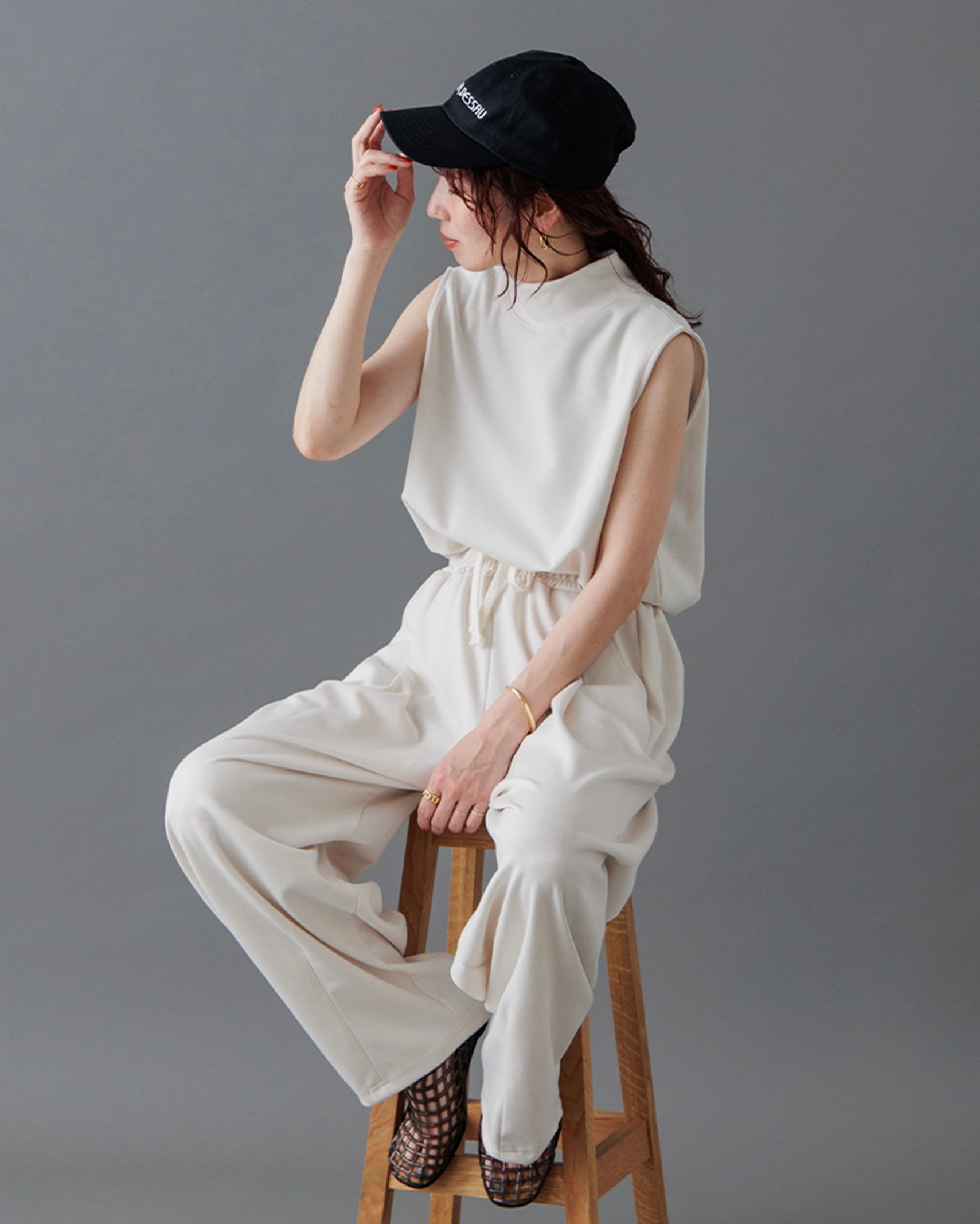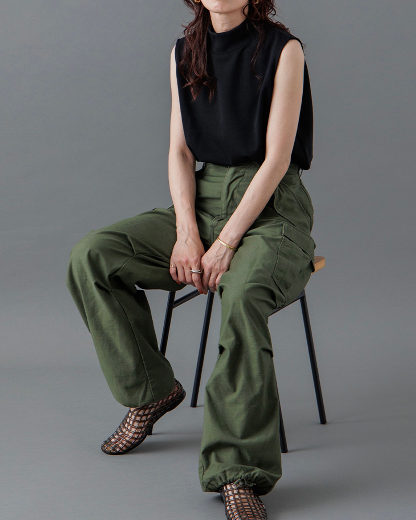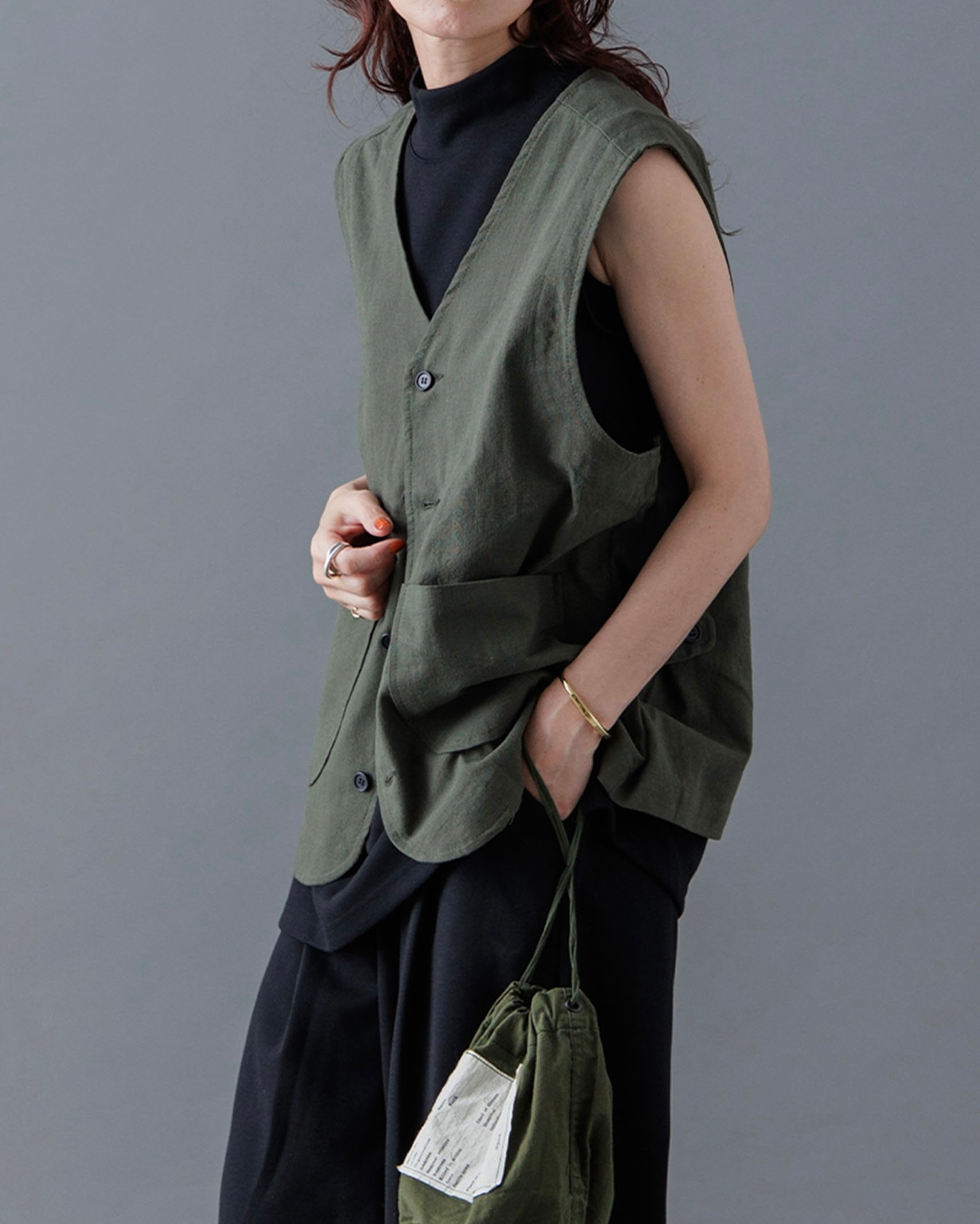 [1回再販](ORIGINAL) モックネックピンタックスリーブレス