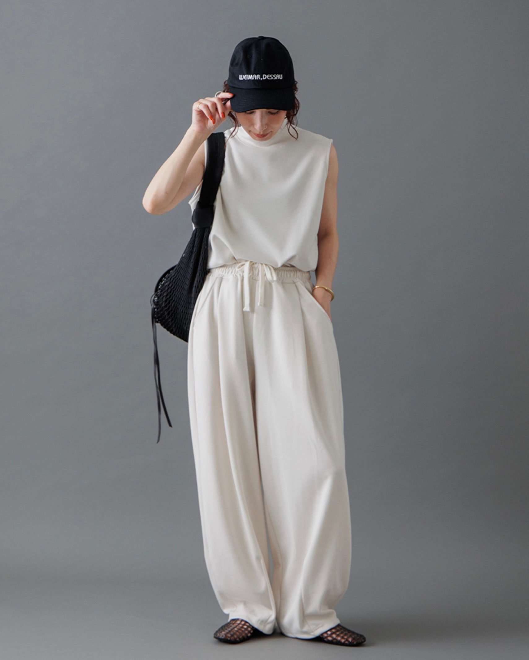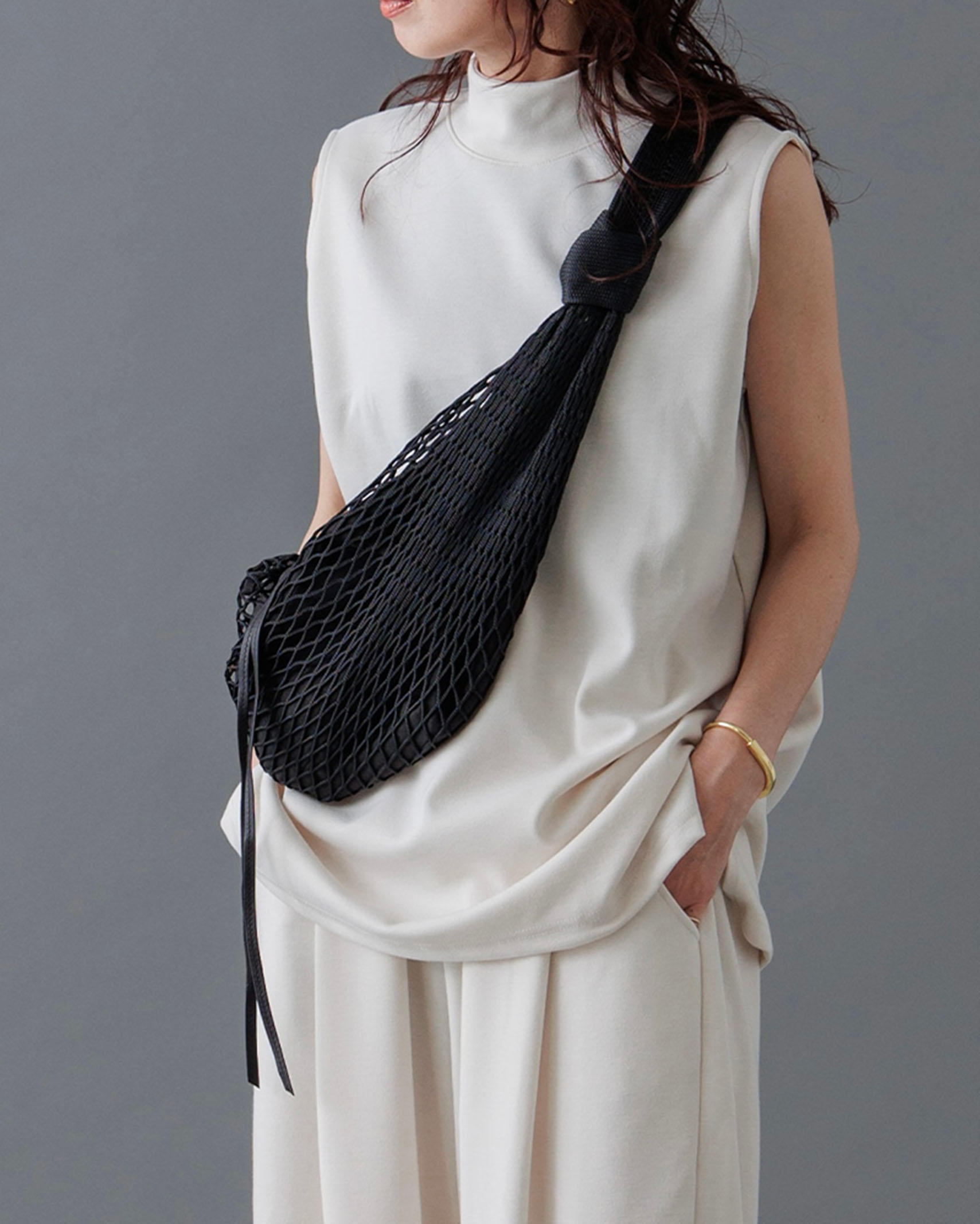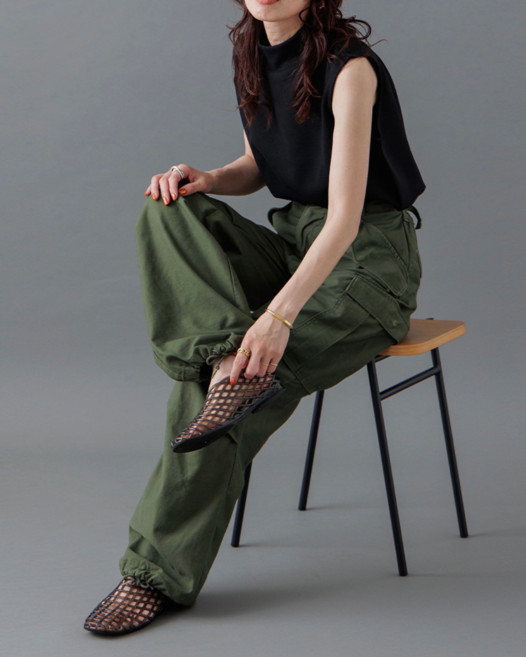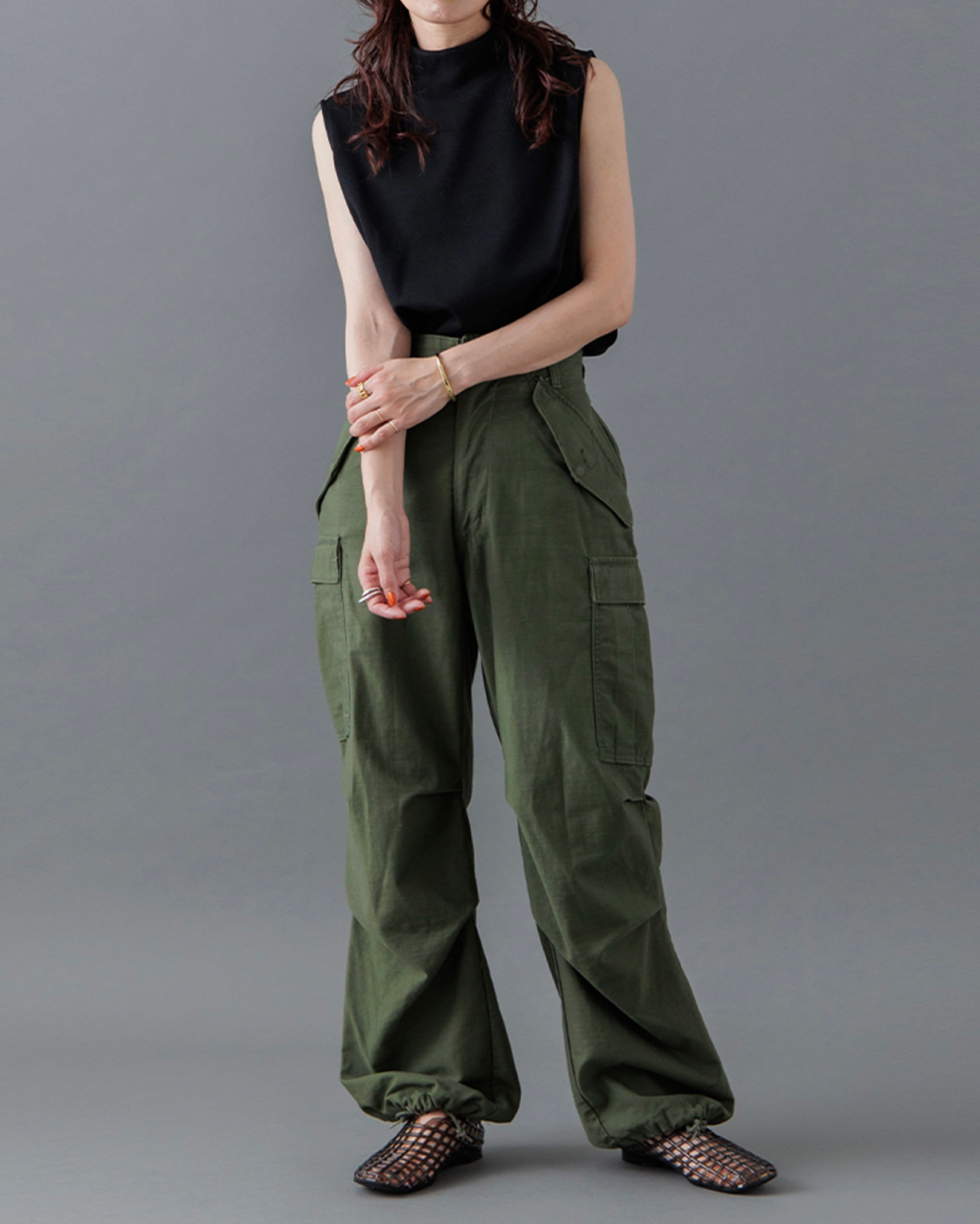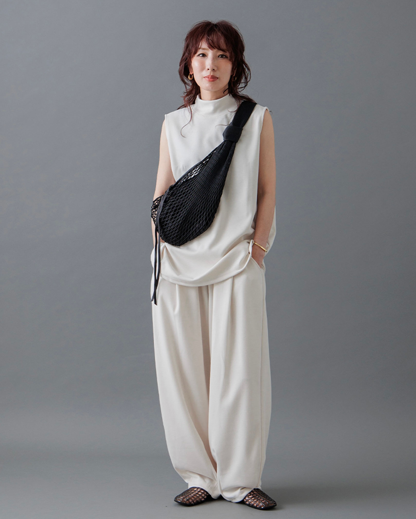 [1回再販](ORIGINAL) モックネックピンタックスリーブレス
