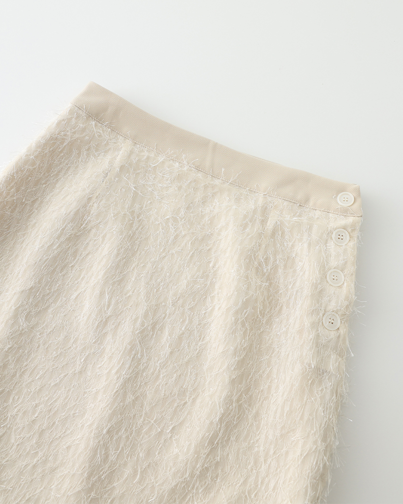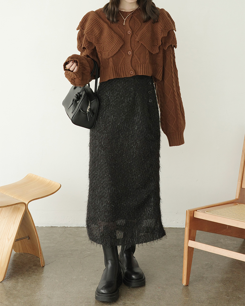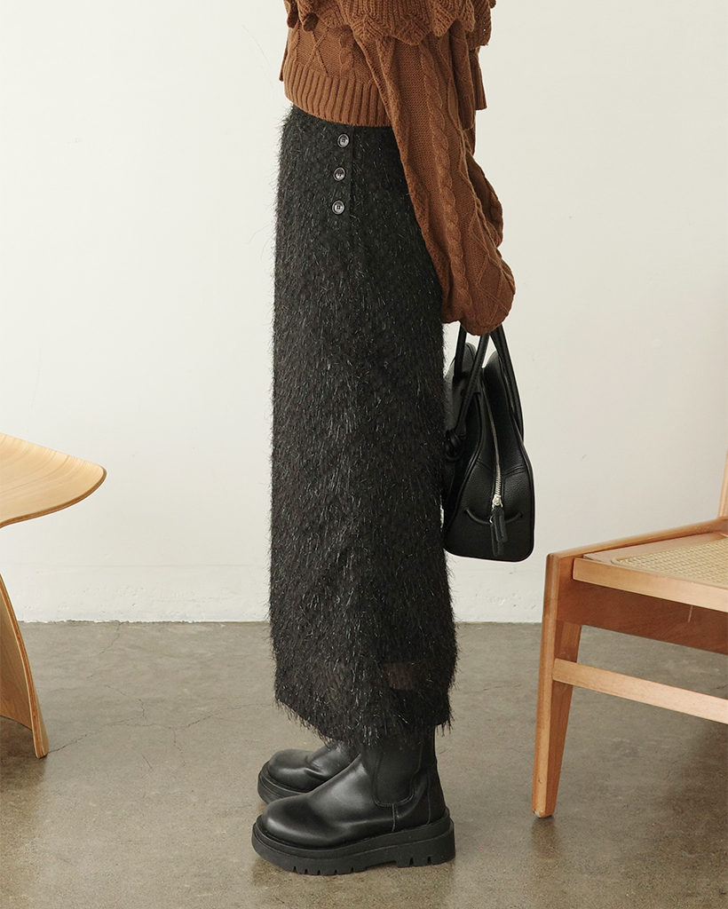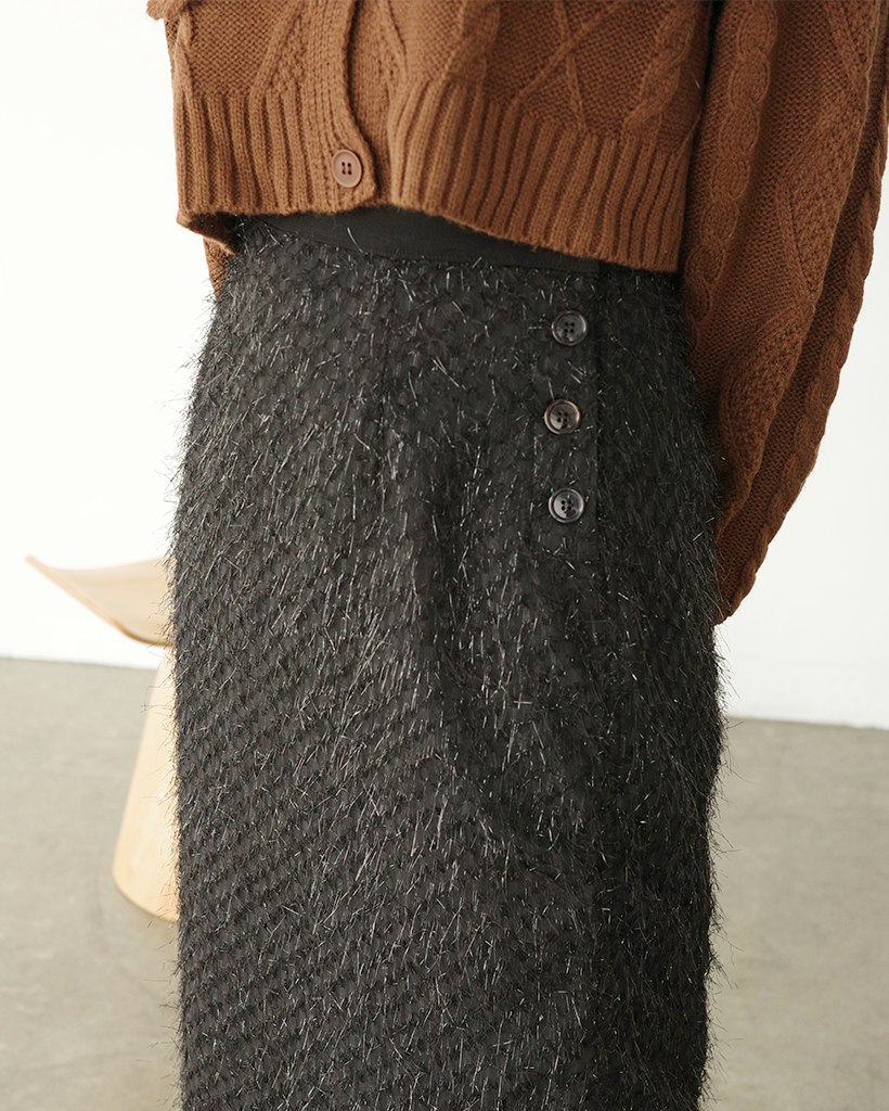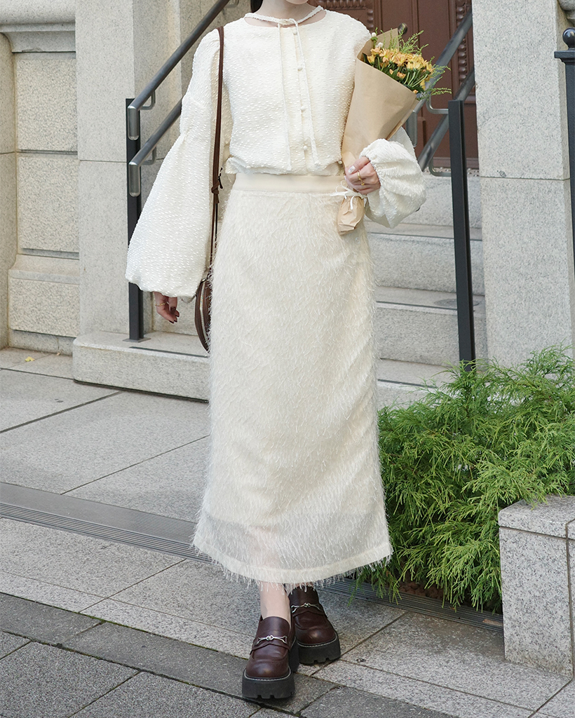 (ORIGINAL) フリンジトゥインクルボタンロングスカート