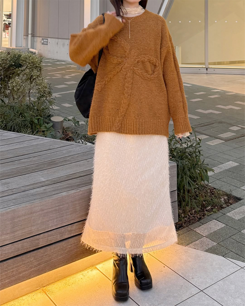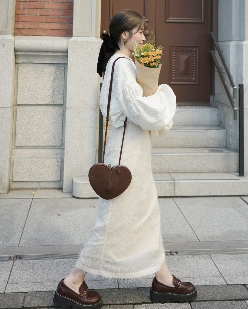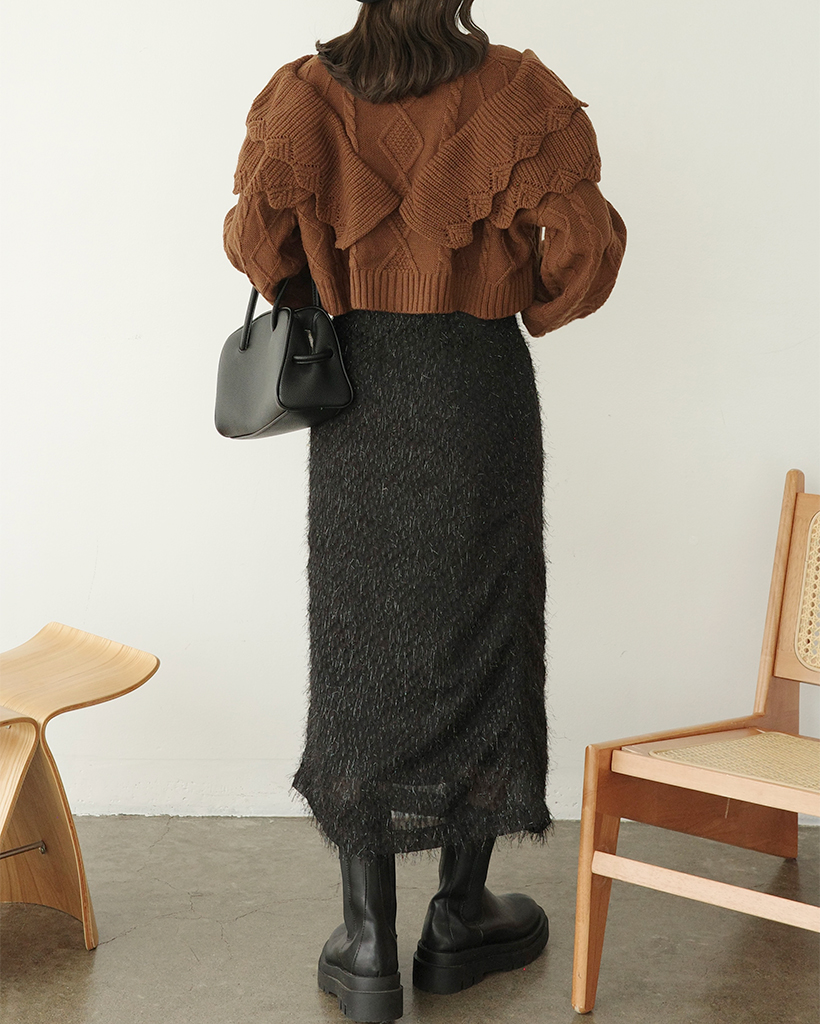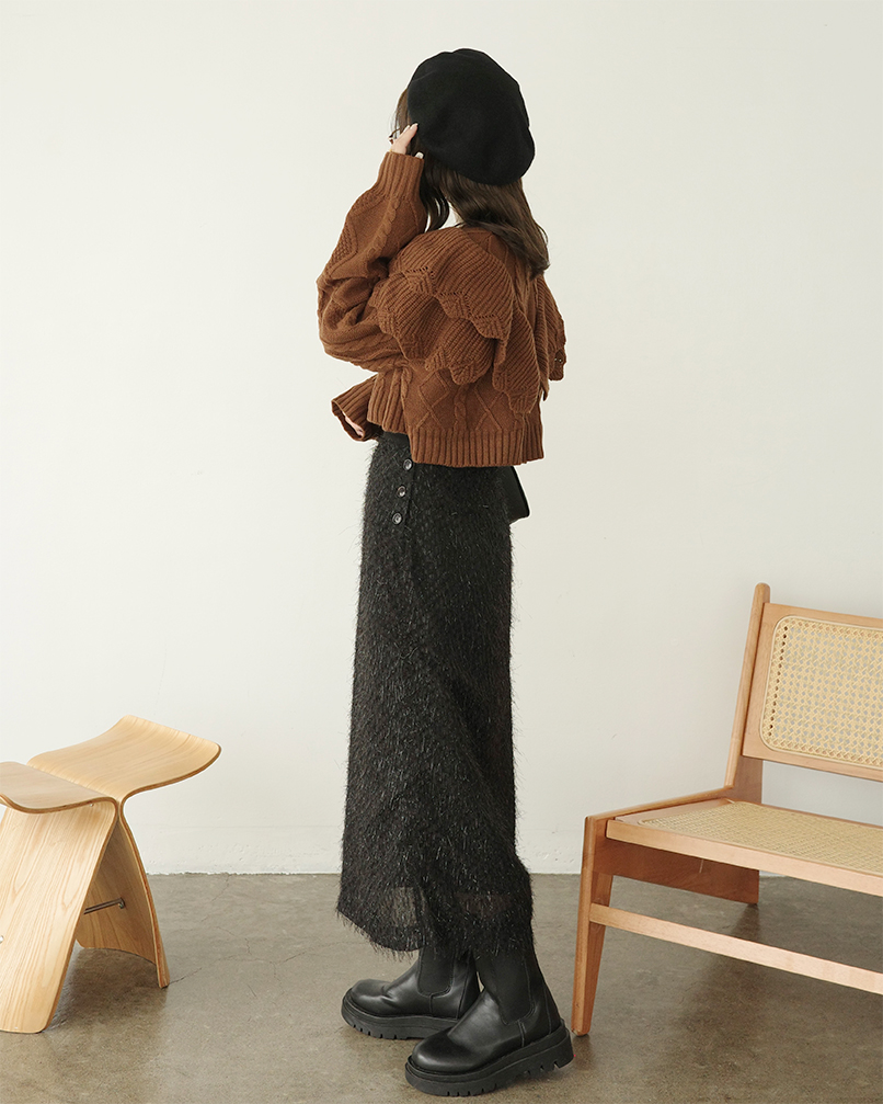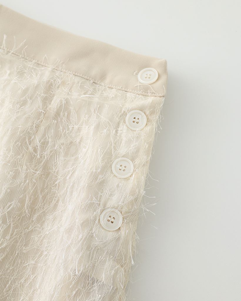 (ORIGINAL) フリンジトゥインクルボタンロングスカート