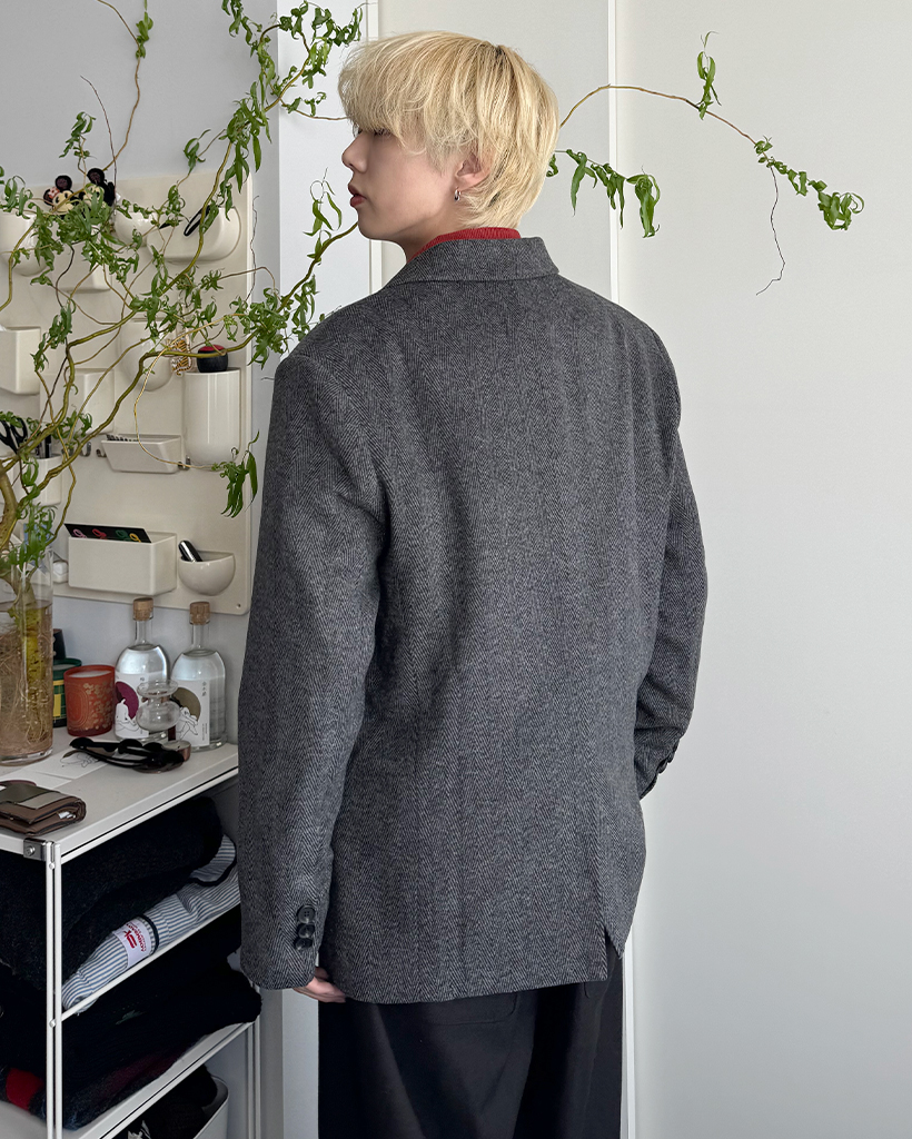 (ユニセックス)クラシックヘリンボーンブレザージャケット