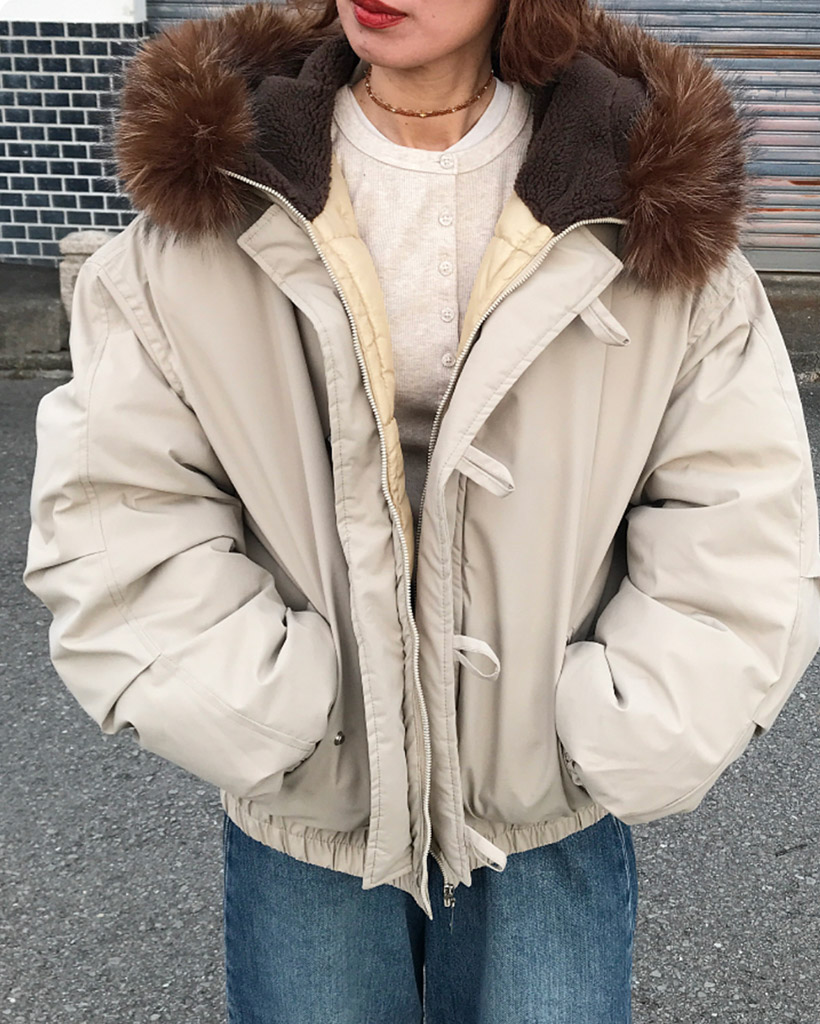 ファーフードパディングジャンパー
