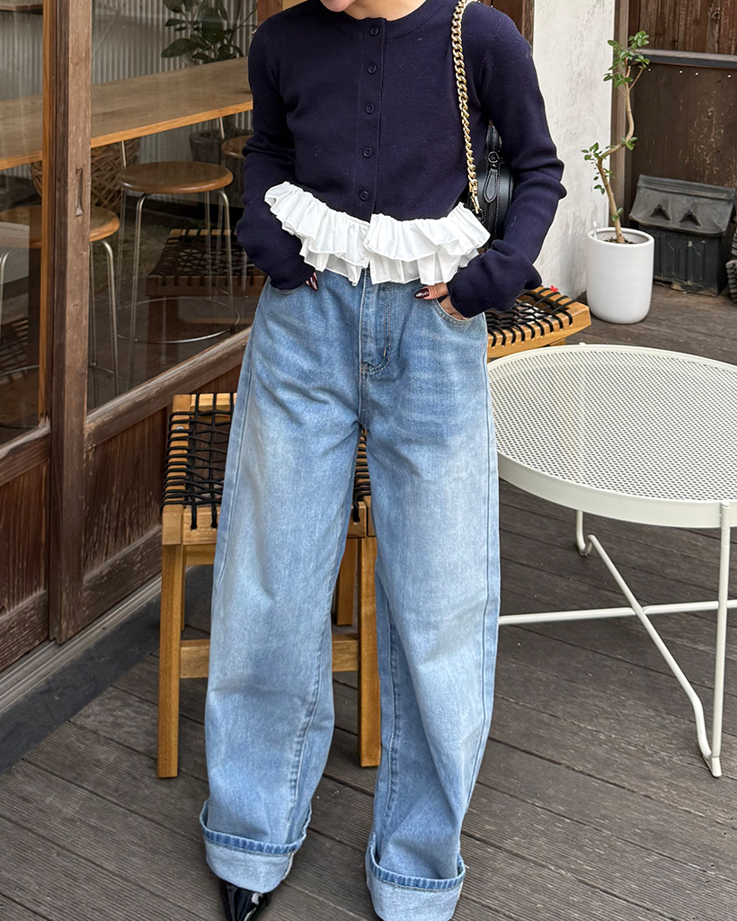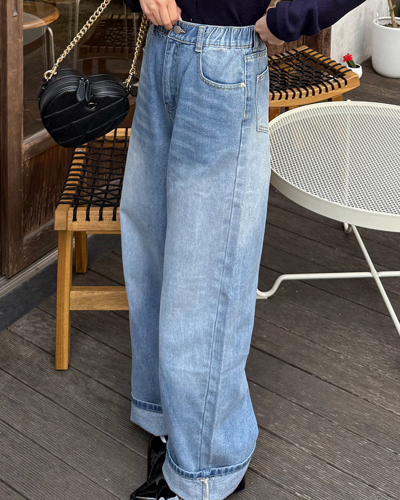 ウエストゴムワイドデニムパンツ