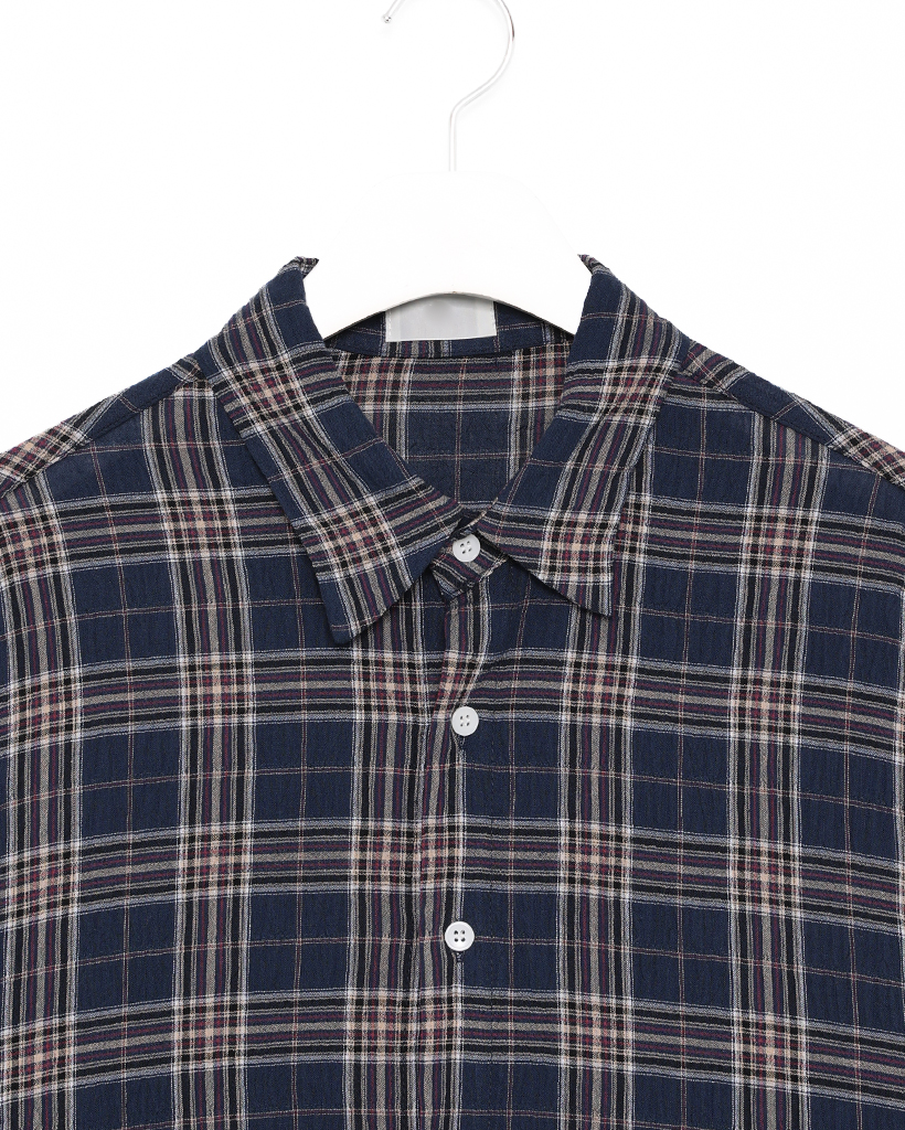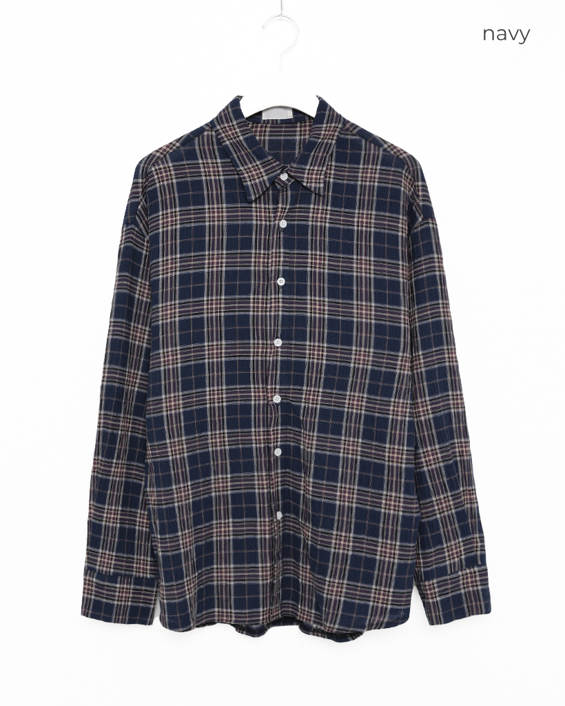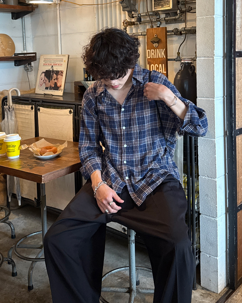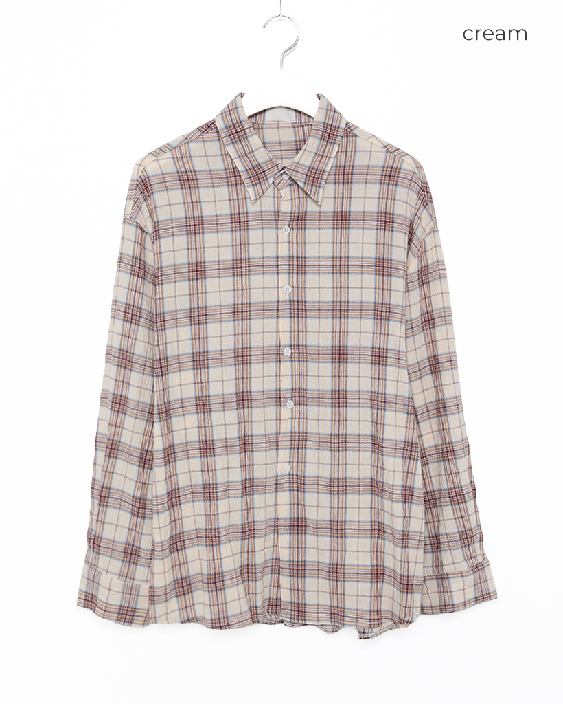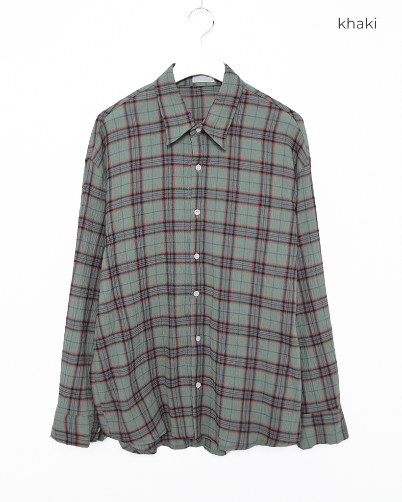 タータンチェックリンクルロングシャツ