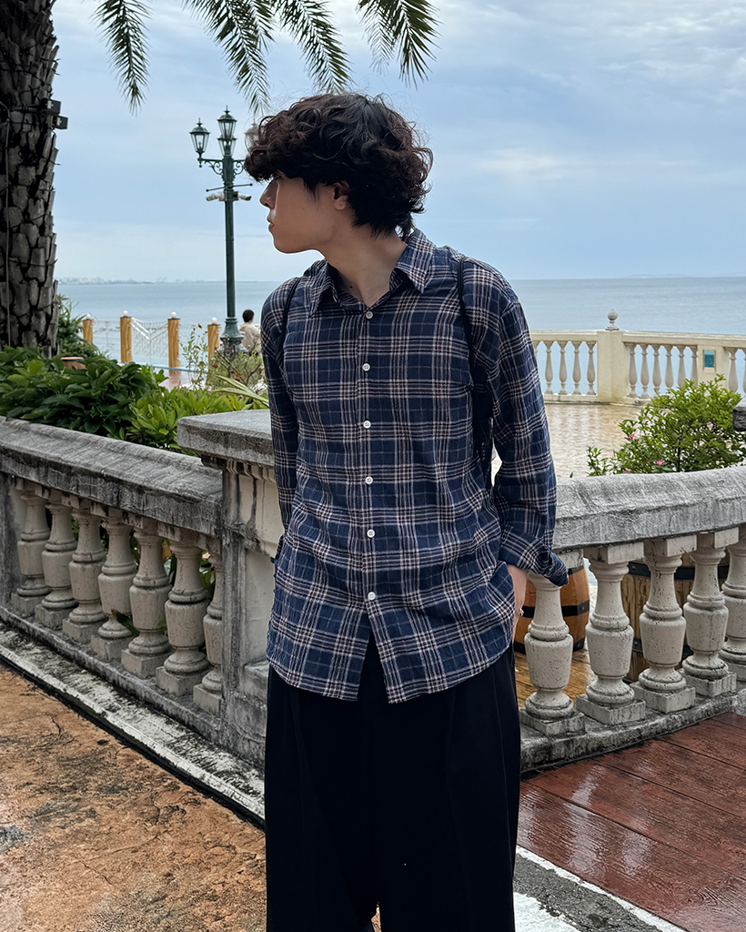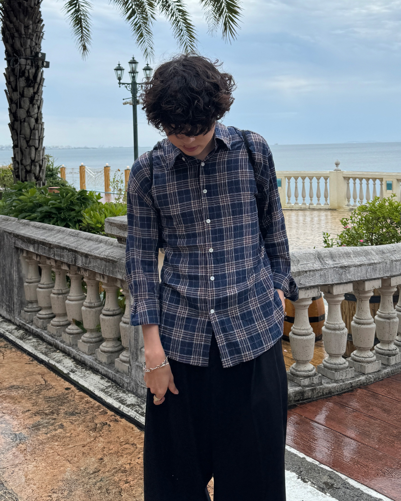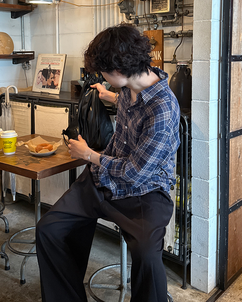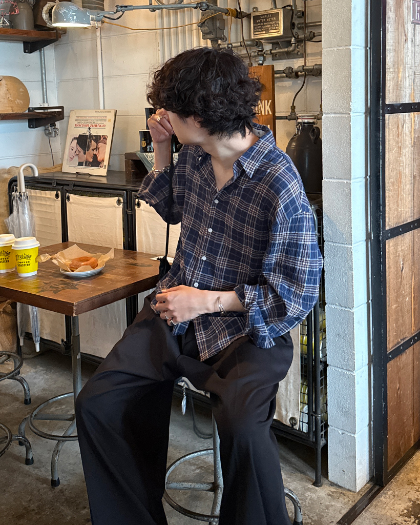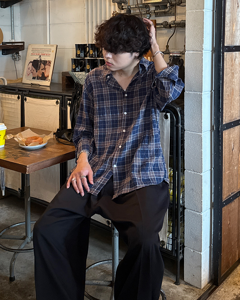 タータンチェックリンクルロングシャツ