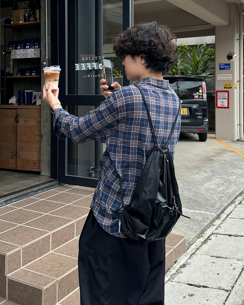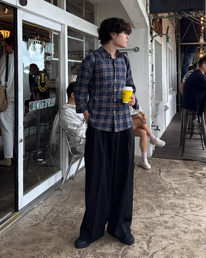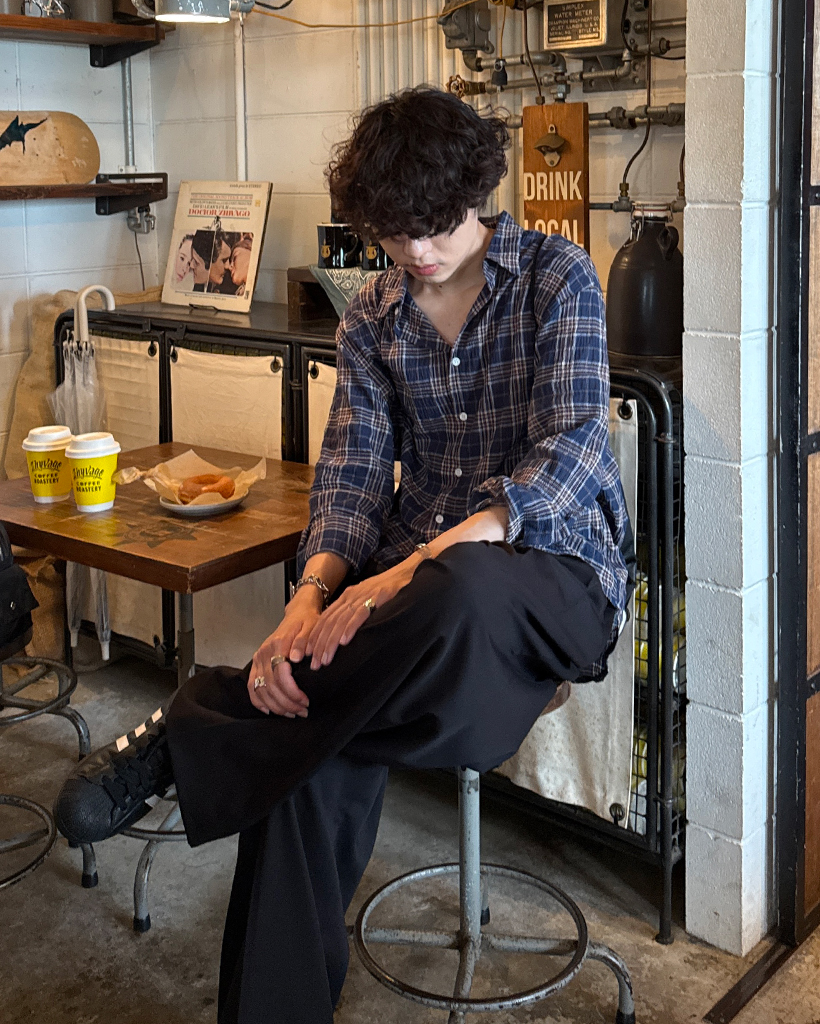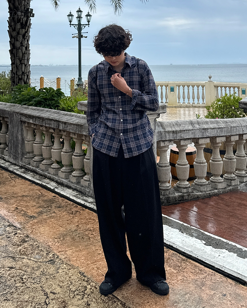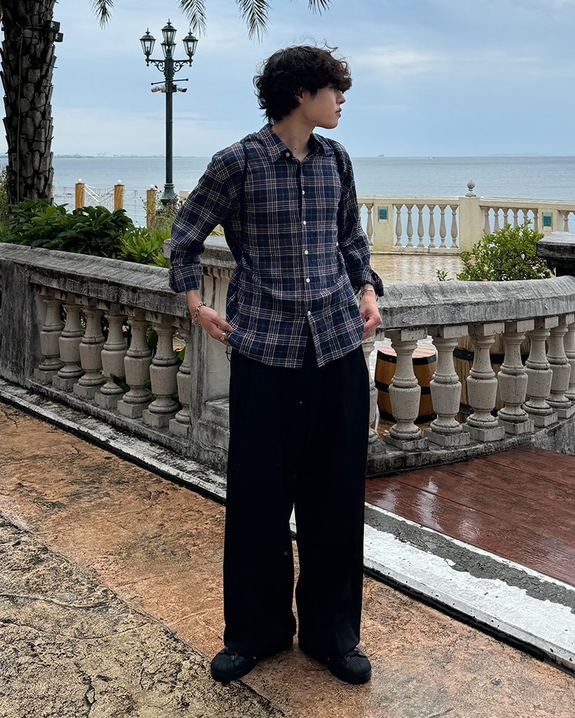 タータンチェックリンクルロングシャツ
