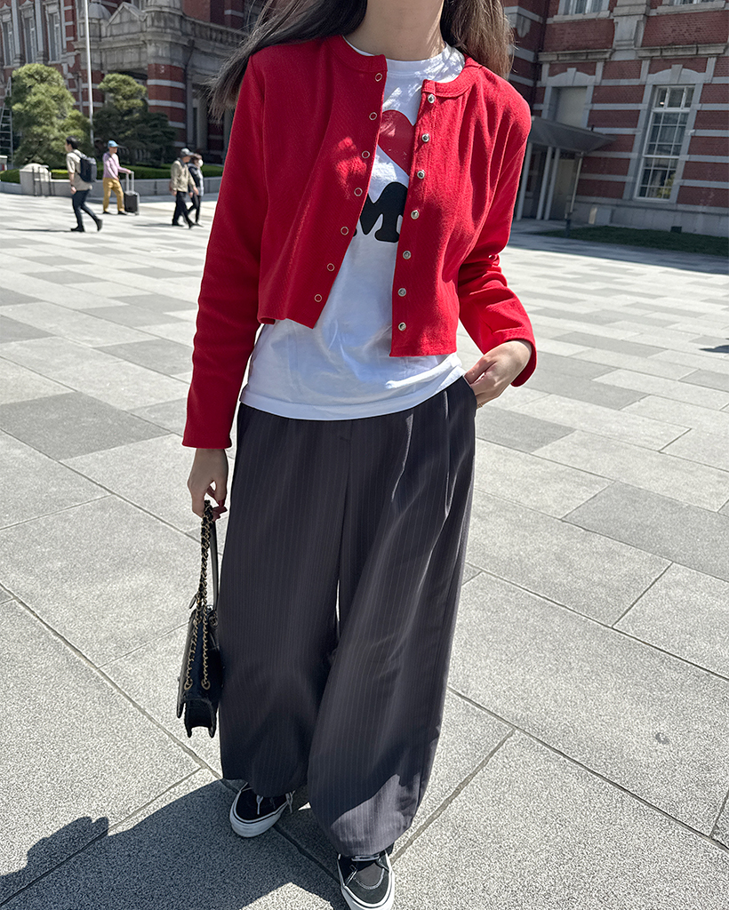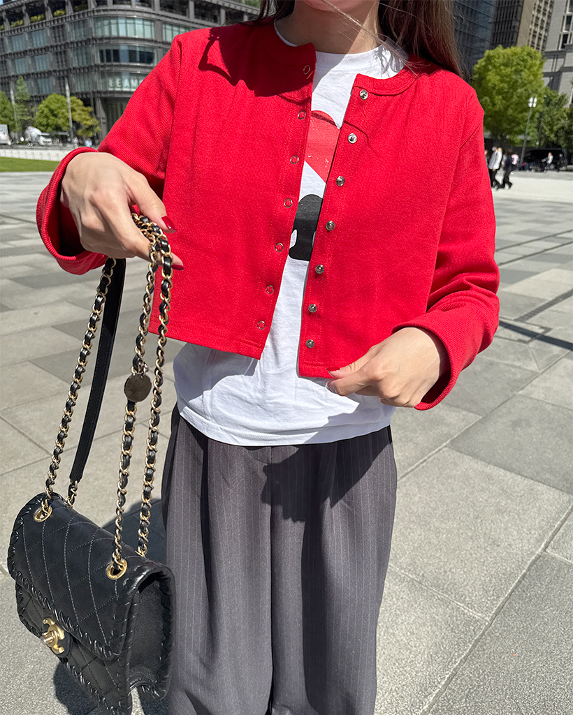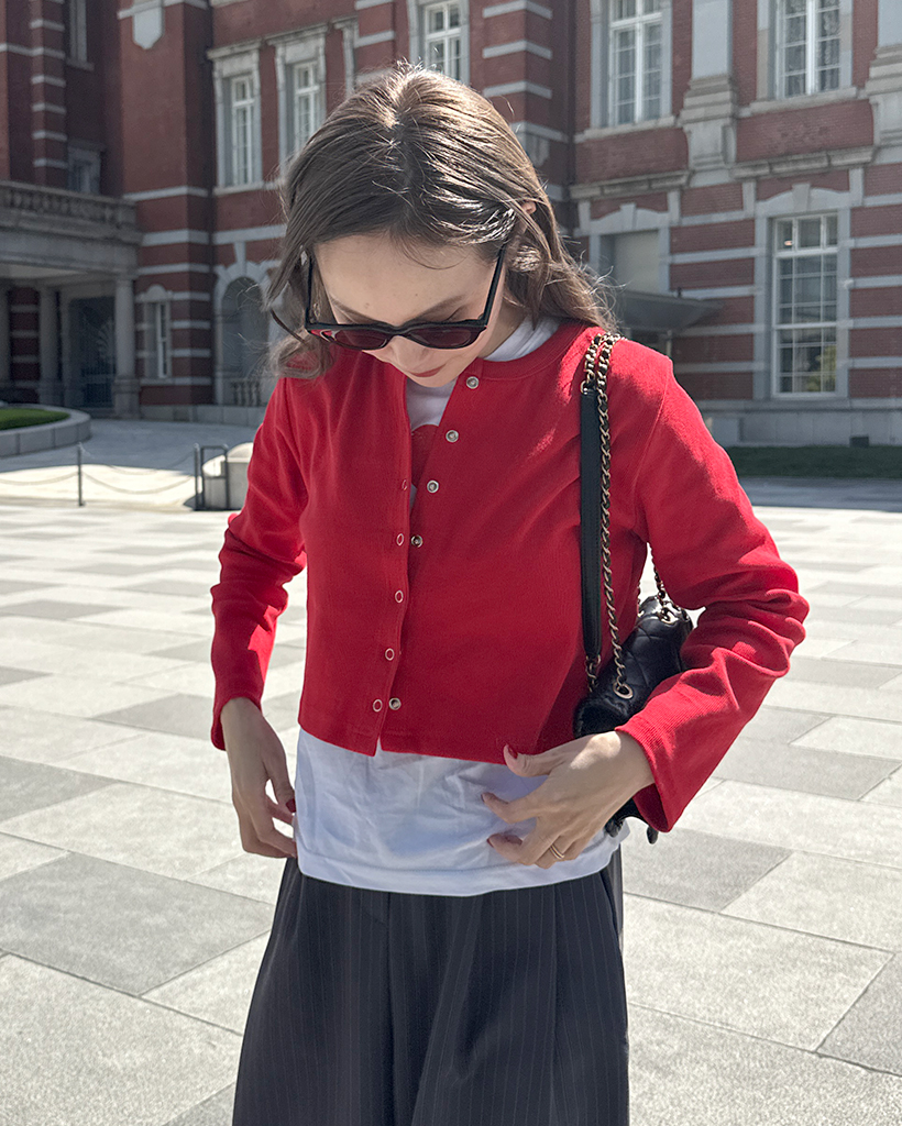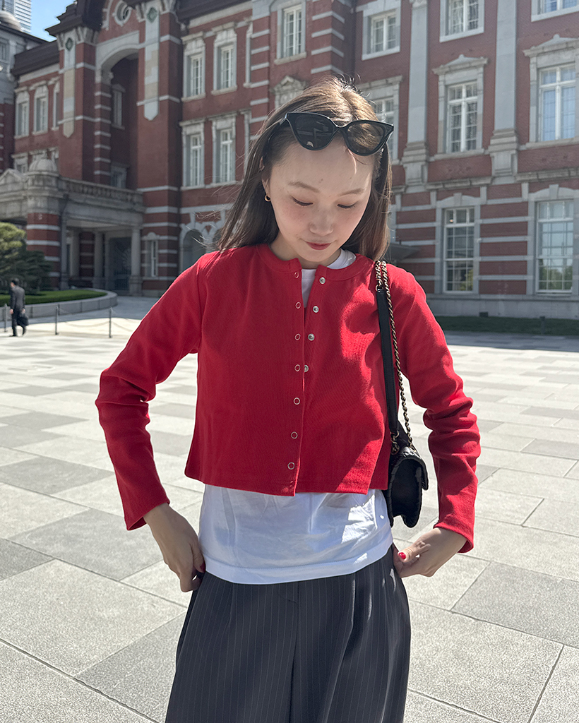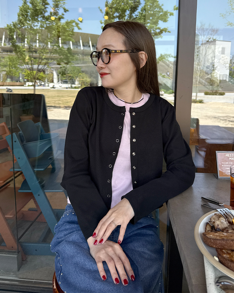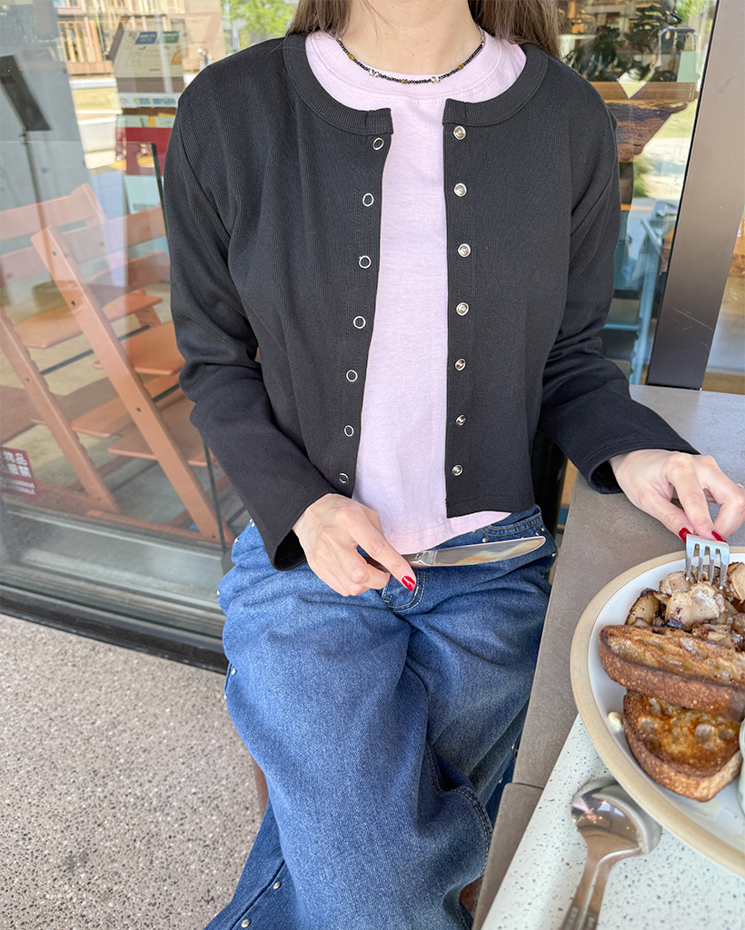 リブスナップボタンカーディガン