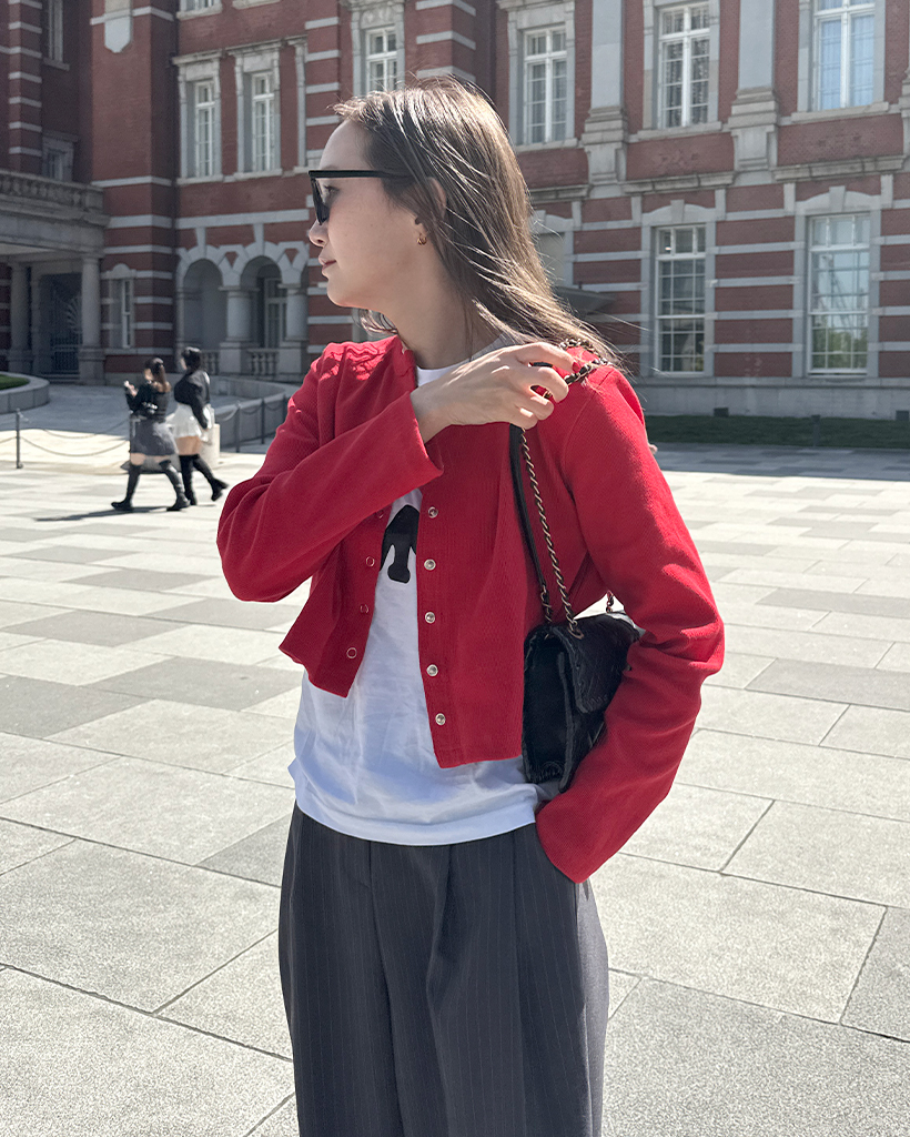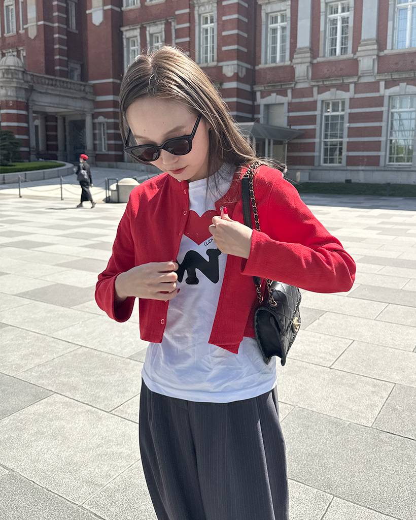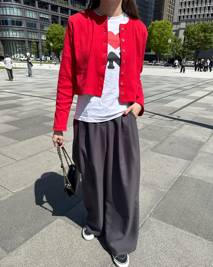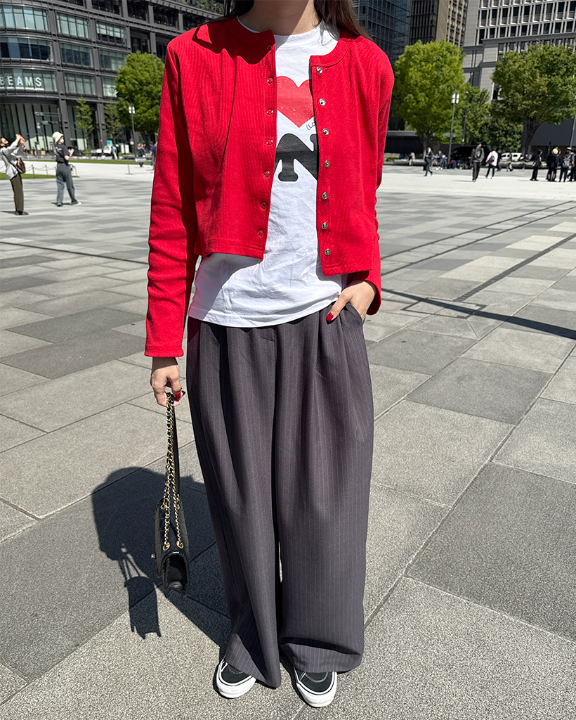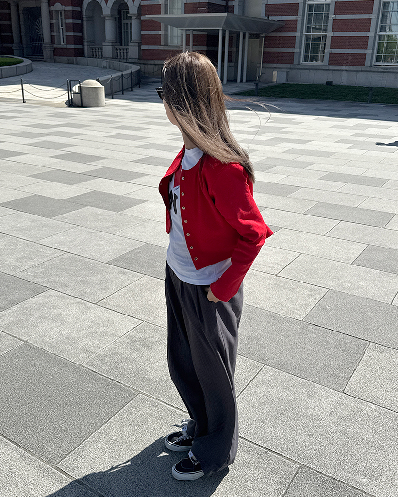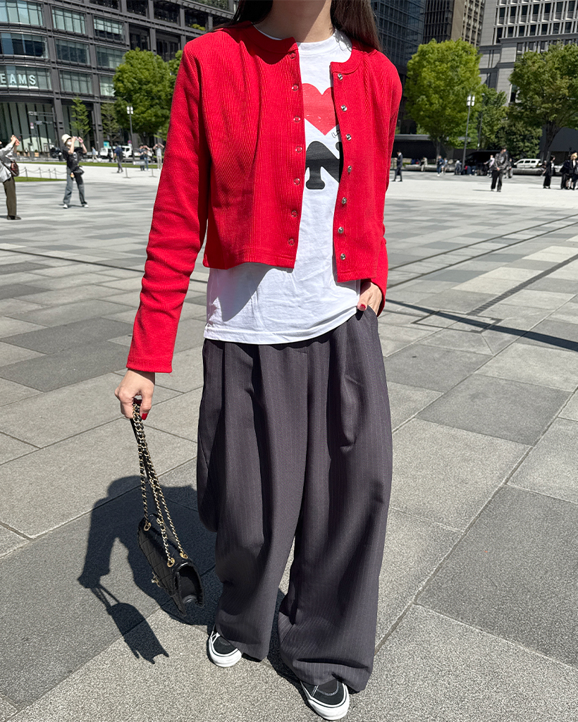 リブスナップボタンカーディガン
