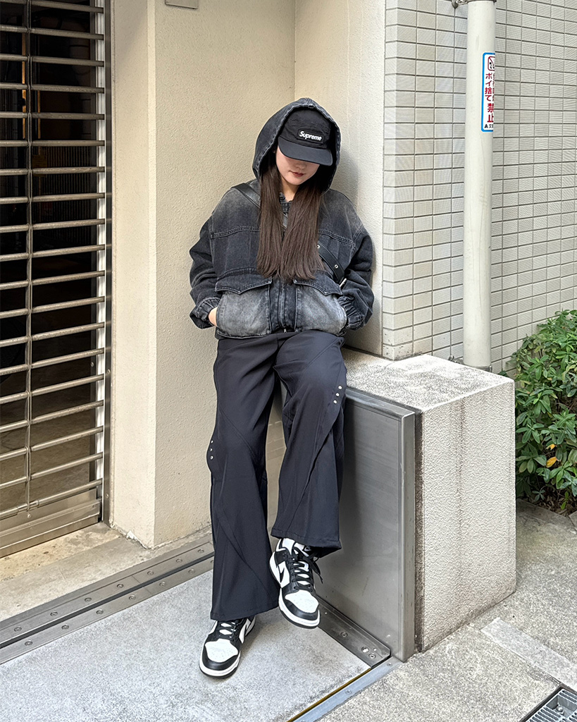 #マユ#157cm#ウェーブ#モノトーン#ユニセックス#カジュアル