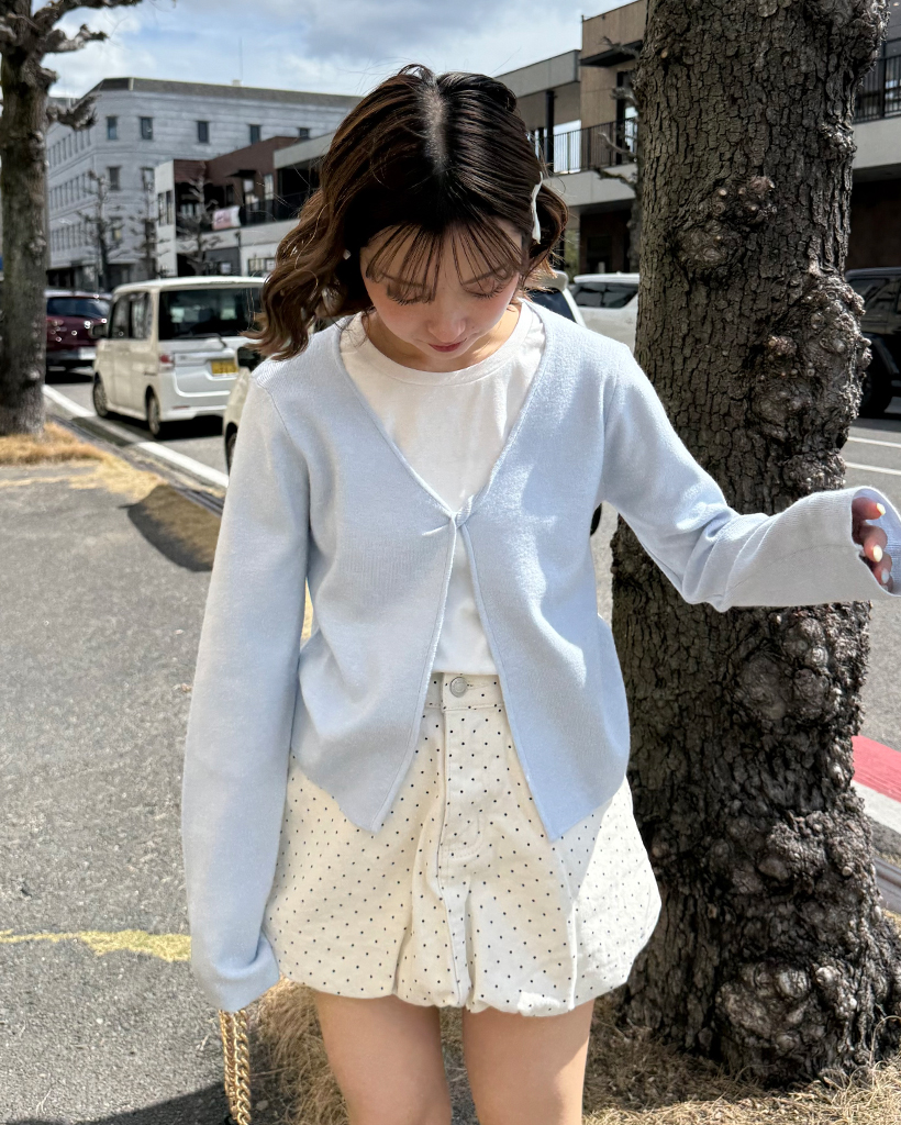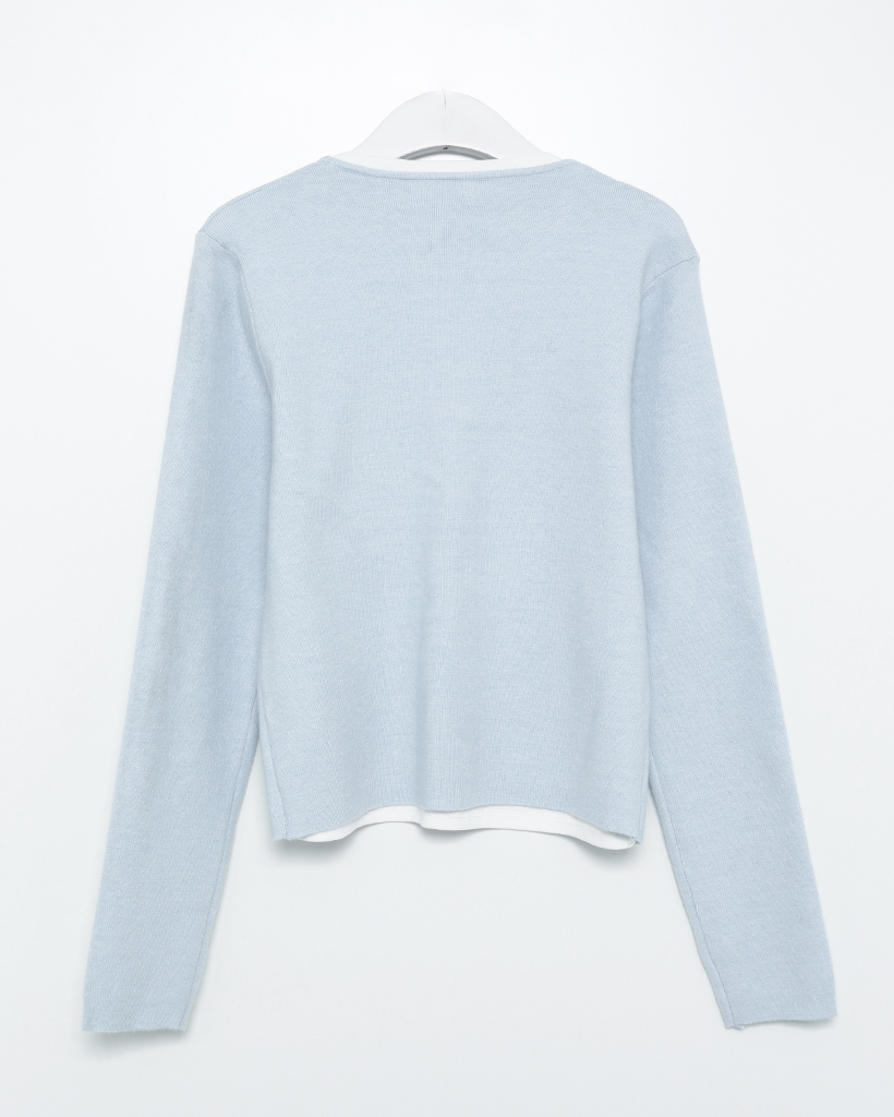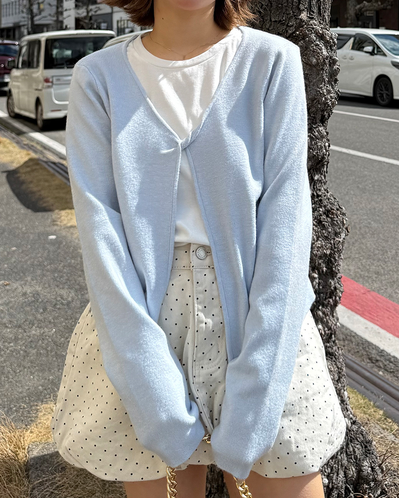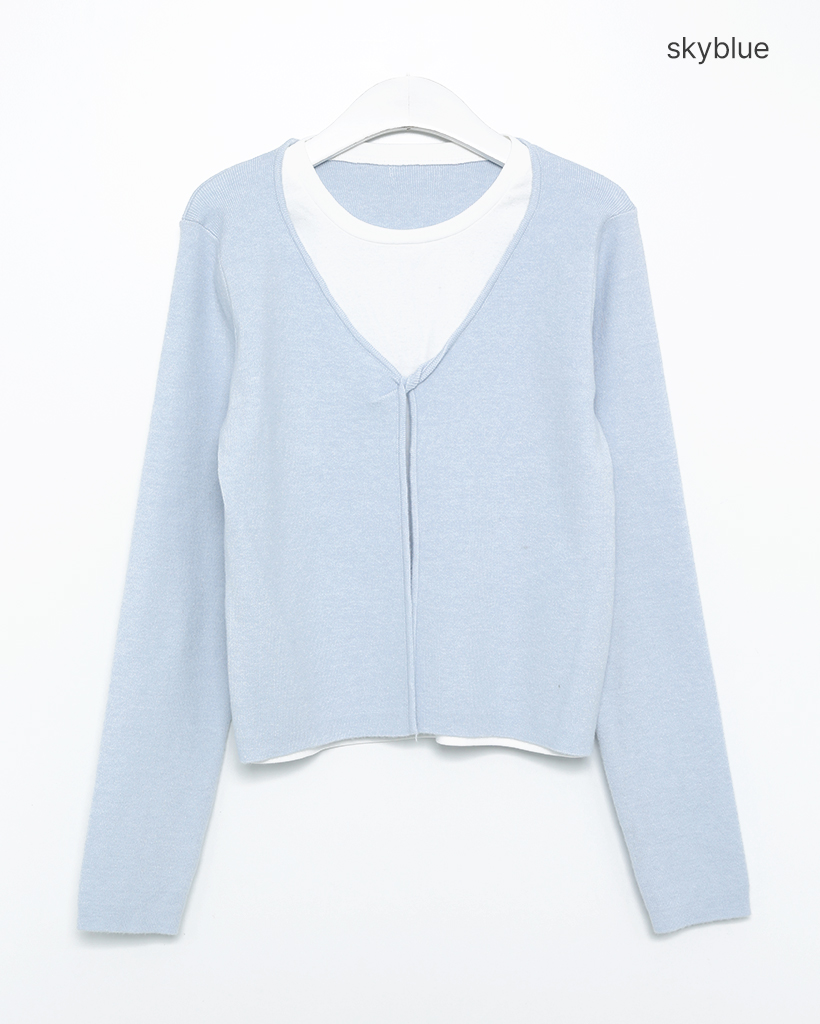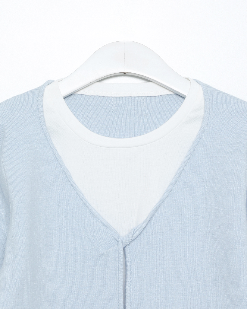 バイカラーカーディレイヤードロングTシャツ