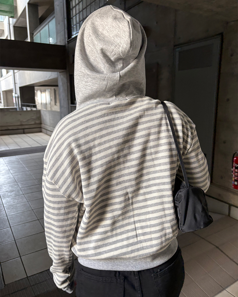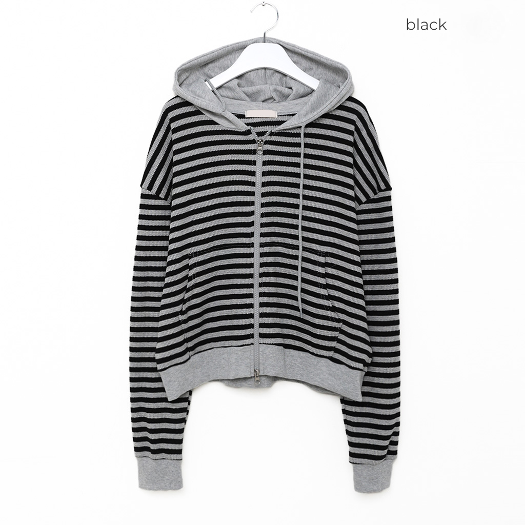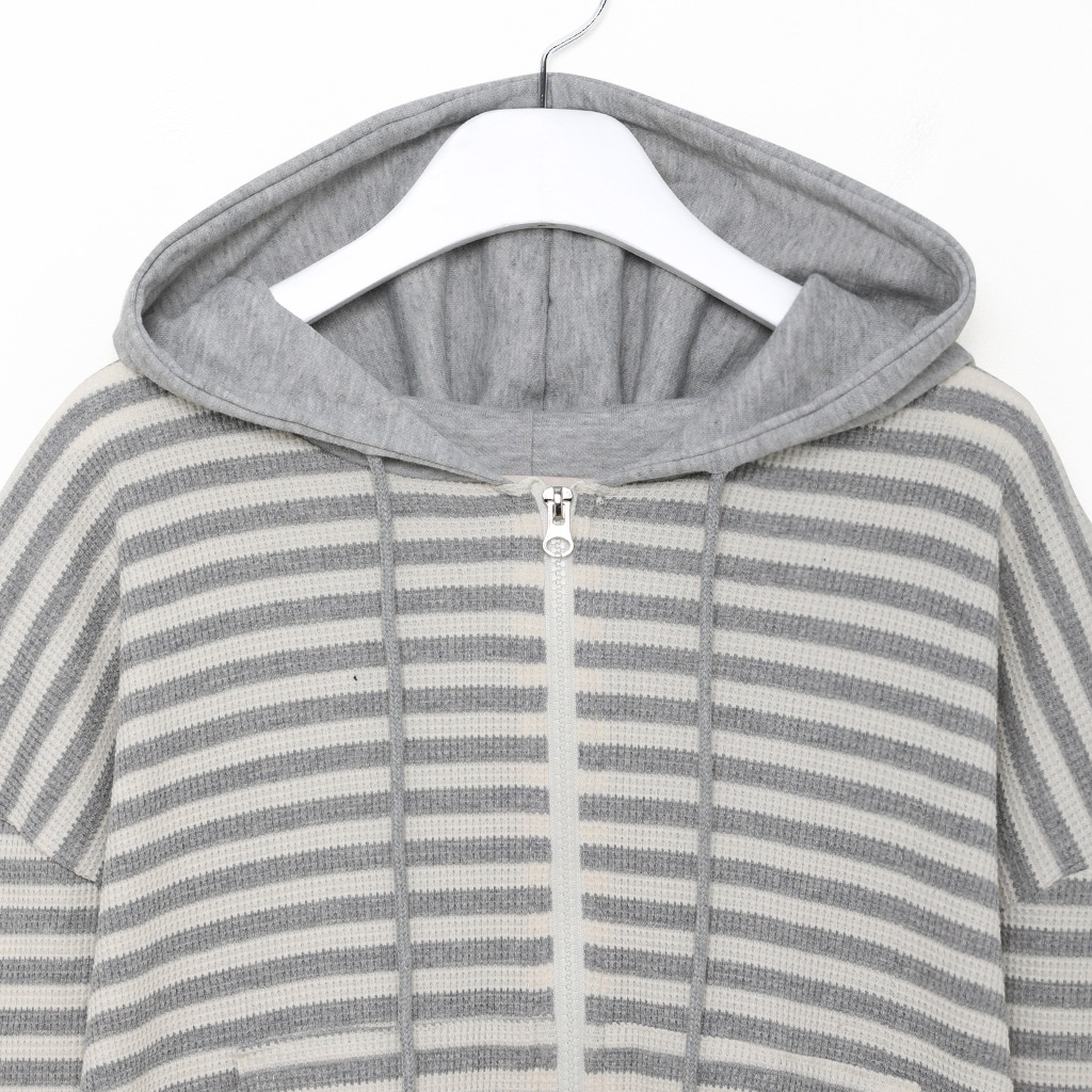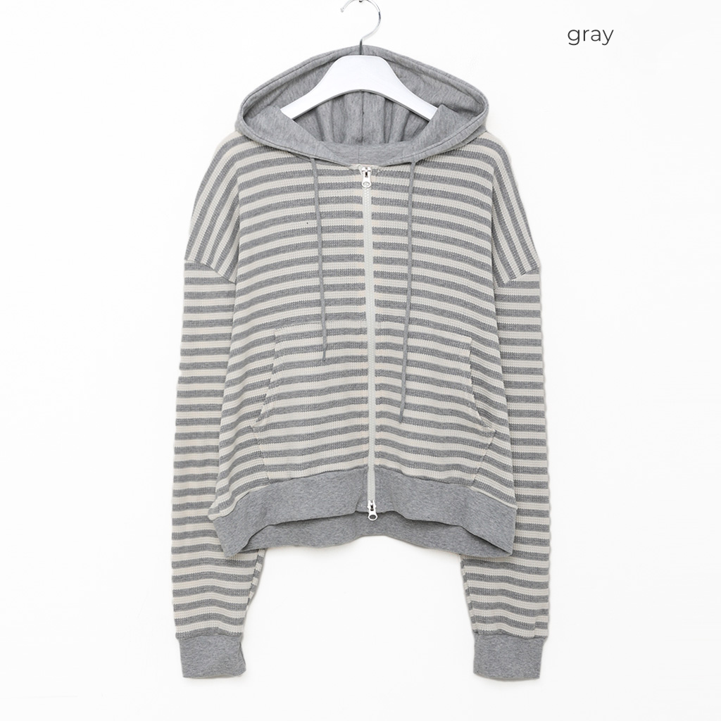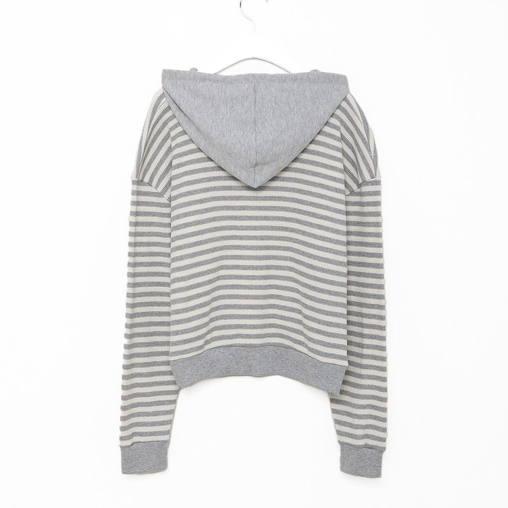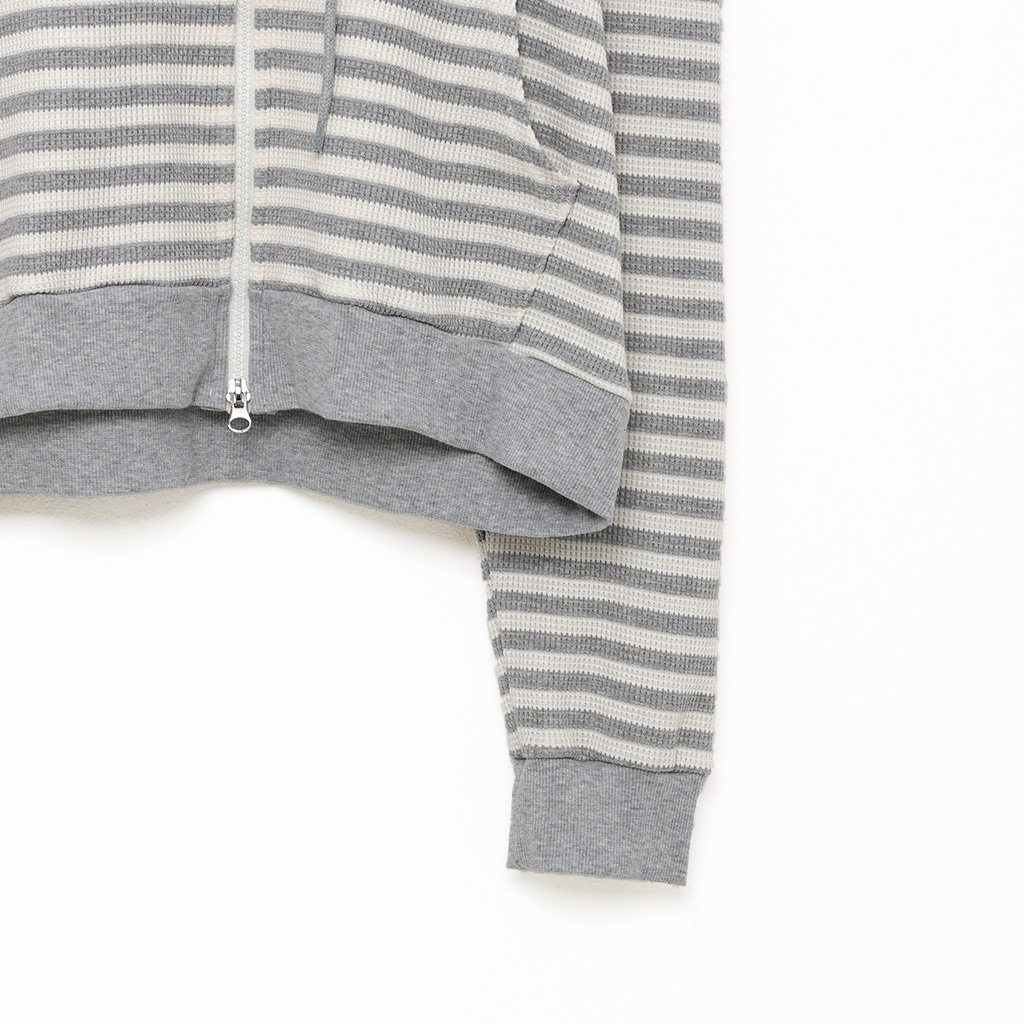 ボーダーセミクロップドダブルジップワッフルパーカー