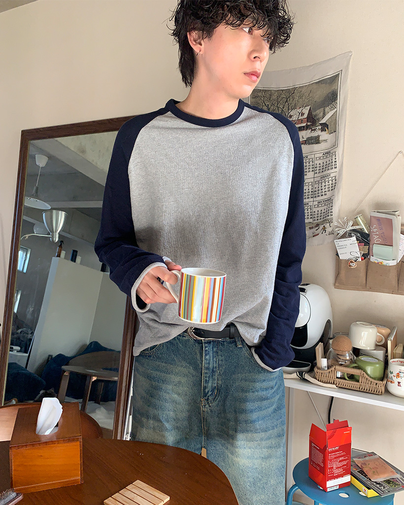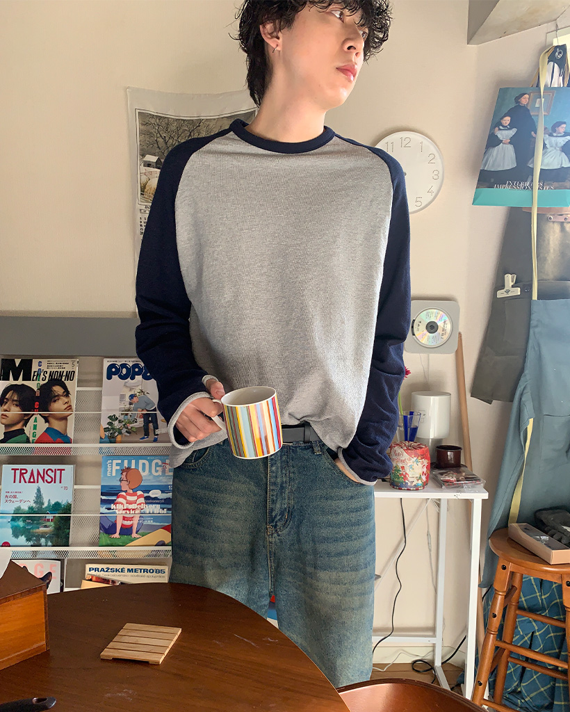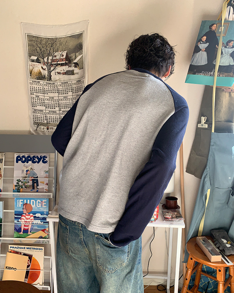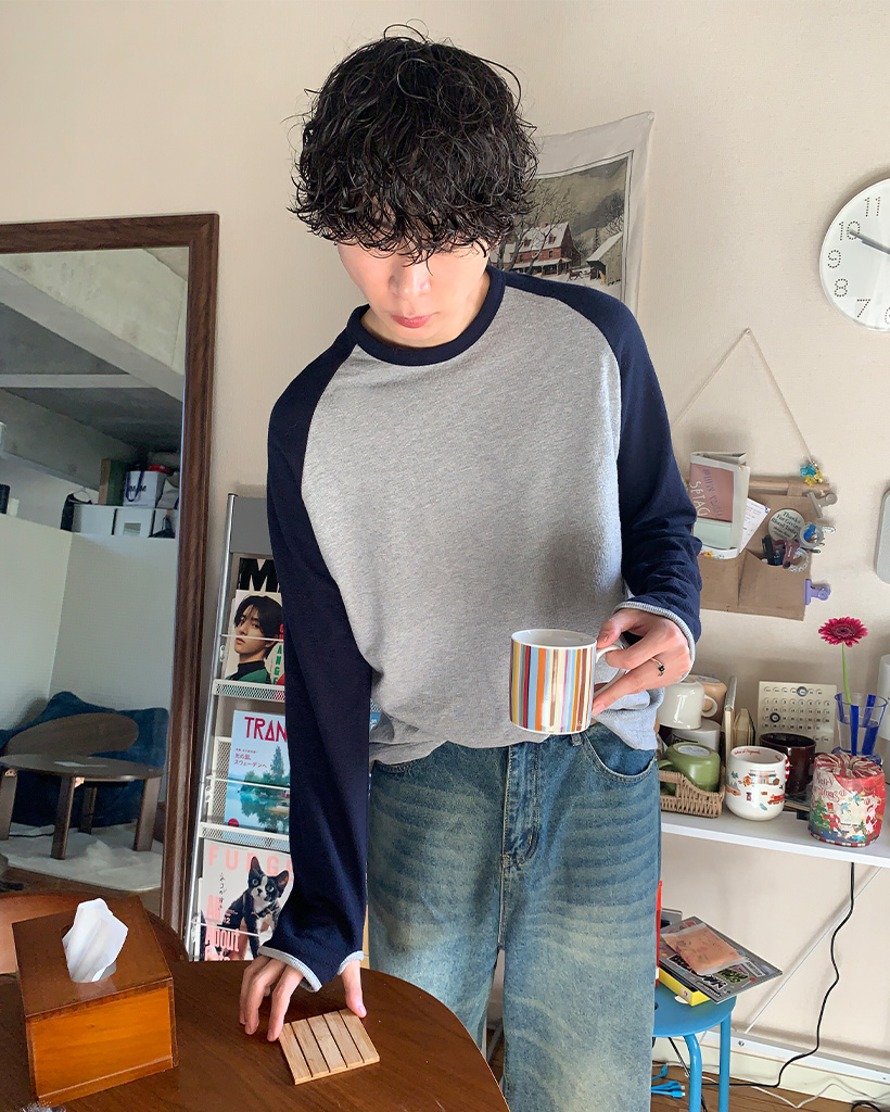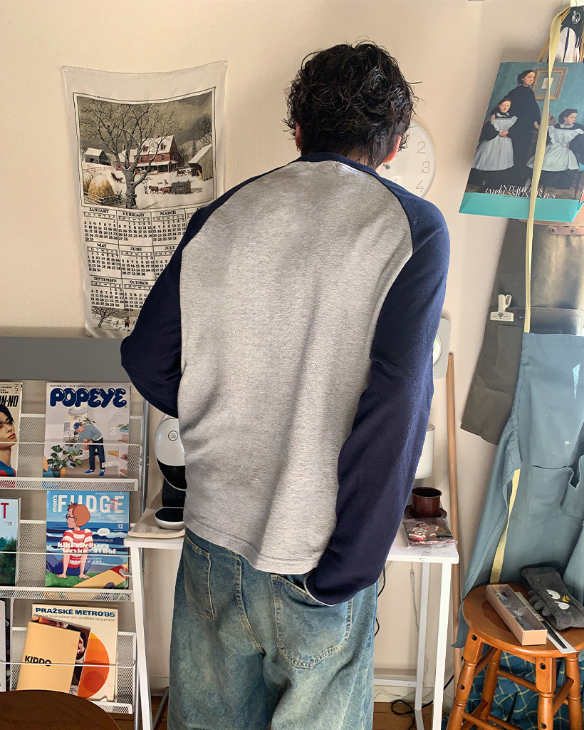 (ユニセックス)ラグランバイカラー長袖Tシャツ