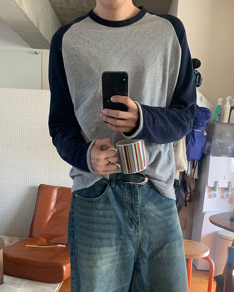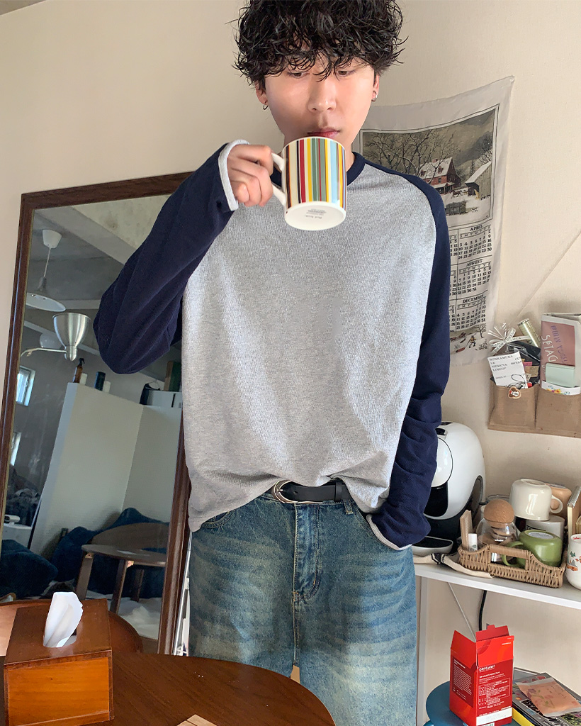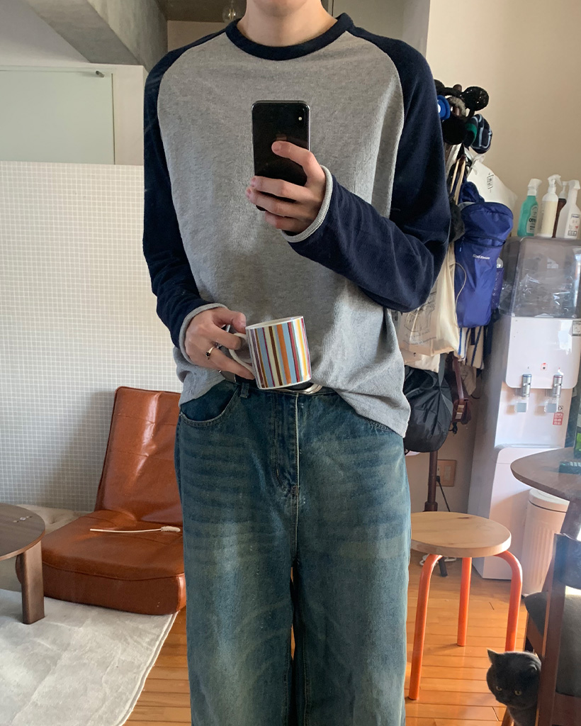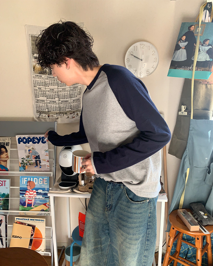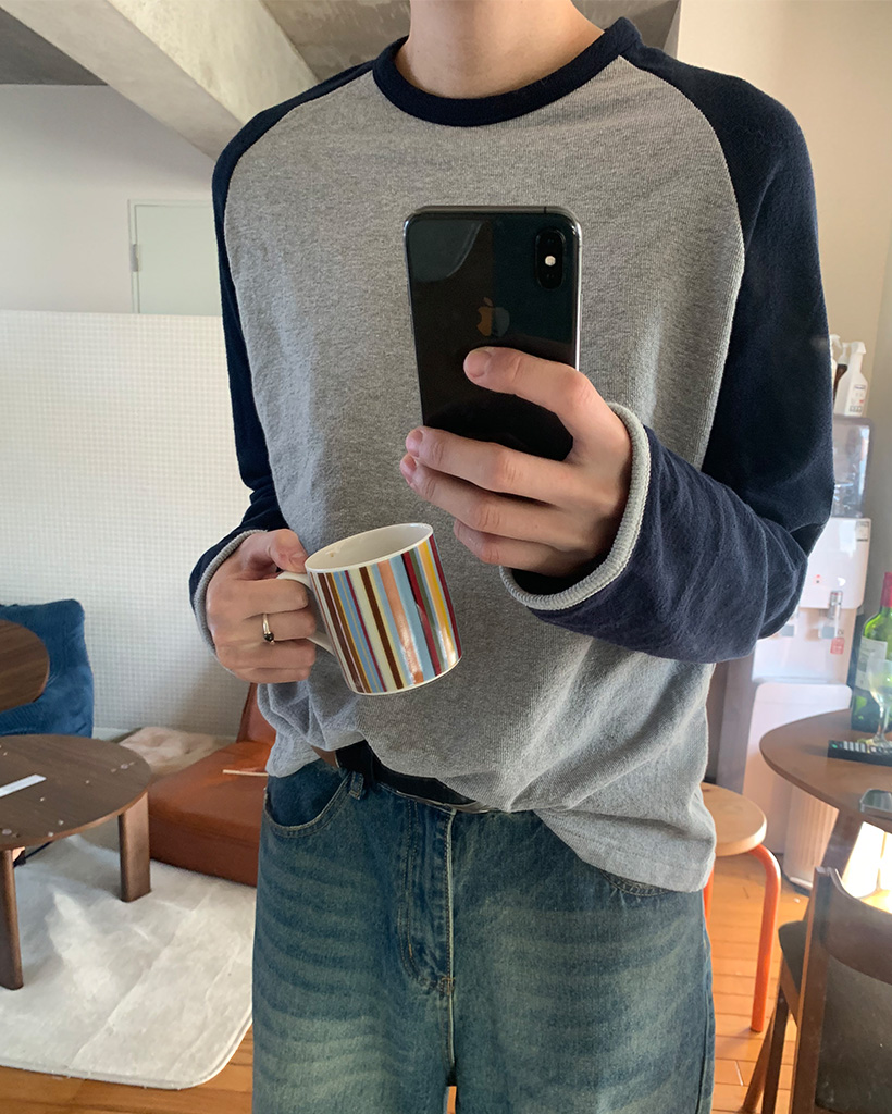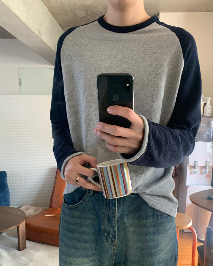 (ユニセックス)ラグランバイカラー長袖Tシャツ